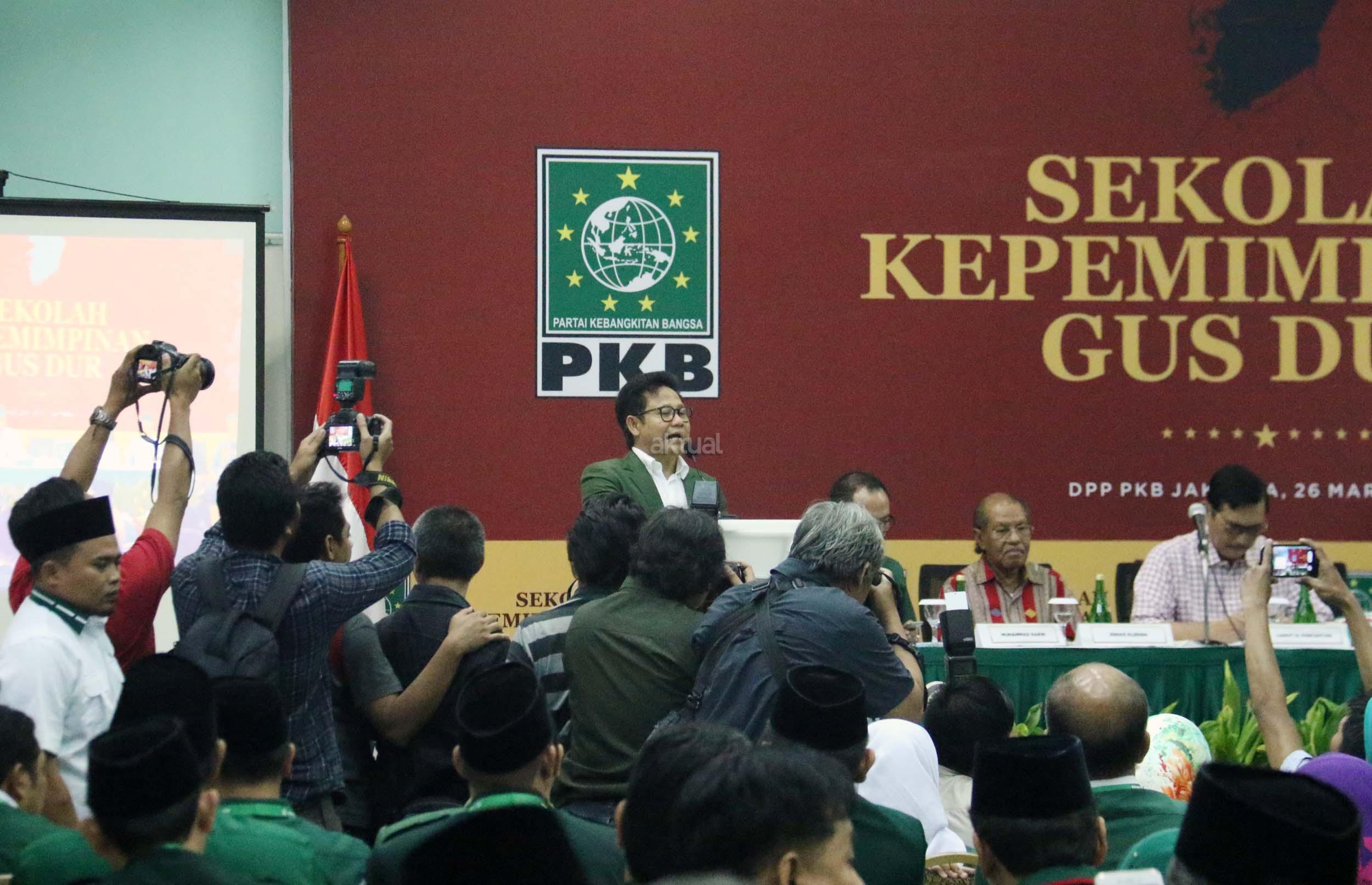 Ketua Umum DPP PKB Muhaimin Iskandar (kanan) memberikan pengarahan dalam pembukaan Sekolah Kepemimpinan Gus Dur di Kantor DPP PKB, Jakarta, Minggu (26/3/2017). Kegiatan yang diikuti para kader PKB tersebut bertujuan untuk meneladani kepemimpinan Gus Dur yang berakar pada nilai Ketuhanan, kerakyatan, dan kemanusiaan. AKTUAL/Munzir