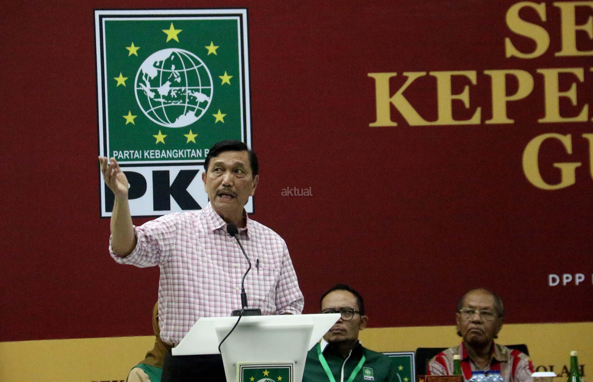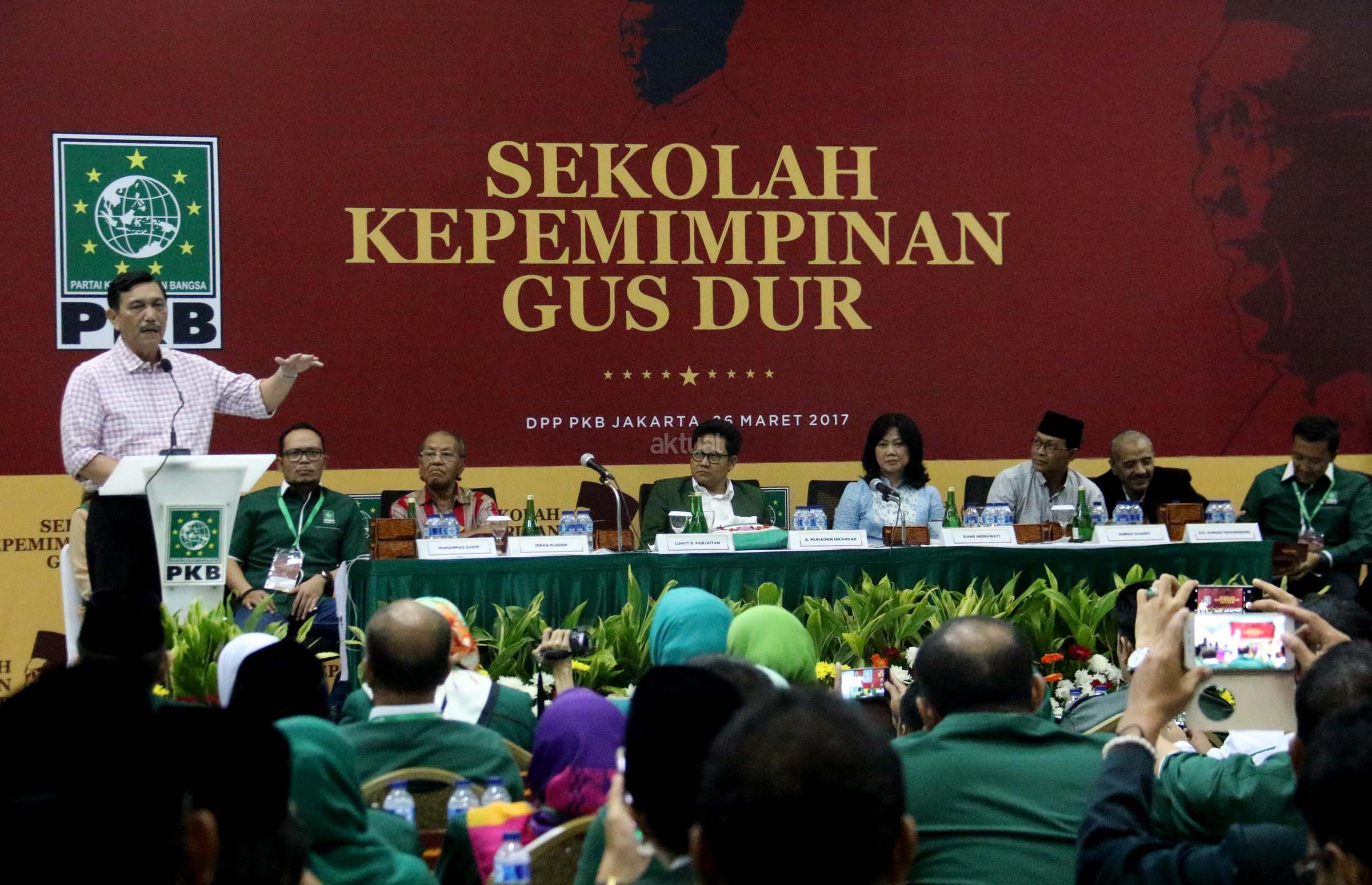 Menko Kemaritiman Luhut B Pandjaitan (kiri) memberikan pengarahan dalam Sekolah Kepemimpinan Gus Dur di Kantor DPP PKB, Jakarta, Minggu (26/3/2017). Kegiatan yang diikuti para kader PKB tersebut bertujuan untuk meneladani kepemimpinan Gus Dur yang berakar pada nilai Ketuhanan, kerakyatan, dan kemanusiaan. AKTUAL/Munzir
