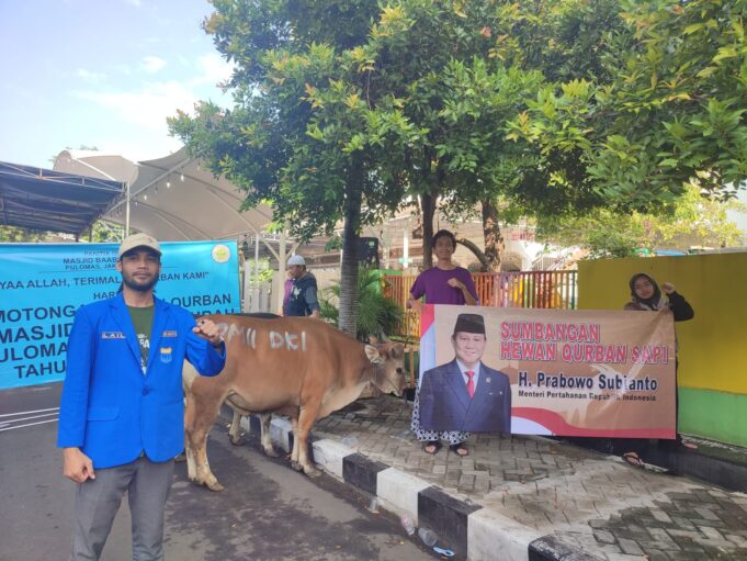 ‘’Kami dari PMII DKI Jakarta mengucapkan terima kasih yang sebesar-besarnya kepada Bapak Prabowo Subianto yang telah memberikan bantuan hewan qurban kepada kami, mudah-mudahan ini dapat memberikan keberkahan bagi kita semua.’’ Ujar Lail sebelum dilakukan prosesi penyembelihan dan pendistribusian daging (39/6).