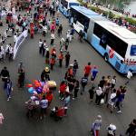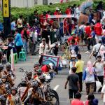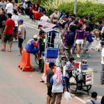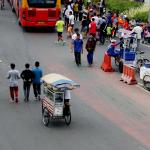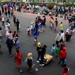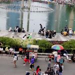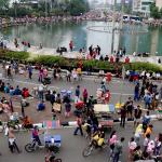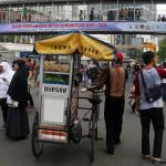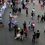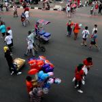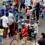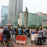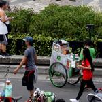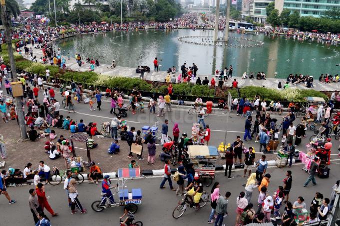 Pedagang kaki lima (PKL) berjualan ketika pelaksanaan Hari Bebas Kendaraan Bermotor di kawasan Bundaran HI Jakarta, Minggu (21/5/2017). Kurangnya pengawasan petugas membuat Kawasan Bundaran HI yang sebelumnya bebas PKL, kini mulai marak kembali. AKTUAL/Munzir