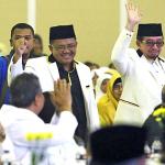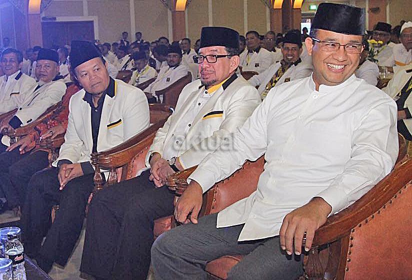 Dari kiri ke kanan, Wakil Ketua Majelis Syuro Partai Keadilan Sejahtera (PKS) Hidayat Nur Wahid, Ketua Majelis Syuro PKS Salim Segaf Al -Jufri dan Calon Gubernur DKI Jakarta Anies Baswedan saat bersama dalam acara Pembukaan Rakornas PKS 2017 di Depok, Jawa Barat, Senin (6/3). Acara Rakornas PKS 2017 akan berlangsung hingga Rabu (8/3) mengambil tema besar ‘Kokoh Berkhidmat untuk Rakyat”. AKTUAL/Humas DPP PKS