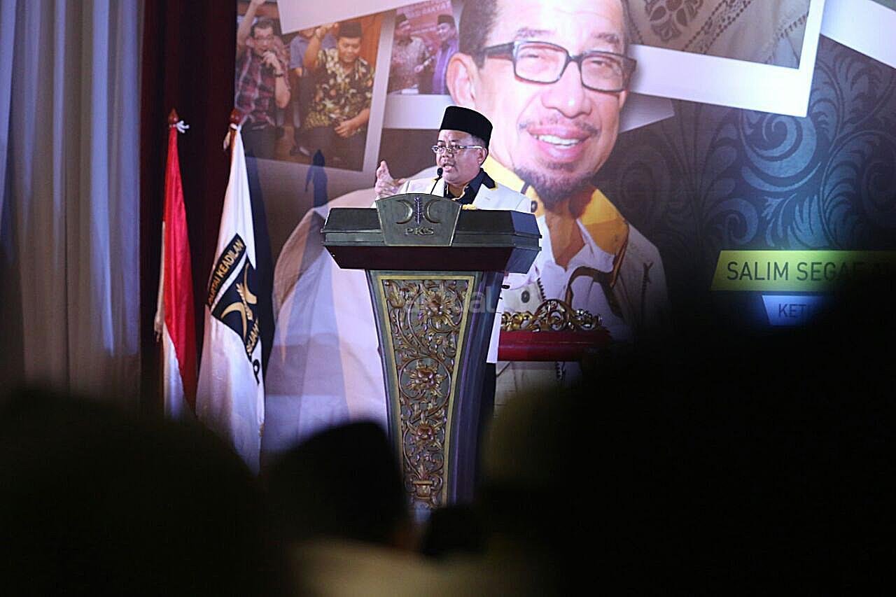Presiden Partai Keadilan Sejahtera (PKS) Mohamad Sohibul Iman, memberikan sambutan pada Pembukaan Rakornas PKS 2017 di Depok, Jawa Barat, Senin (6/3). Acara Rakornas PKS 2017 akan berlangsung hingga hari Rabu (8/3) mengambil tema besar, ‘Kokoh Berkhidmat untuk Rakyat”. AKTUAL/Humas DPP PKS