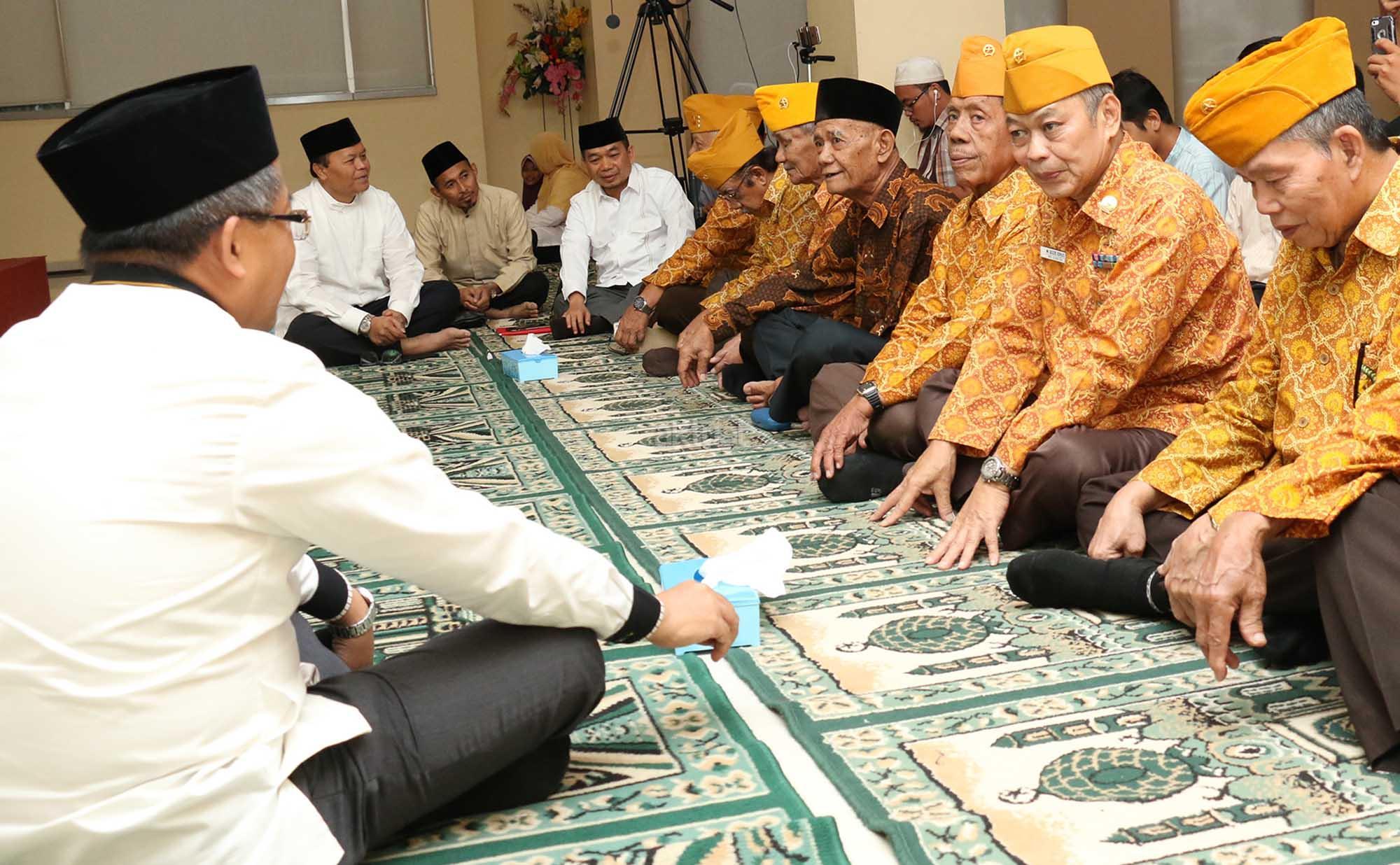 Presiden PKS M. Sohibul Iman didampingi Wakil Ketua MAjelis Syuro PKS Hidayat Nur Wahid dan Ketua Fraksi PKS DPR Jazuli Juawaini berbincang dengan pensiunan TNI yang tergabung dalam wadah Legiun Veteran Republik Indonesia (LVRI) saat acara Tasyakuran 74 Tahun Hijriah Proklamasi Kemerdekaan RI di Aula MD Building, Jakarta Selatan, Minggu (4/6/2017). AKTUAL/HO