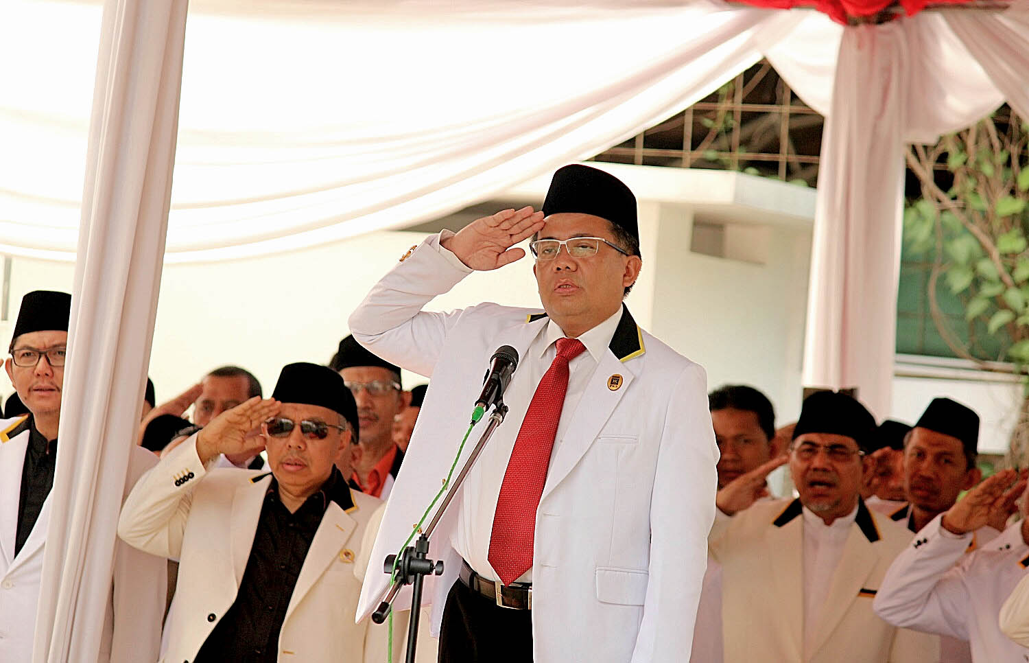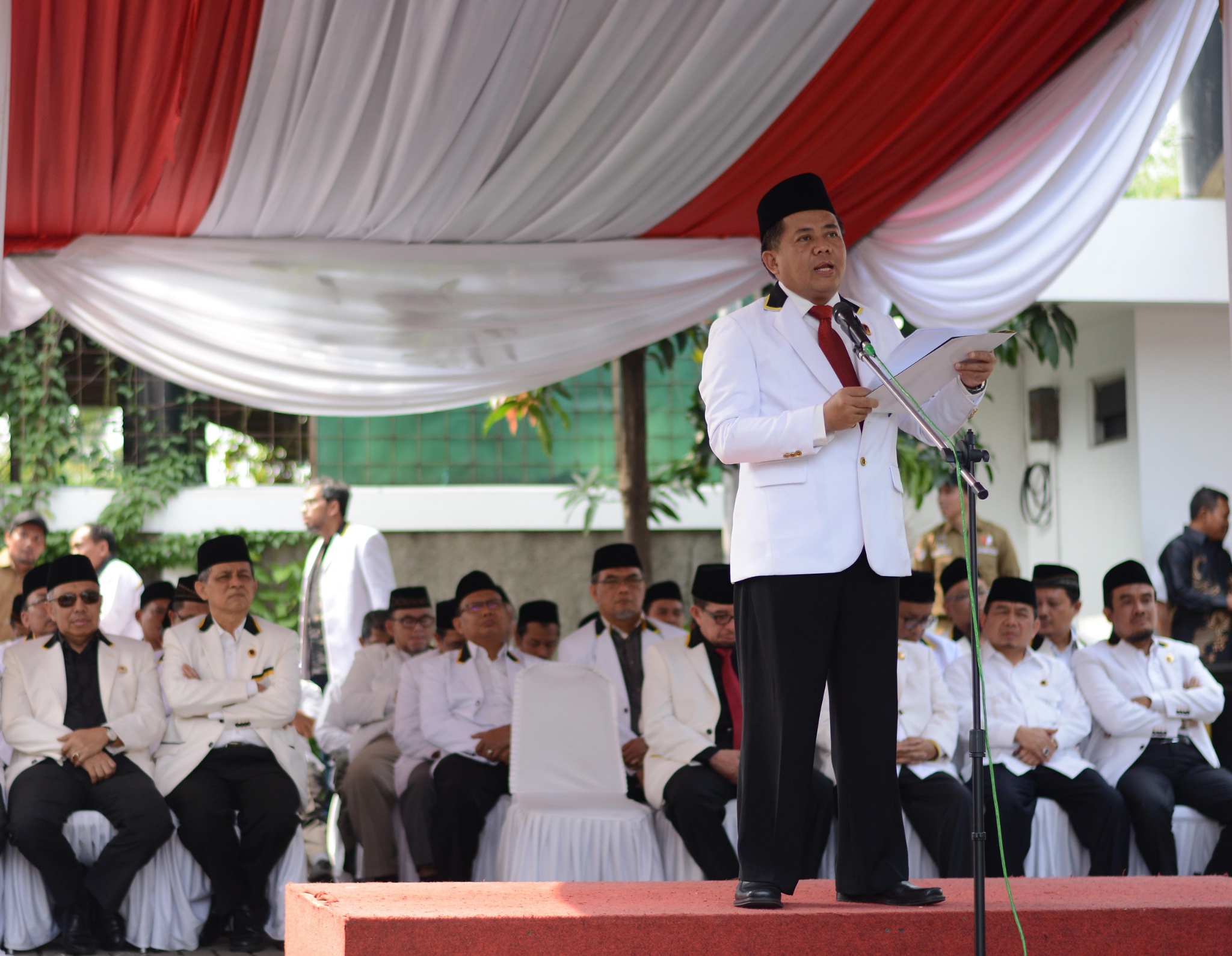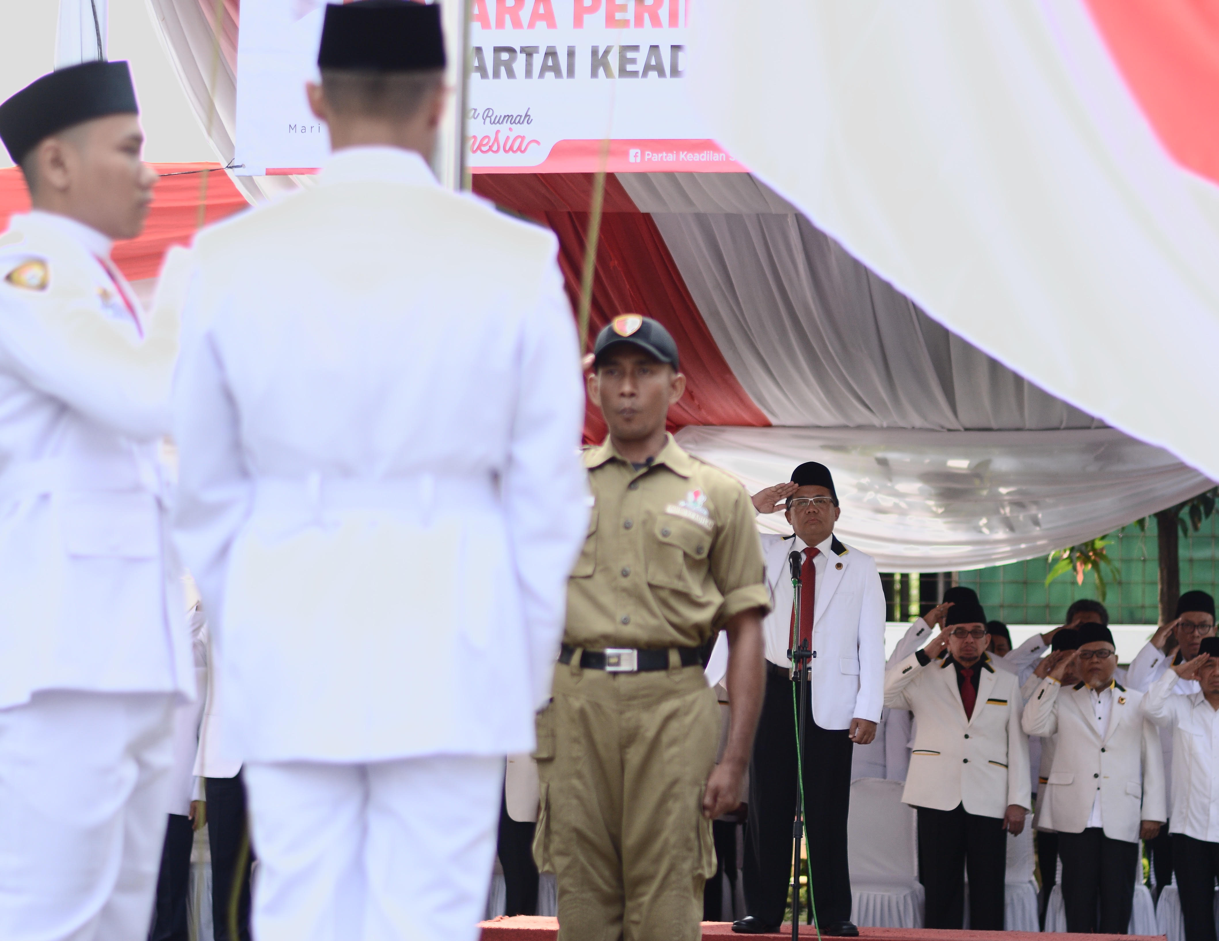 Presiden PKS, Sohibul Iman menjadi Inspektur Upacara saat Memperingati Detik-Detik Proklamasi Kemerdekaan di Kantor DPP PKS, Jakarta, Kamis, (17/8). Presiden PKS Sohibul Iman mengingatkan tantangan bagi generasi penerus kemerdekaan yaitu menyumbangkan karya nyata untuk kemajuan bangsa, dan bagi PKS konsensus dasar kehidupan berbangsa dan bernegara. AKTUAL/Humas PKS