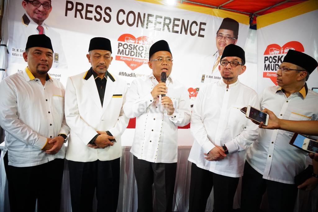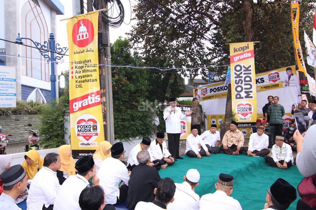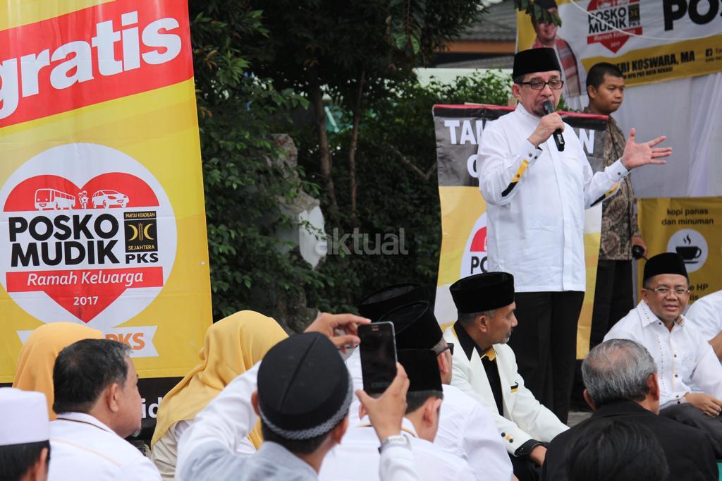 Rangkaian acara launching posko mudik PKS 2017, nampak Ketua Majelis Syuro PKS Salim Segaf Al Jufrie tengah memberikan kata sambutan dan sekaligus meresmikan posko mudik PKS di Jalan Inspeksi Kalimalang, Bekasi, Jawa Barat, Kamis (22/6). AKTUAL/HO