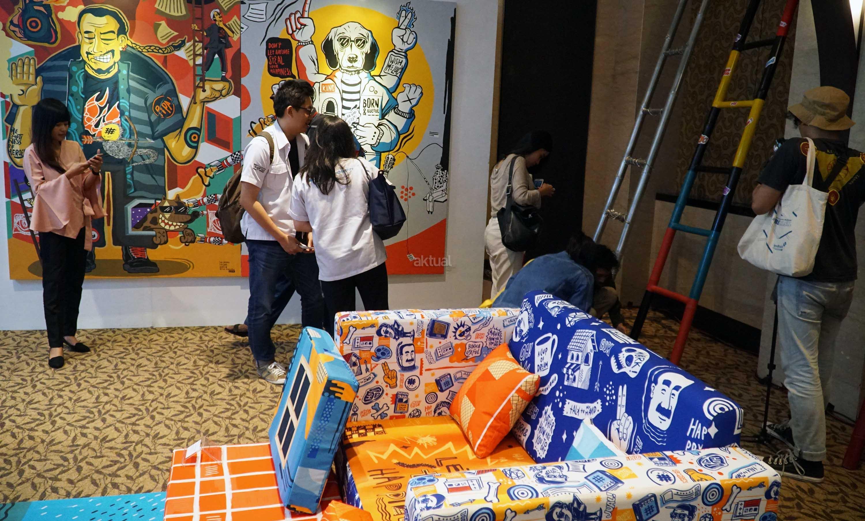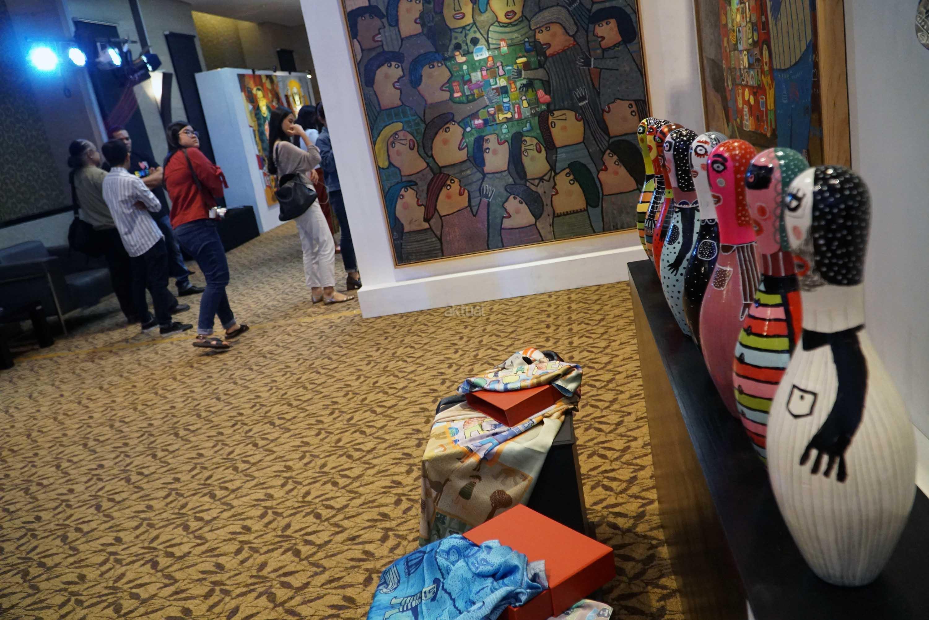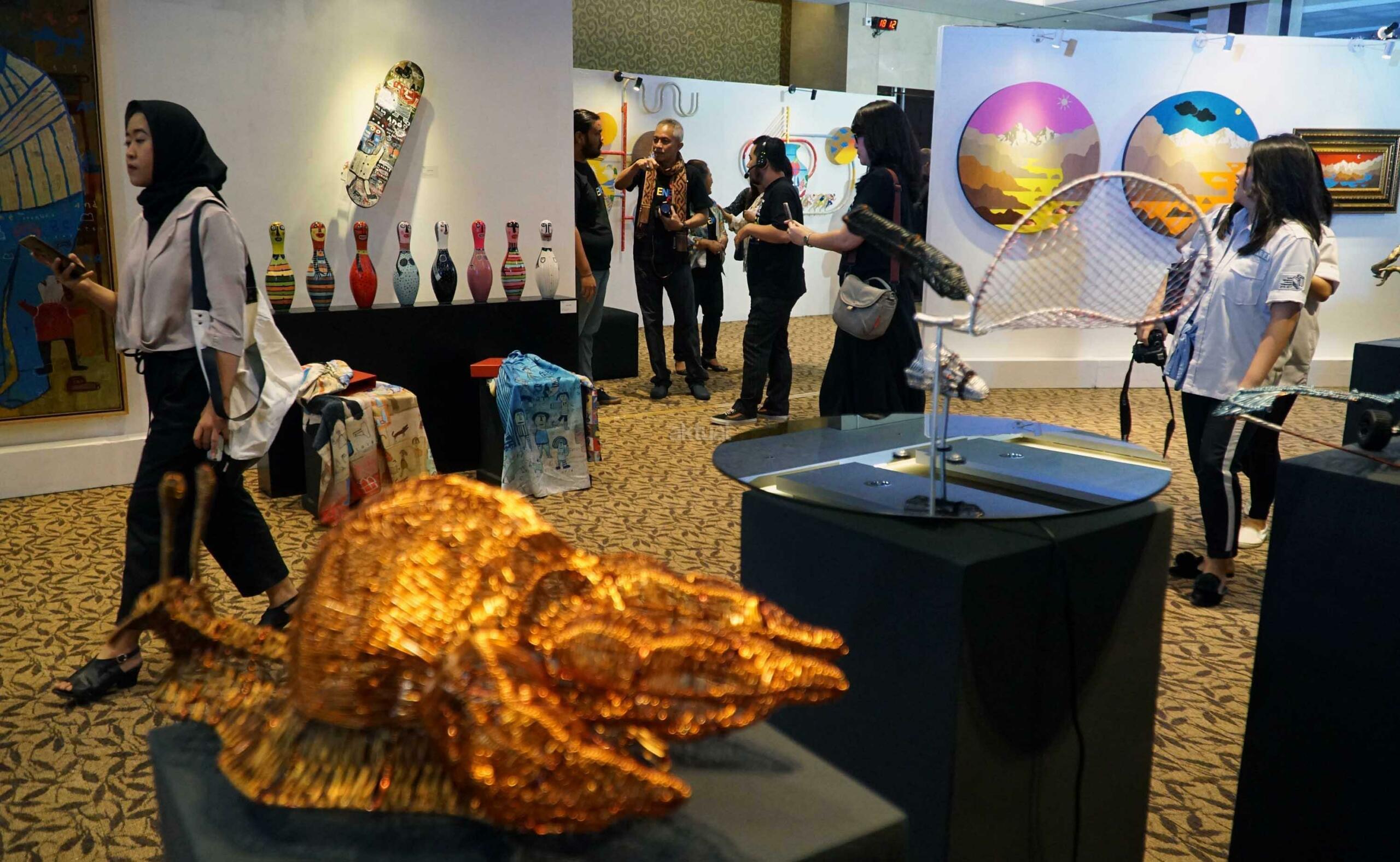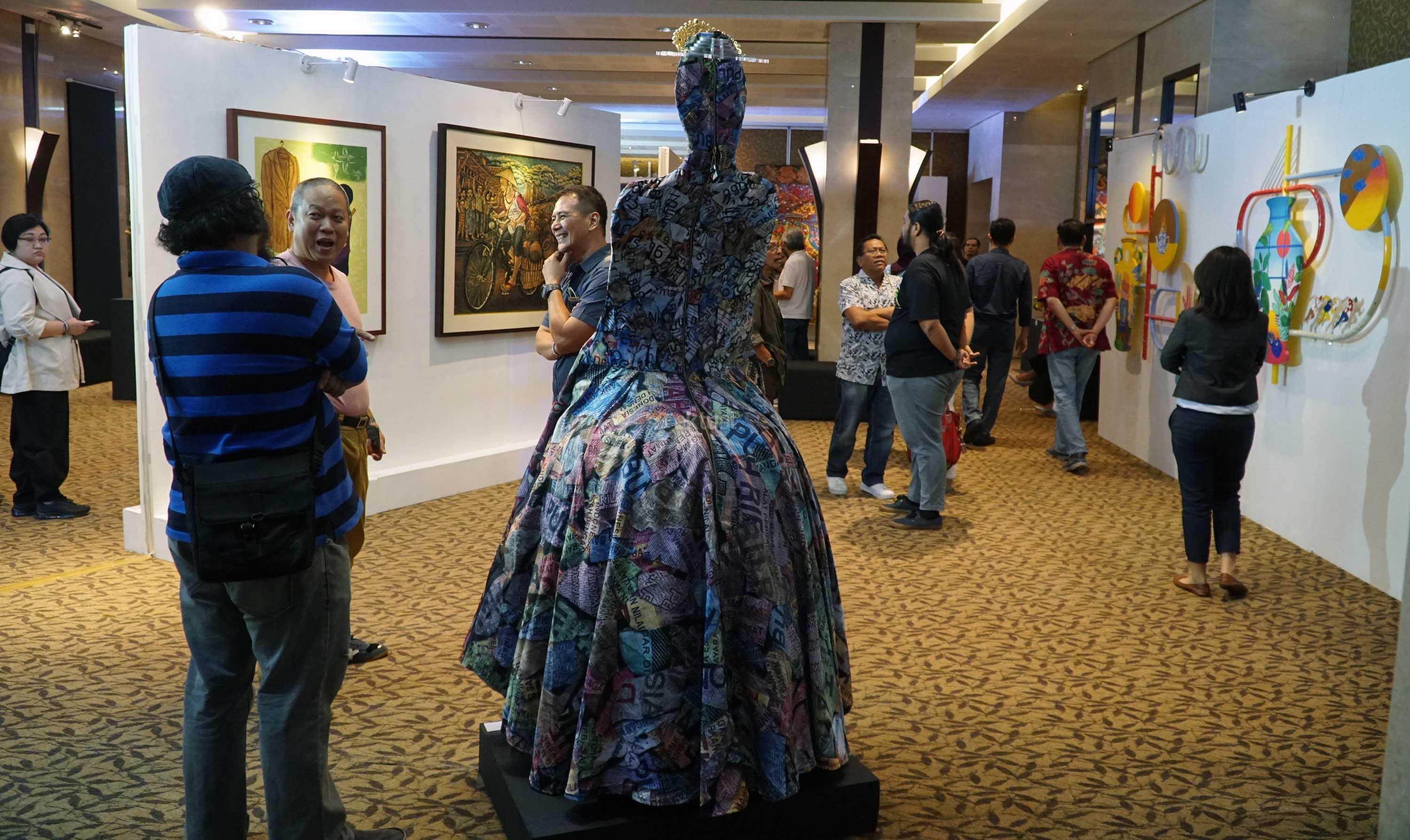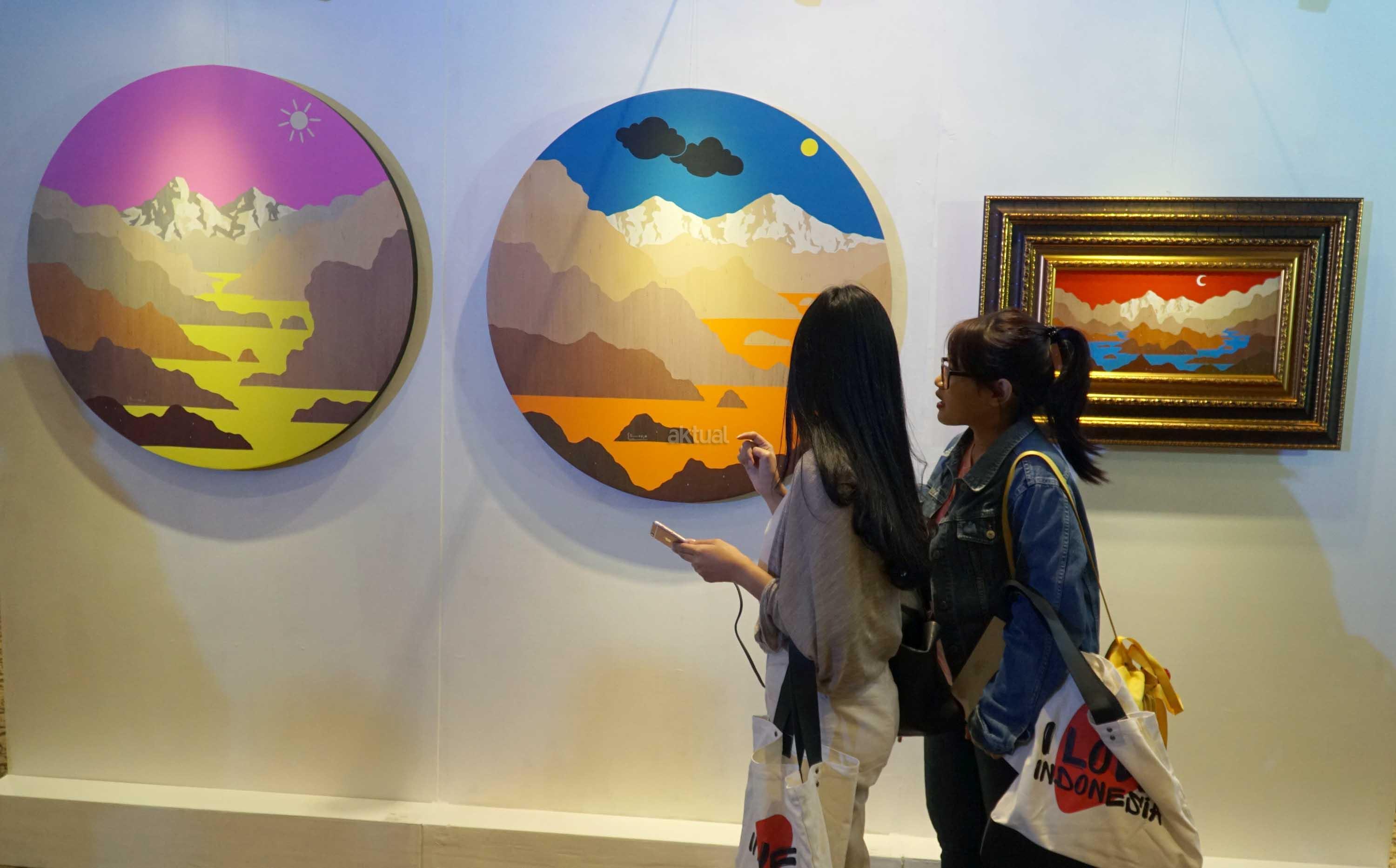 Pengunjung dan penikmat seni menyaksikan karya seni terbaik Seniman Indonesia pada pembukaannya di Multi Function Hall, Plaza Indonesia, Jakarta, Senin (13/8) .Sebagai Pusat Perbelanjaan premium dan gaya hidup terdepan yang telah sejajar dengan mall mal high end di dunia ,Salah satu komitmen Plaza Indonesia adalah menjaga citra seni dan budaya Indonesia.Sekaligus memperingati HUT Kemerdekaan RI ke 73 dan menyambut perhelatan Asian Games ke 18, untuk kedua kalinya Plaza Indonesia mempersembahkan Energi Seni-Fine Art Exhibition. Pameran yang menampilkan lebih dari 40 karya senin dari 18 seniman Indonesia lintas generasi dan lintas aliran yang berasal dari berbagai daerah di Indonesa dengan berbagai karya lukisan, patung, instalasi dan juga pertunjukan seni. AKTUAL/Eko S Hilman