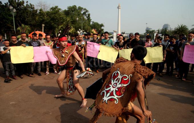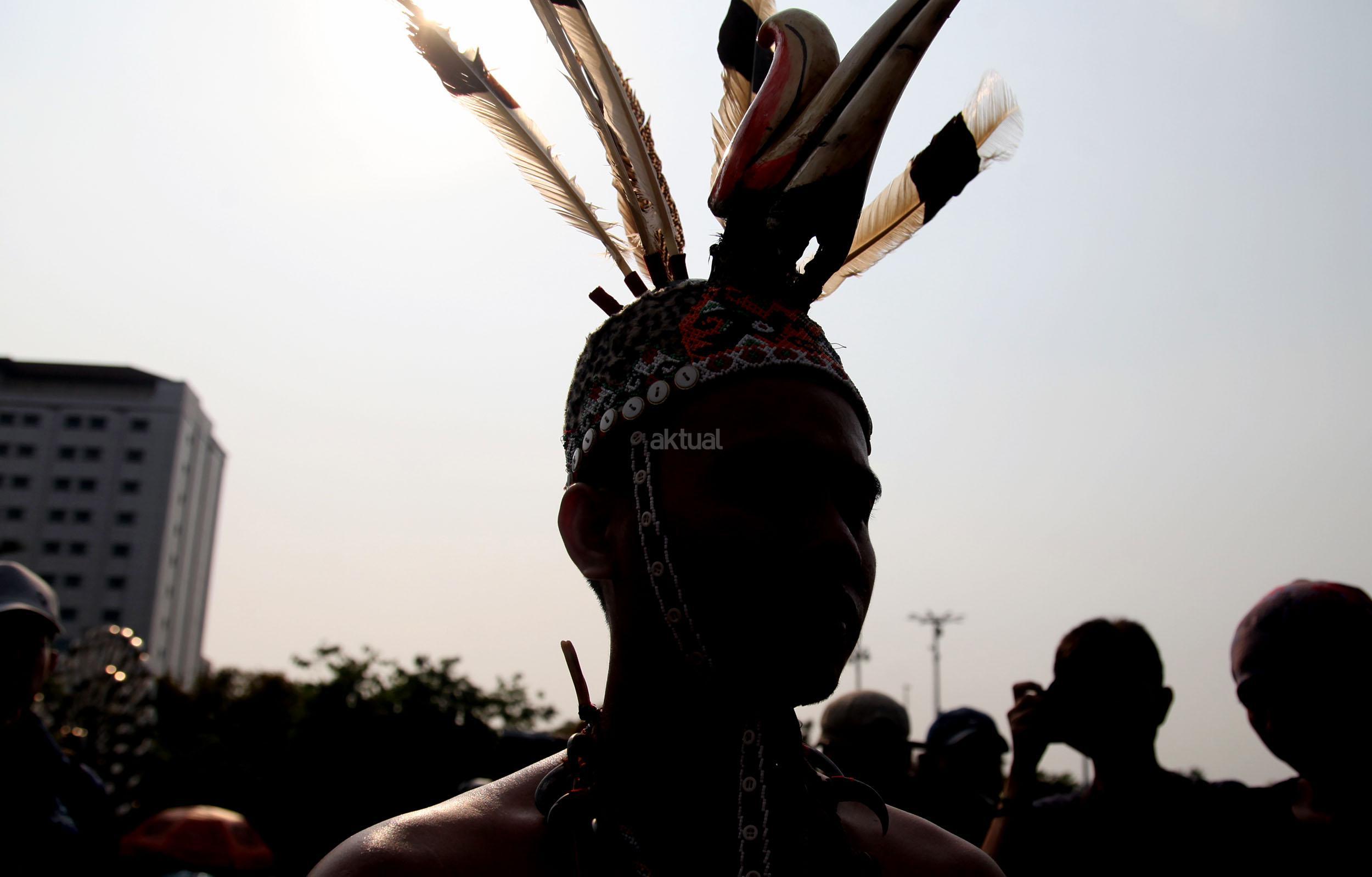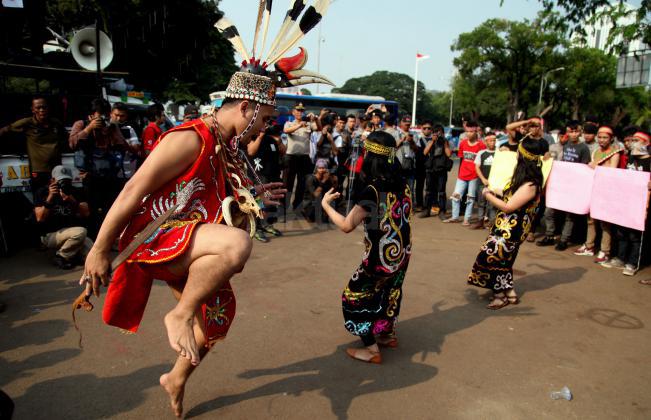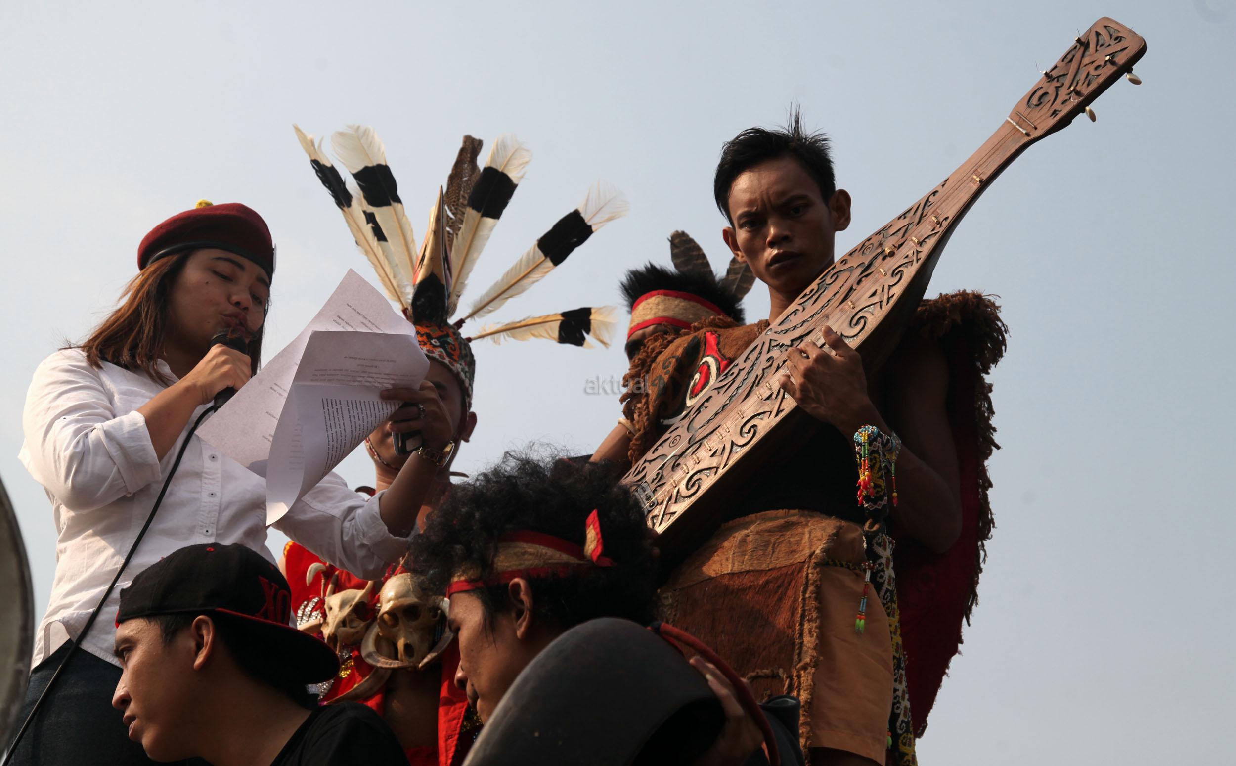 Para mahasiswa juga menampilkan kesenian tradisional Dayak yang menyimbolkan keperihatinan dimana wilayah Kalimantan, Sumatera yang dimana kabut asap belum terselesaikan dan semakin memparah.