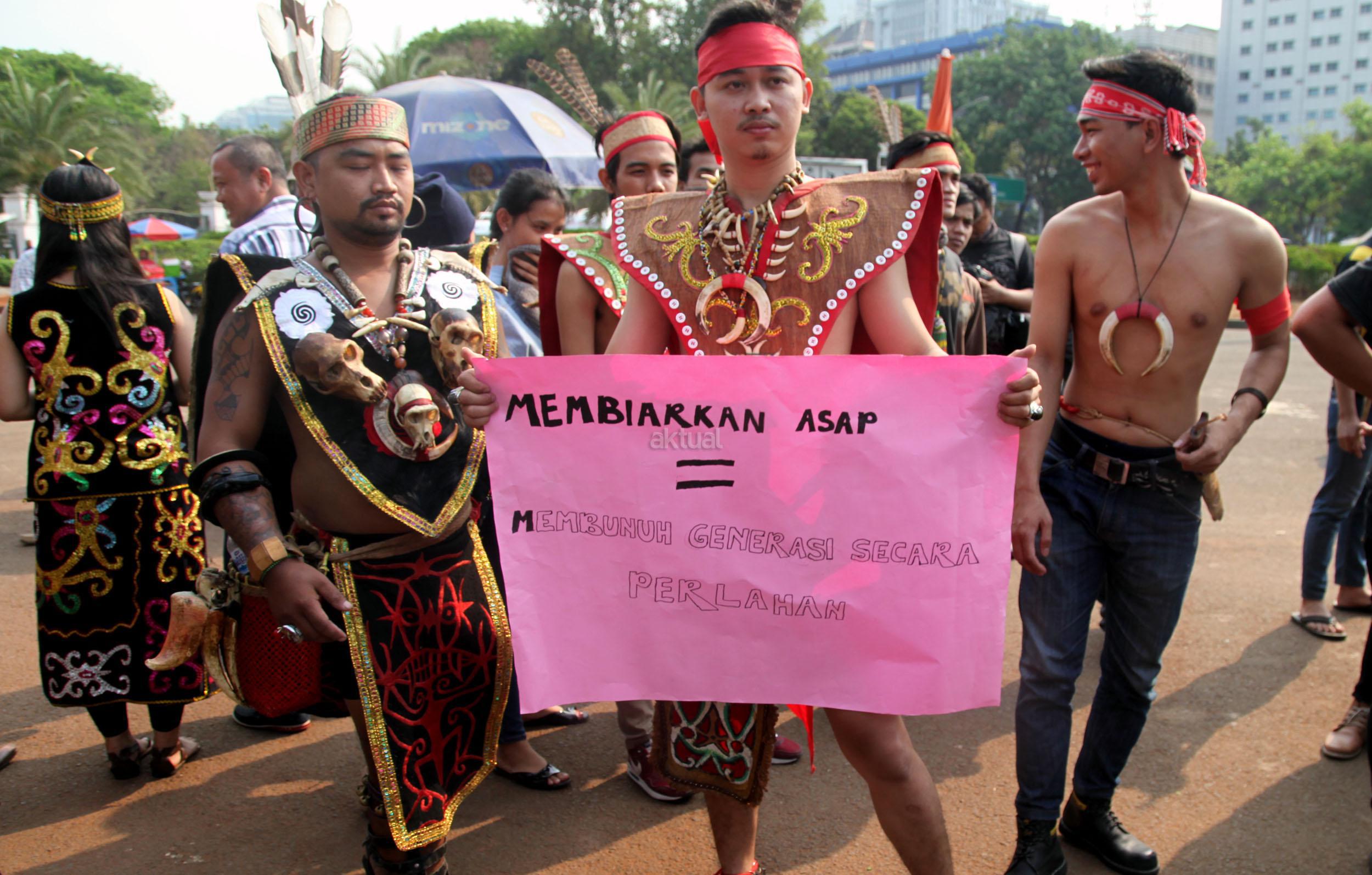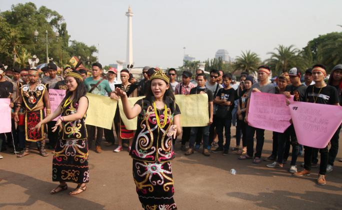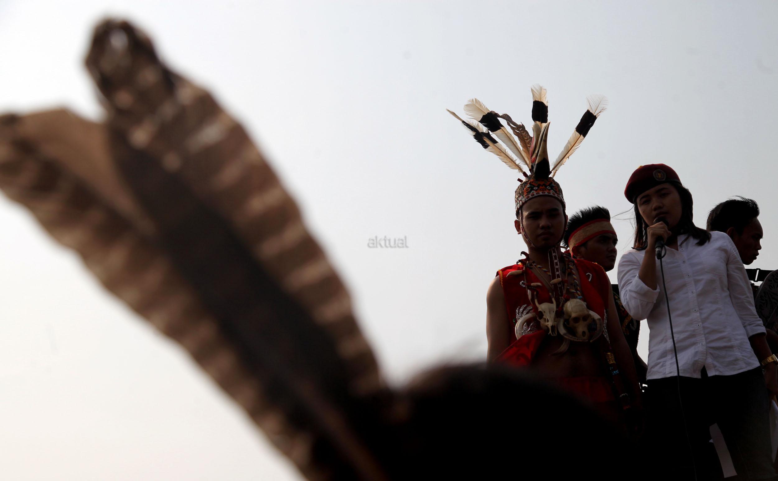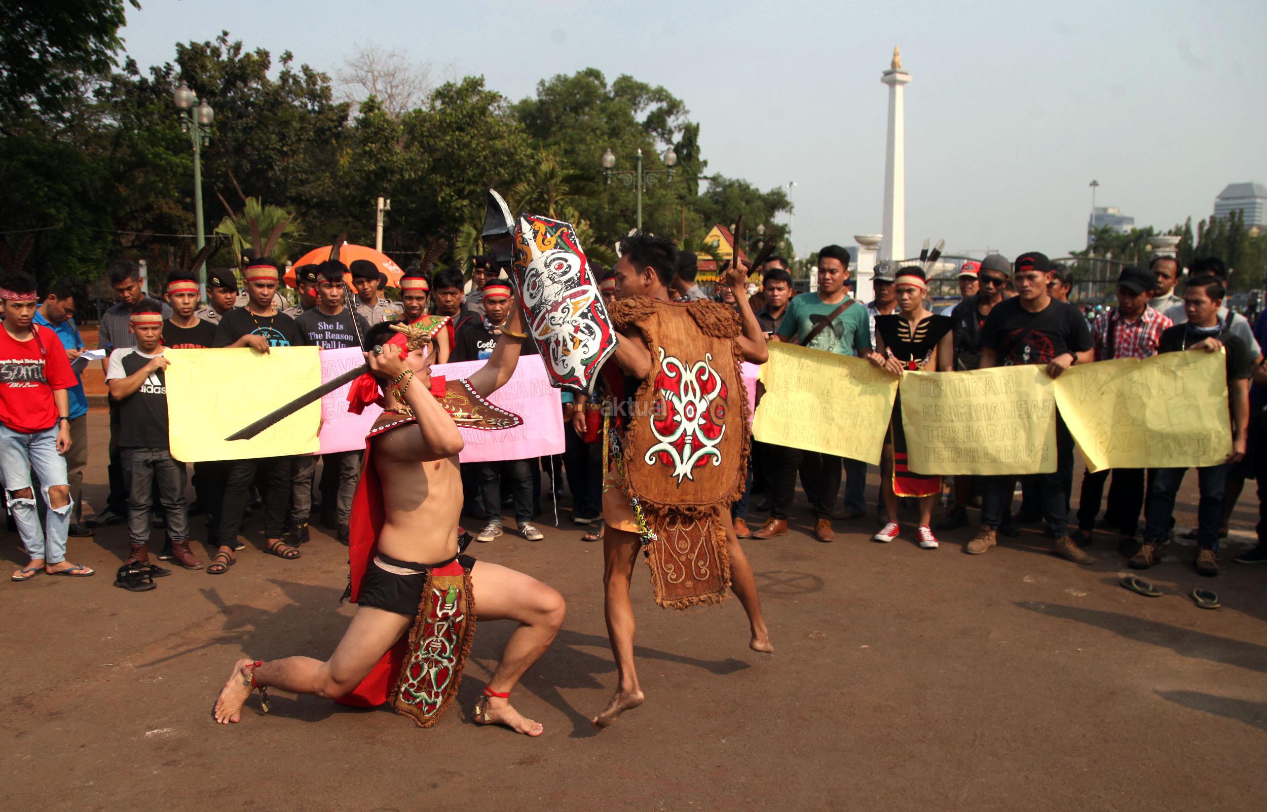 Para mahasiswa juga menampilkan kesenian tradisional Dayak yang menyimbolkan keperihatinan dimana wilayah Kalimantan, Sumatera yang dimana kabut asap belum terselesaikan dan semakin memparah.