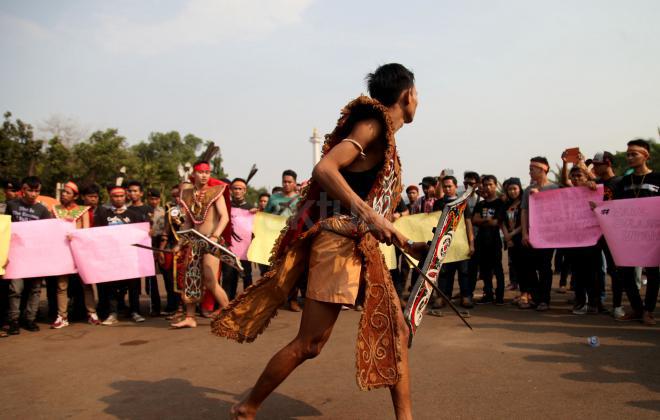 Para mahasiswa juga menampilkan kesenian tradisional Dayak yang menyimbolkan dimana wilayah Kalimantan, Sumatera yang dimana kabut asap belum terselesaikan dan semakin memparah.
