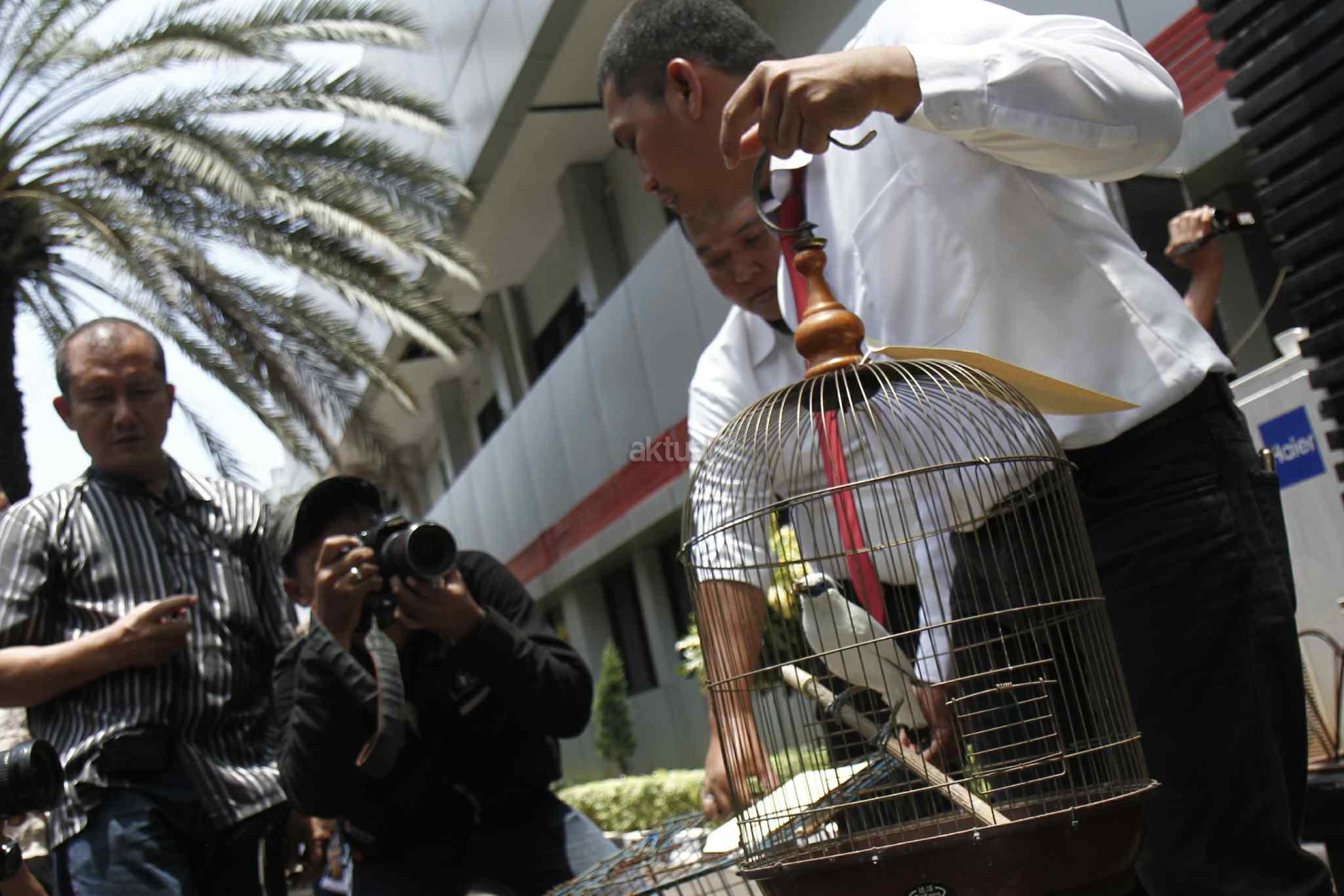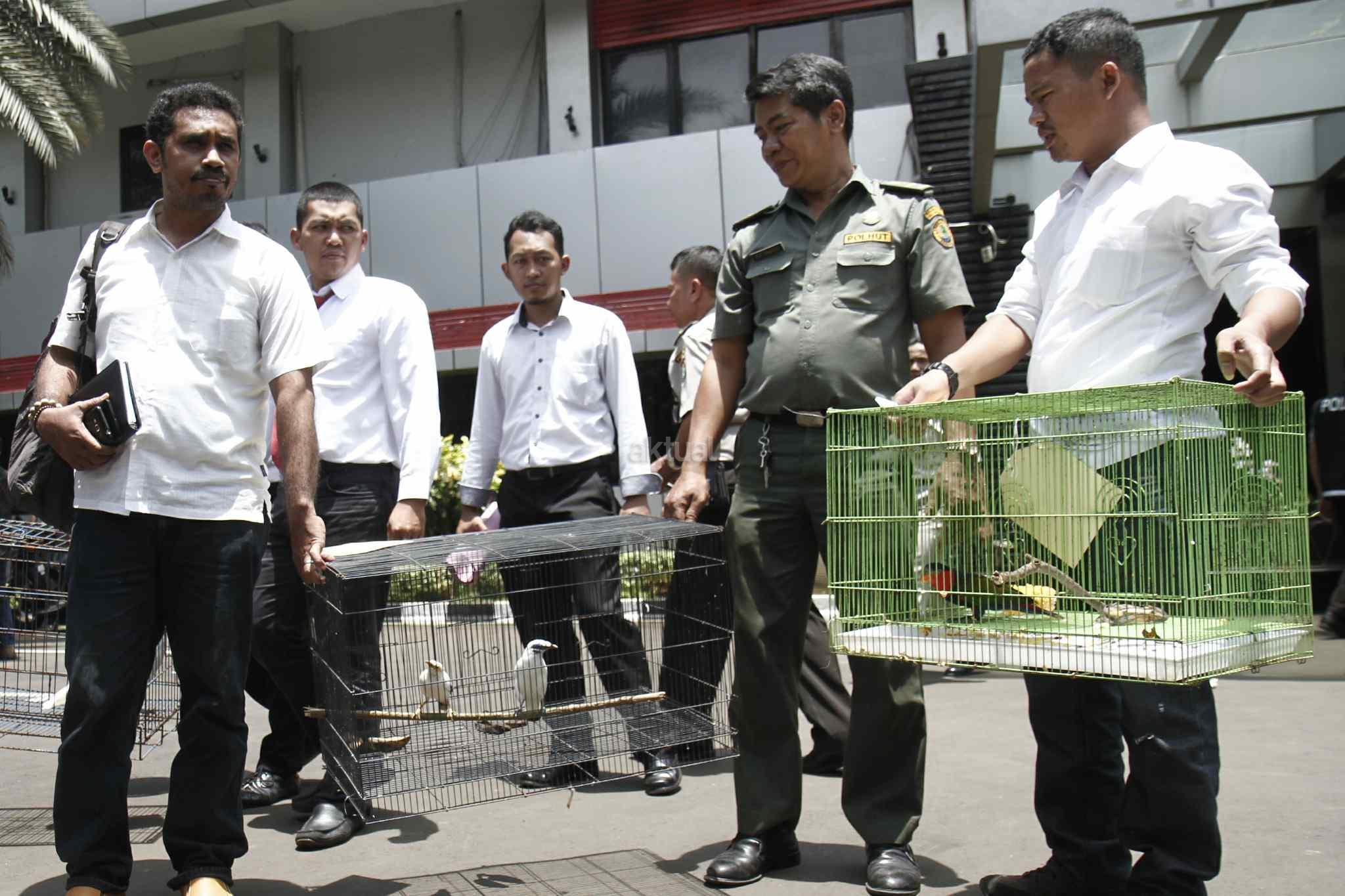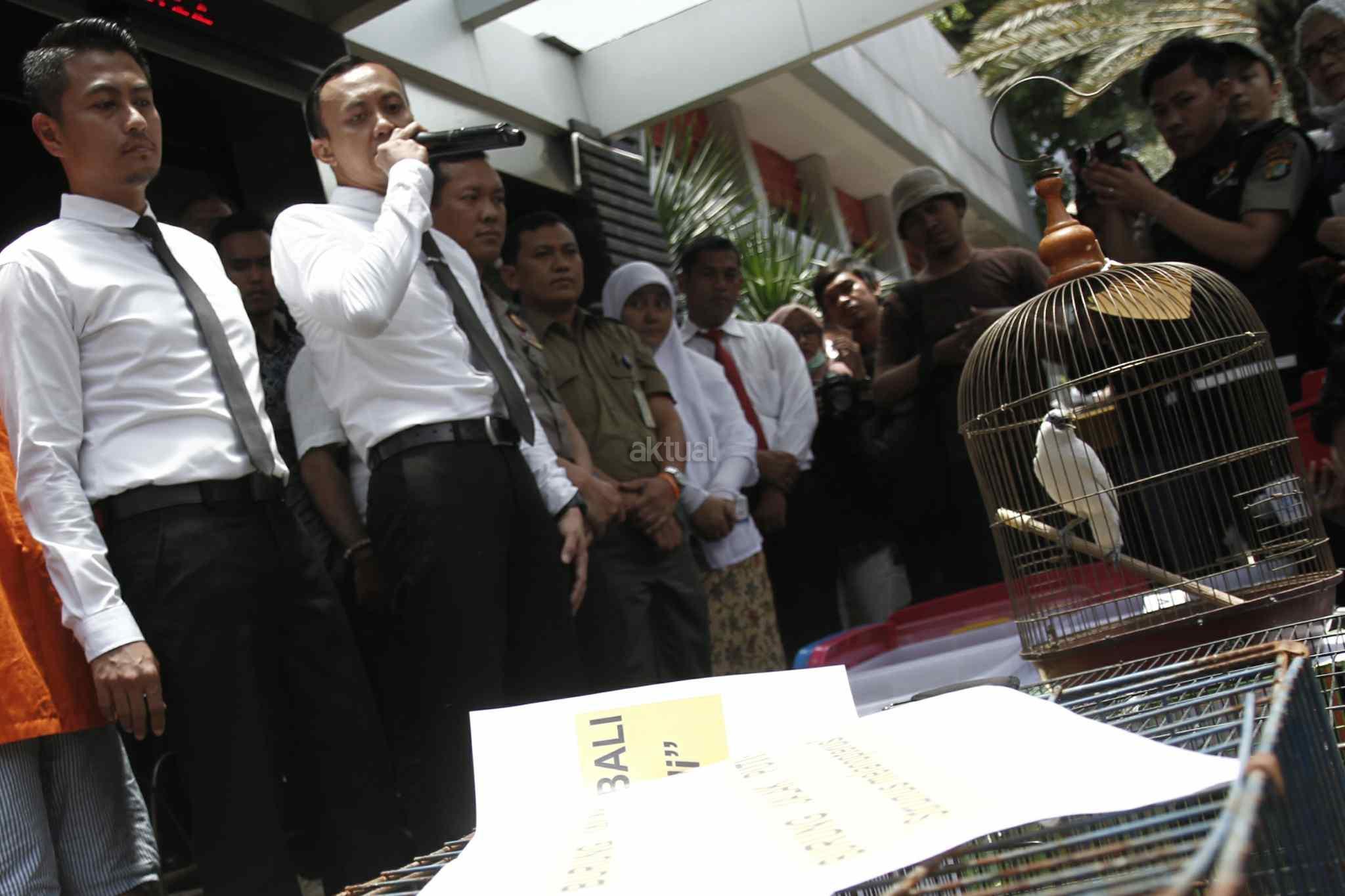 Perdagangan satwa dilindungi tersebut dilakukan oleh 3 orang tersangka dengan jenis satwa seperti burung Kakatua Jambul Kuning, burung Nori Merah Kepala Hitam, burung Jalak Bali, burung jalak putih serta 5 ekor Kukang dengan hasil penjualan mencapai puluhan juta rupiah. Aktual/Tino Oktaviano