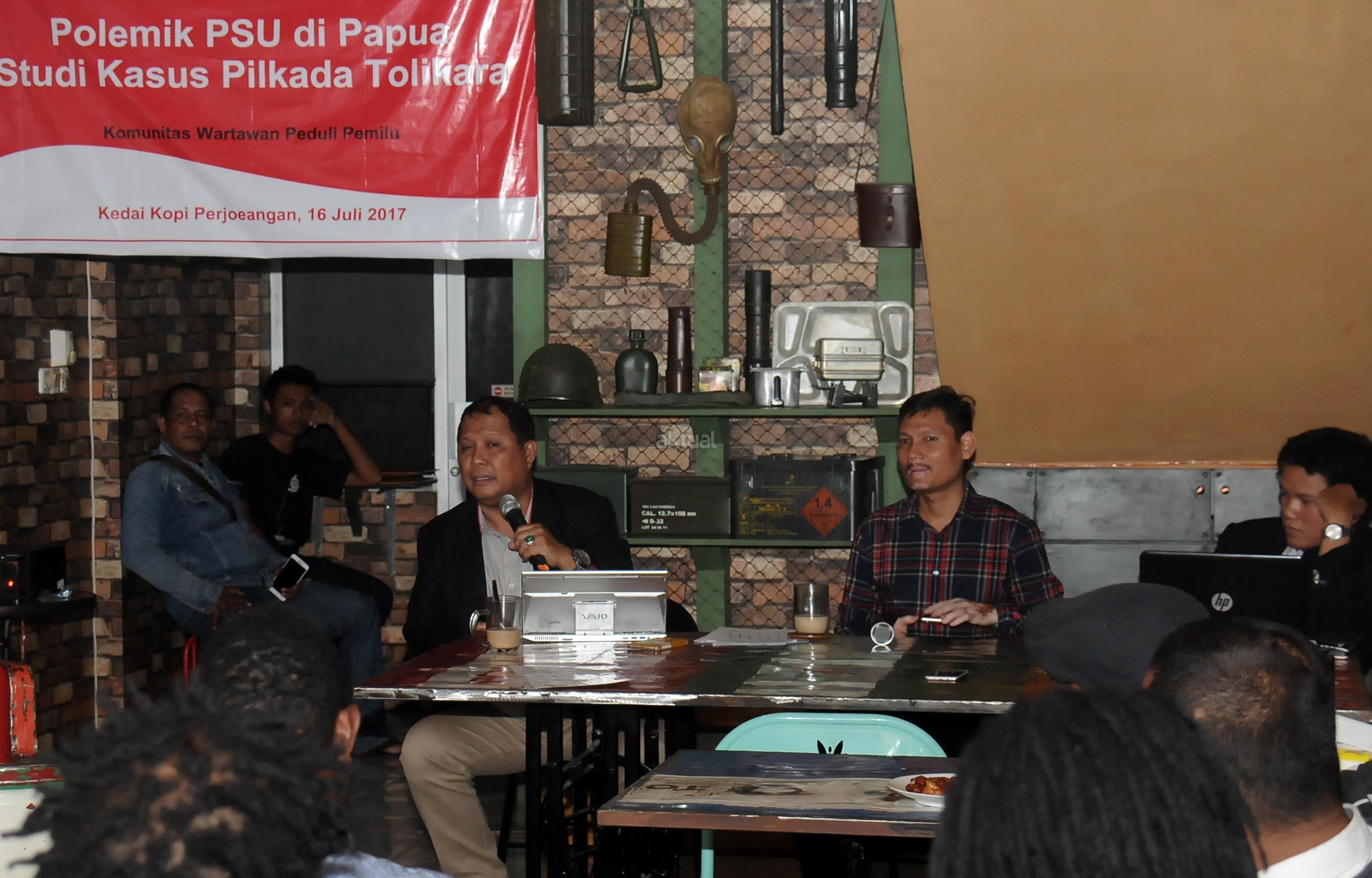 Dalam. Diskusi tersebut mantan anggota Bawaslu RI dan Kordinator Perhimpunan Advokasi Pemilu dan Konstitusi meminta kepada Mahkamah Konstitusi untuk tegas menanggapi kasus pemilu yg terjadi di Tolikara. AKTUAL/Munzir