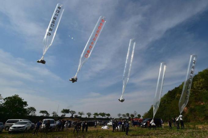 Sekitar 20 aktivis pembelot Korea Utara berkumpul di sebuah taman di kota perbatasan, Paju. Mereka telah menyiapkan balon gas yang diikatkan dengan tumpukan selebaran.