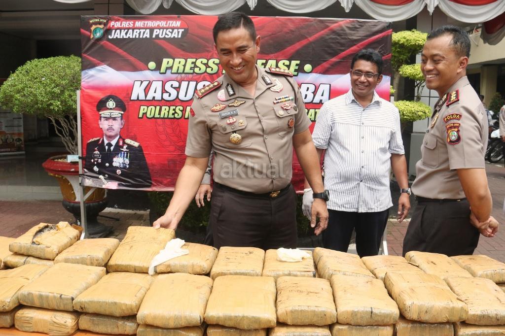 Dalam jumpa persnya Polres Metro Jakarta Pusat mengungkap penyelundupan narkotika jenis ganja seberat 66,6 Kilogram (Kg) dan berhasil menangkap dua bandar ganja yang merupakan jaringan Aceh – Jakarta. AKTUAL/Munzir