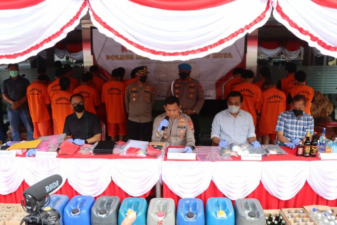 “Dari peredaran miras ada 110 kasus, dengan 116 tersangka, jumlah keseluruhan barang bukti yang disita 892 miras berbagai merek dan enam drum ciu,” ujar Kapolres.
