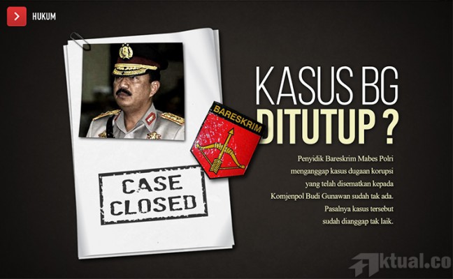 Jakarta, Aktual.co — Penyidik Badan Reserse Kriminal Mabes Polri menganggap, kasus dugaan korupsi yang telah disematkan kepada Komisaris Jenderal Polisi Budi Gunawan sudah tak ada. Pasalnya, kasus tersebut sudah dianggap tak laik.