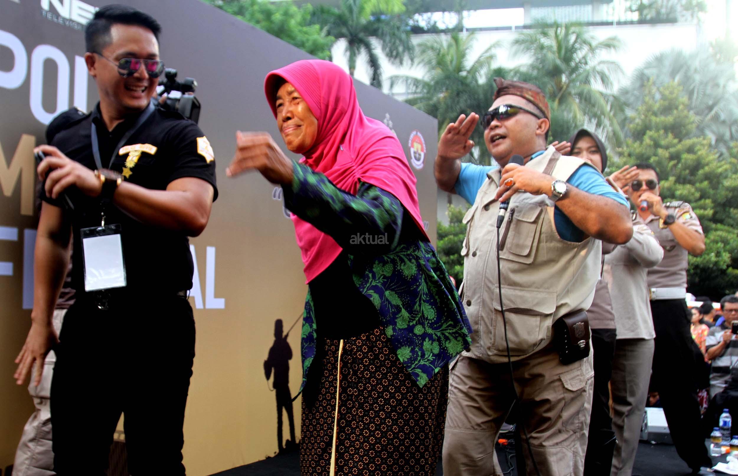 Sejumlah Polisi berpose dengan replika rol film, Jakarta, Minggu (16/4/2017). Memperingati ulang tahun Korps Polri ke-72, festival film pendek dan film animasi bertajuk Police Movie Festival digelar untuk yang keempat kalinya. AKTUAL/Munzir