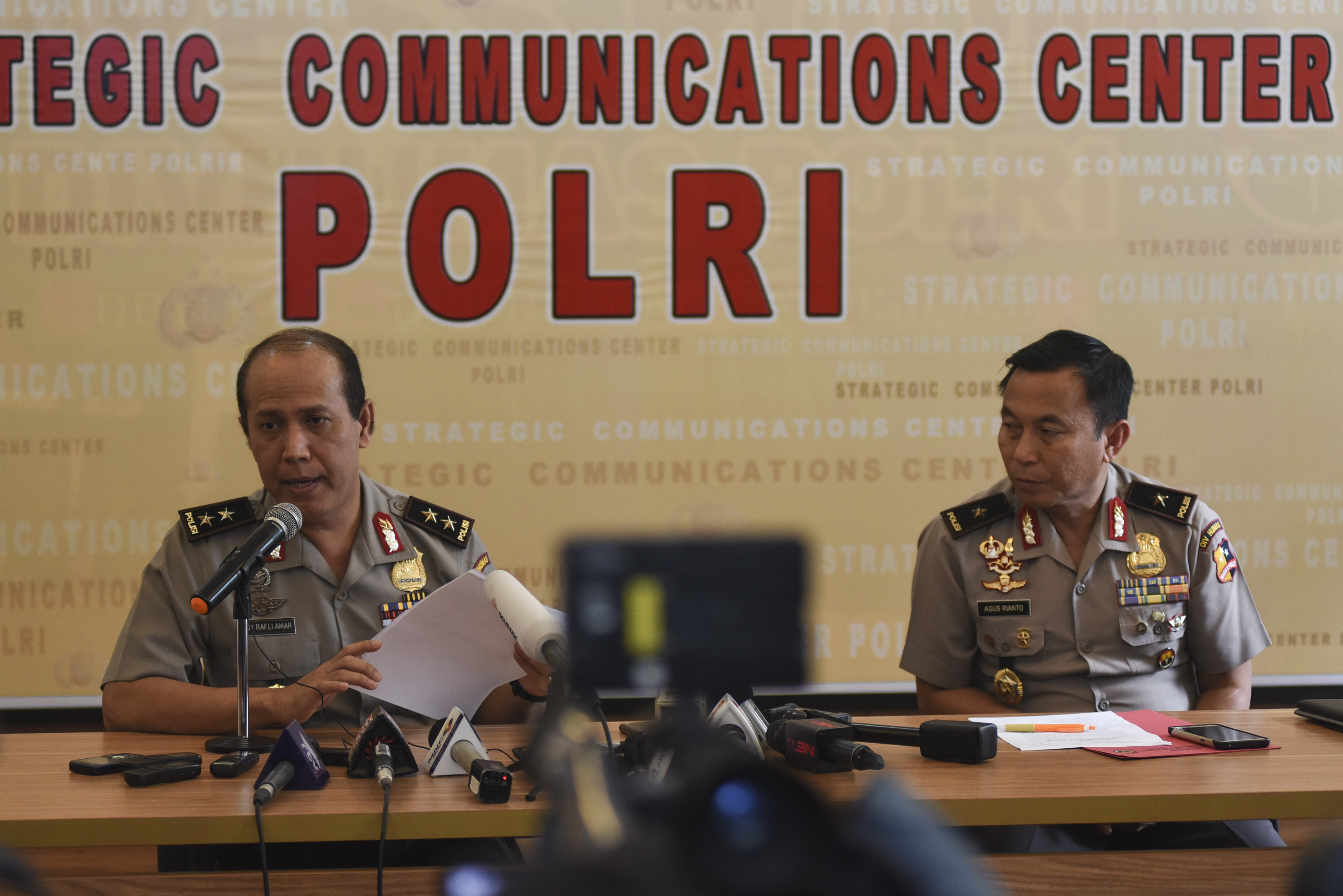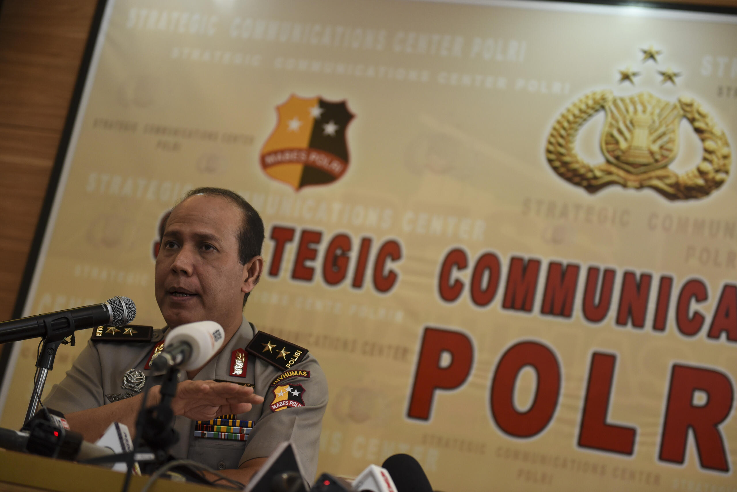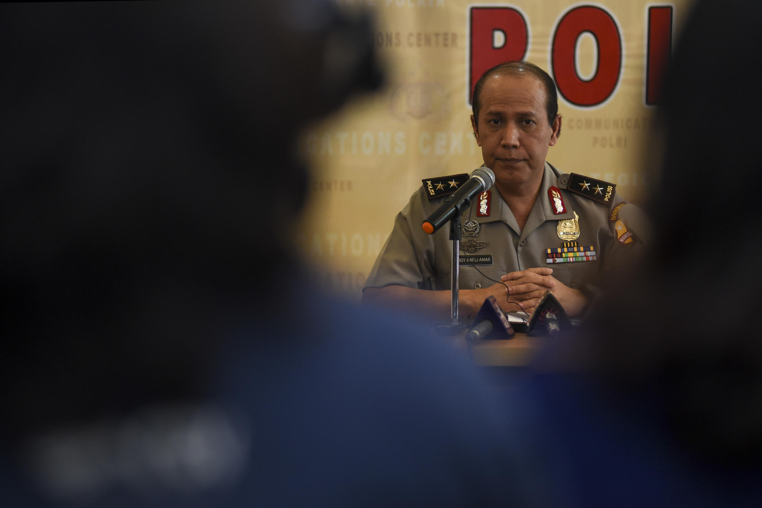 Kadiv Humas Polri Irjen Pol Boy Rafli Amar memberikan keterangan kepada wartawan terkait kontak senjata yang diduga menewaskan teroris Santoso di Mabes Polri, Jakarta, Selasa (19/7). Polri menyatakan masih terus melakukan identifikasi untuk memastikan dugaan tewasnya teroris Santoso dalam baku tembak pada Senin (18/7) saat Operasi Tinombala 2016 di Tambarana, Poso. ANTARA FOTO/Hafidz Mubarak A/foc/16.