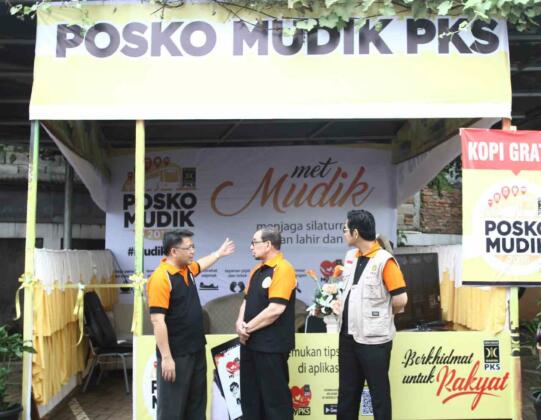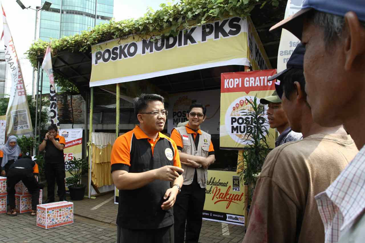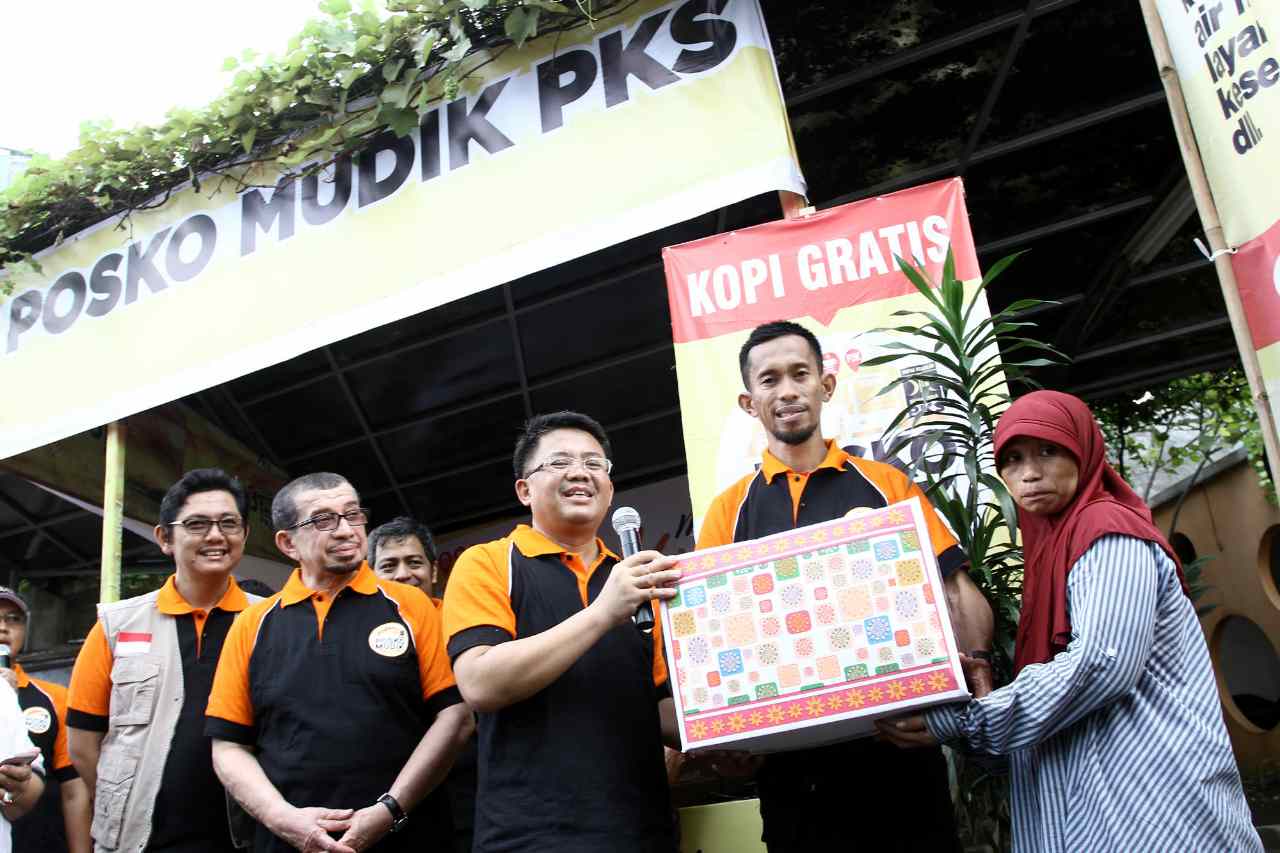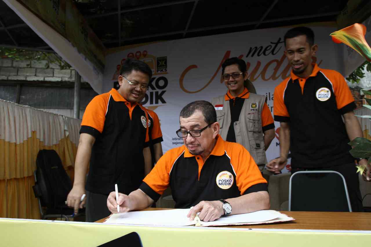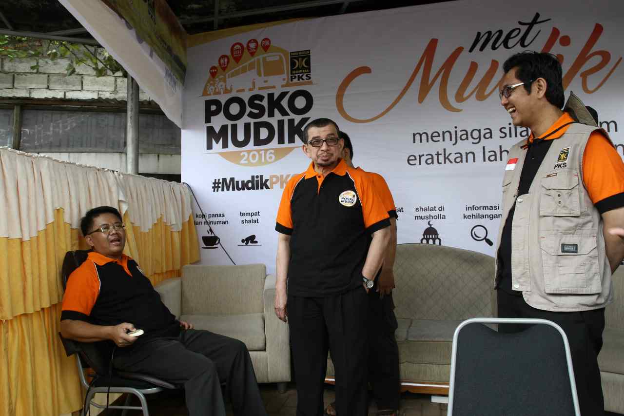 Presiden Partai Keadilan Sejahtera (PKS) Sohibul Iman (kiri) bersama Ketua Majelis Syuro PKS Salim Segaf Al Jufri (tengah), dan Sekjen PKS Mustafa Kamal saat membuka posko mudik PKS di Kantor DPP PKS, Jakarta Selatan, Minggu (3/7). PKS membuka 75 posko mudik yang tersebatr di Jawa, Sumatera, dan Sulawesi untuk yang menyediakan tempat istirahat dan solat bagi para pemudik.