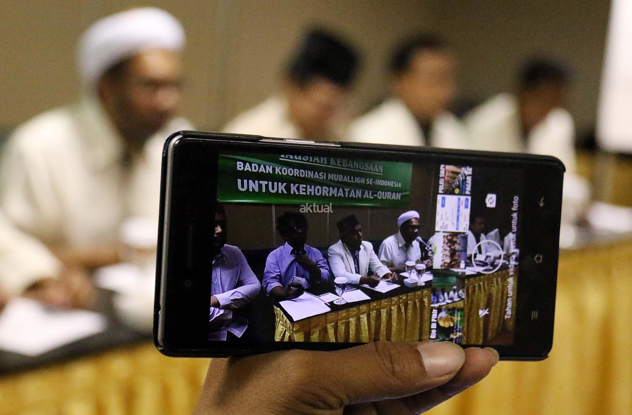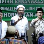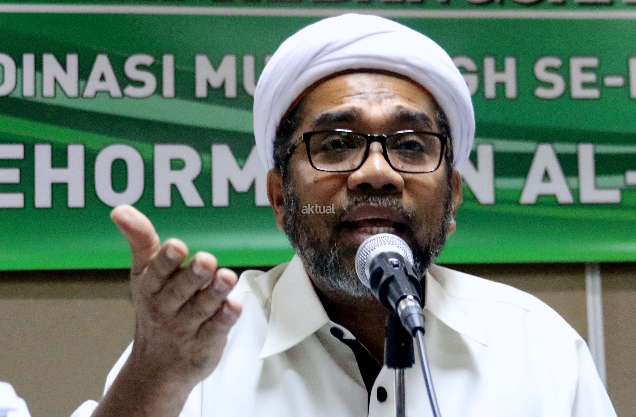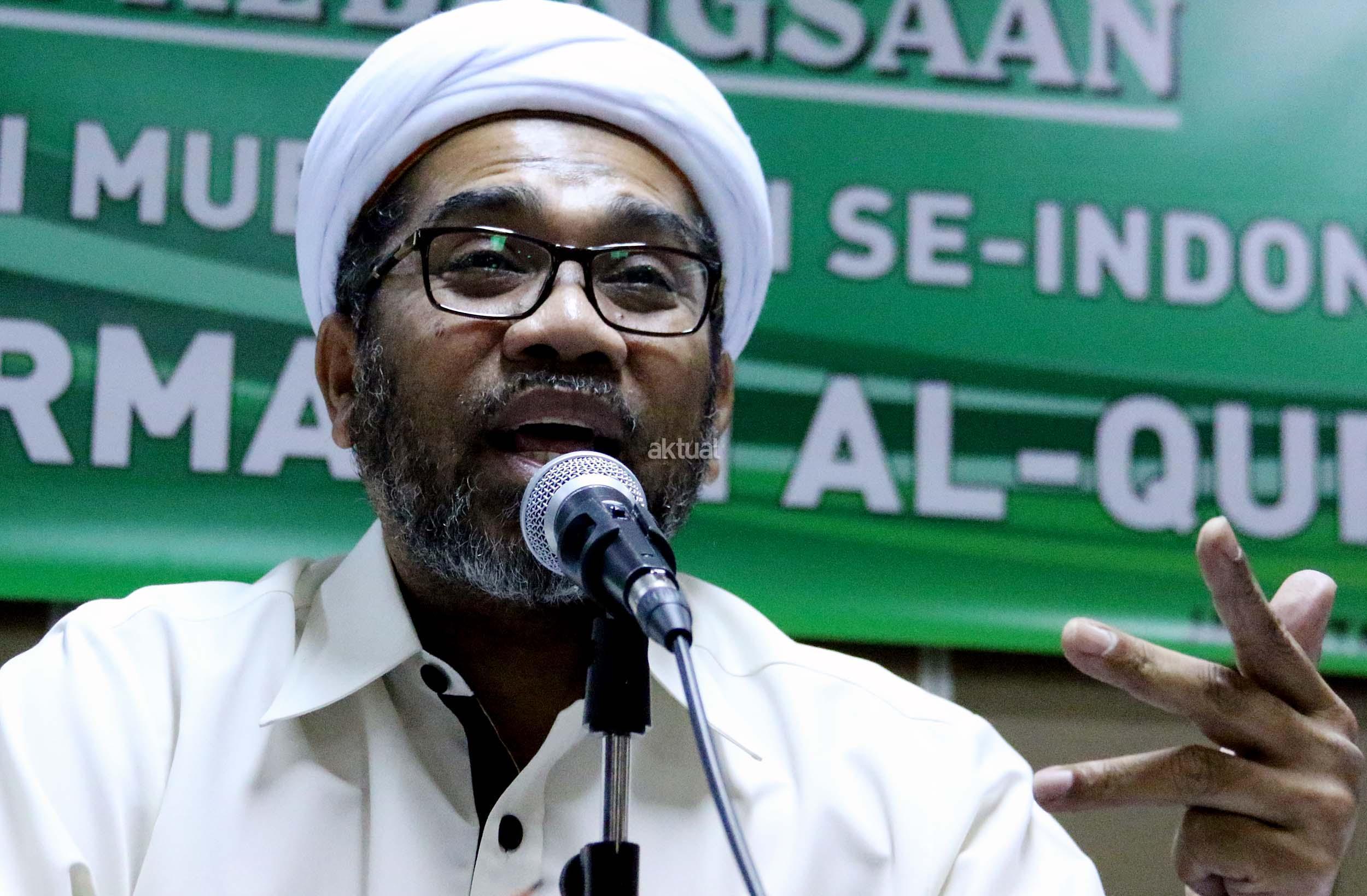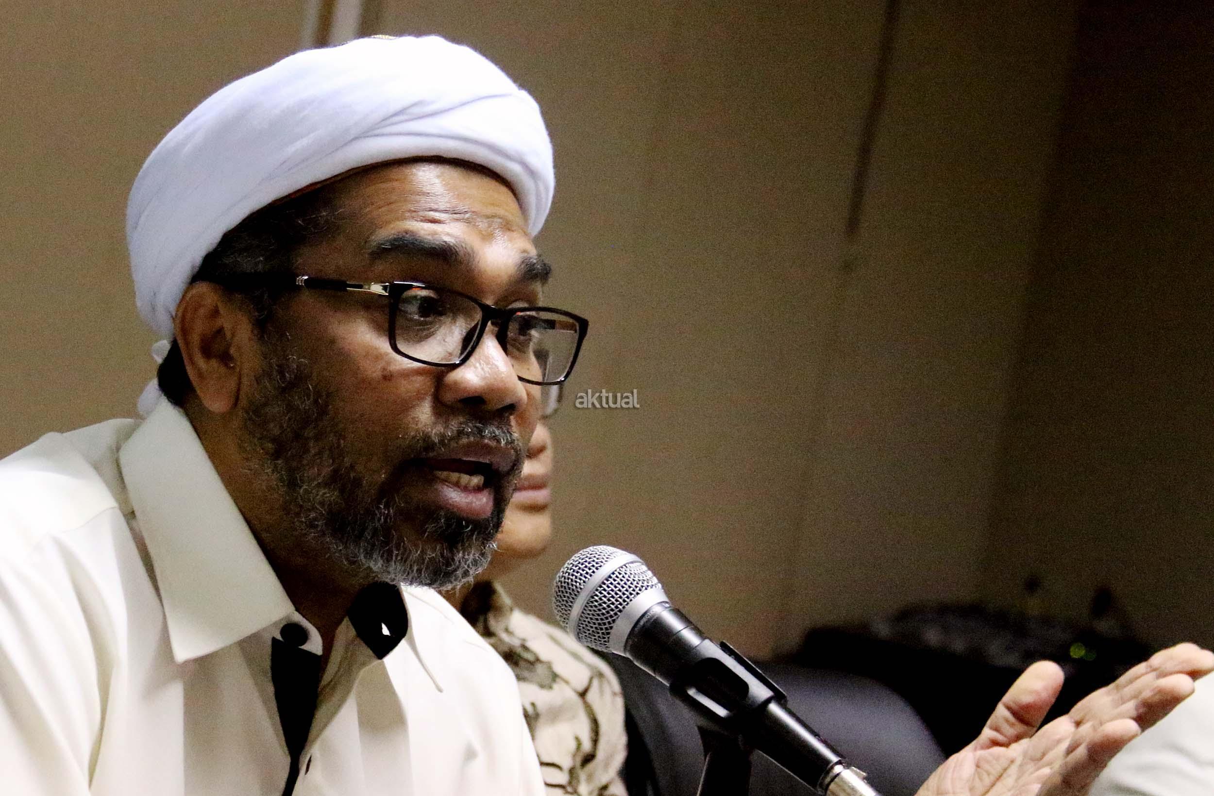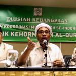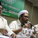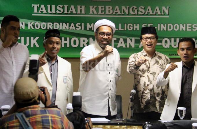 Ketua Umum PP Badan Koordinasi Muballigh se-Indonesia (Bakomubin) Ali Mochtar Ngabalin (tengah) didampingi sejumlah pengurus memberikan keterangan pers mengenai Aksi Damai pada tanggal 4 November 2016 di Jakarta, Kamis (3/11/2016). Dalam keterangannya PP Bakomubin mendesak pihak kepolisian untuk segera memeriksa Basuki Tjahaja Purnama terkait pernyataannya yang dinilai telah menyinggung umat muslim. AKTUAL/Munzir