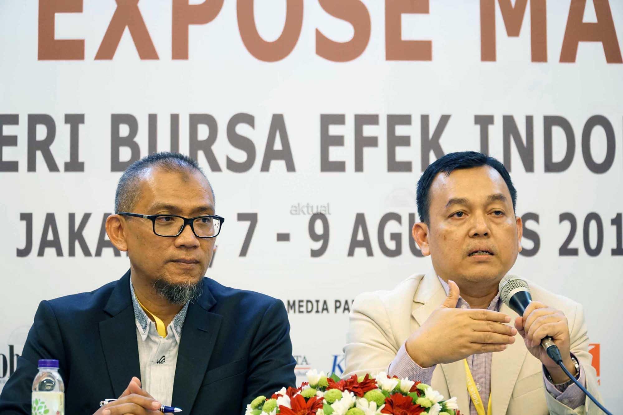 Direktur Utama PT PP properti Tbk (PPRO), Taufik Hidayat (kanan) didampingi Direktur Independen, Nanang Siswanto menyampaikan paparan kinerja di Gedung Bursa Efek Indonesia, selasa (8/8).Pengembang properti terkemuka di Tanah Air PT PP Properti Tbk. (kode saham: PPRO) sukses meraih marketing sales Rp1,97 triliun sepanjang Januari-Juli 2017, atau meningkat pesat sebesar 87% dari periode yang saham tahun lalu Rp1,05 triliun.melonjaknya marketing sales perseroan merupakan bukti bahwa produk-produk yang ditawarkan PPRO diterima dengan sangat baik oleh konsumen Berkat hasil positif marketing sales tersebut, pendapatan PPRO selama Januari-Juli 2017 naik 28% menjadi Rp1,32 triliun dari periode yang sama tahun lalu Rp1,04 triliun. Sementara laba bersih juga meningkat 25% dari Rp160 miliar menjadi Rp200 miliar. Pada tahun ini, perseroan menetapkan sejumlah target kinerja. Marketing sales PPRO dipatok naik 24% menjadi Rp3,1 triliun dari Rp2,5 triliun pada tahun lalu. Perseroan juga menargetkan penjualan naik 19% menjadi Rp2,5 triliun sementara laba bersih naik 20% menjadi Rp438 miliar. Kenaikan ini ditopang oleh rencana ekspansi perseroan untuk mengembangkan sejumlah proyek baru dan gencar melakukan akuisisi lahan. Untuk akuisisi lahan, PPRO menargetkan dapat memiliki cadangan lahan 280 hektare pada tahun ini, atau melonjak lebih dari 3 kali lipat dibandingkan tahun 2016 seluas 70 hektare. Dengan rencana ekspansi itu, PPRO memperkirakan pertumbuhan aset mencapai 48% menjadi Rp13,1 triliun pada tahun ini dari Rp8,8 triliun pada tahun lalu, sementara ekuitas melonjak 100% menjadi Rp5,8 triliun dari Rp2,9 triliun. AKTUAL/Eko S Hilman