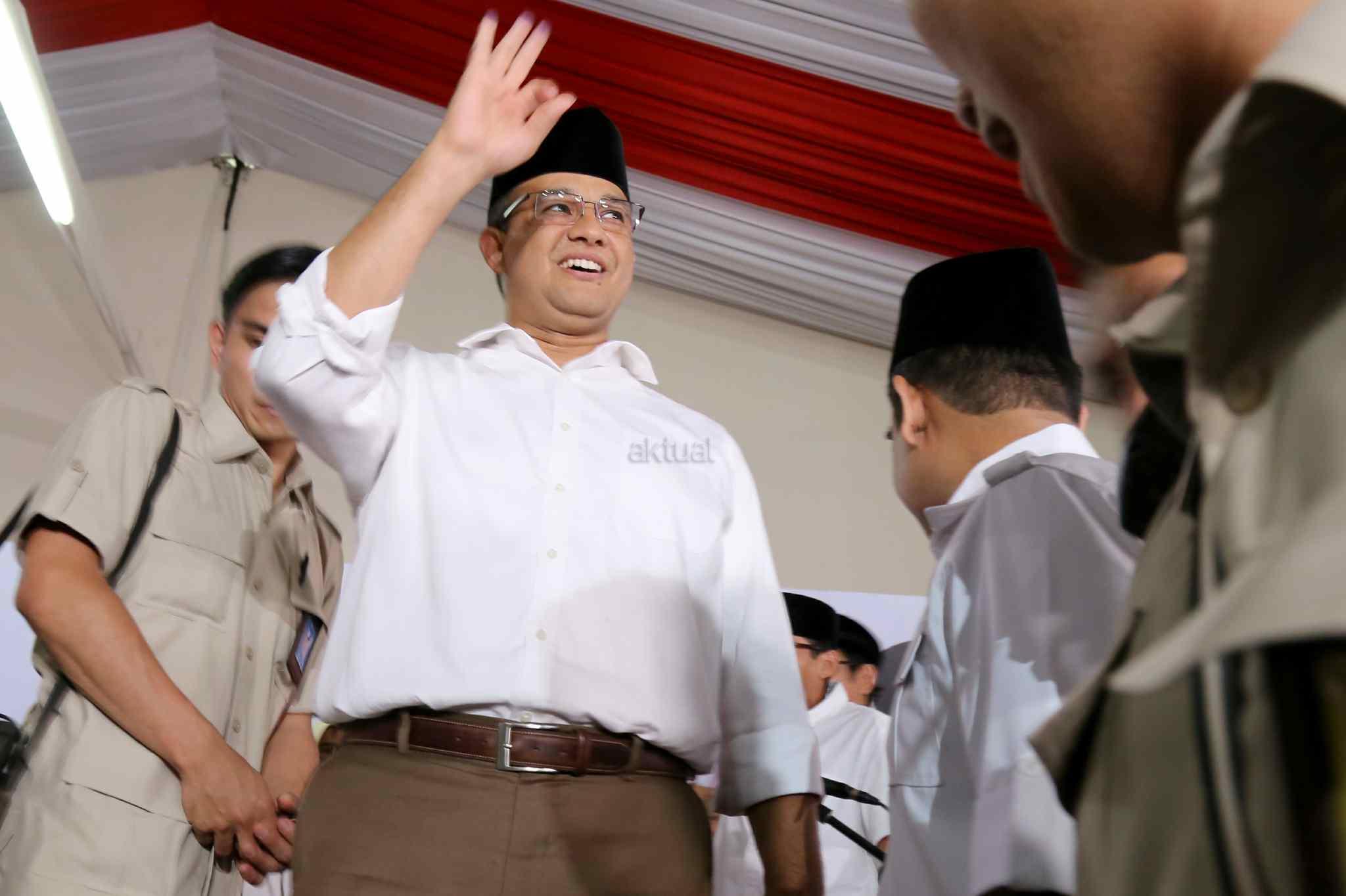 Calon gubernur DKI, Anies Baswedan usai memberikan keterangan di DPP Gerindra, Jakarta, Rabu (15/2). Pilkada DKI merupakan simbol ‘pertarungan’ dua kekuatan. “Pilkada, DKI khususnya sudah menjadi simbol pertarungan antara yang ingin memperjuangkan keadilan, kebenaran, kejujuran dan yang ingin membuktikan bahwa uang bisa menjajah seluruh rakyat Indonesia. AKTUAL/Tino Oktaviano
