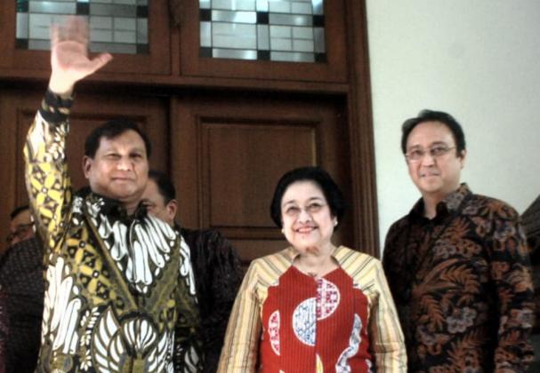 Ketum Gerindra Prabowo Subianto dan Ketum PDIP Megawati Soekarnoputri didampingi Ketua DPP PDIP Bidang Ekonomi Kreatif Prananda Prabowo usai bertemu di kediaman Mega jalan Teuku Umar, Menteng, Jakarta Pusat, Rabu (24/7/2019). AKTUAL/IST