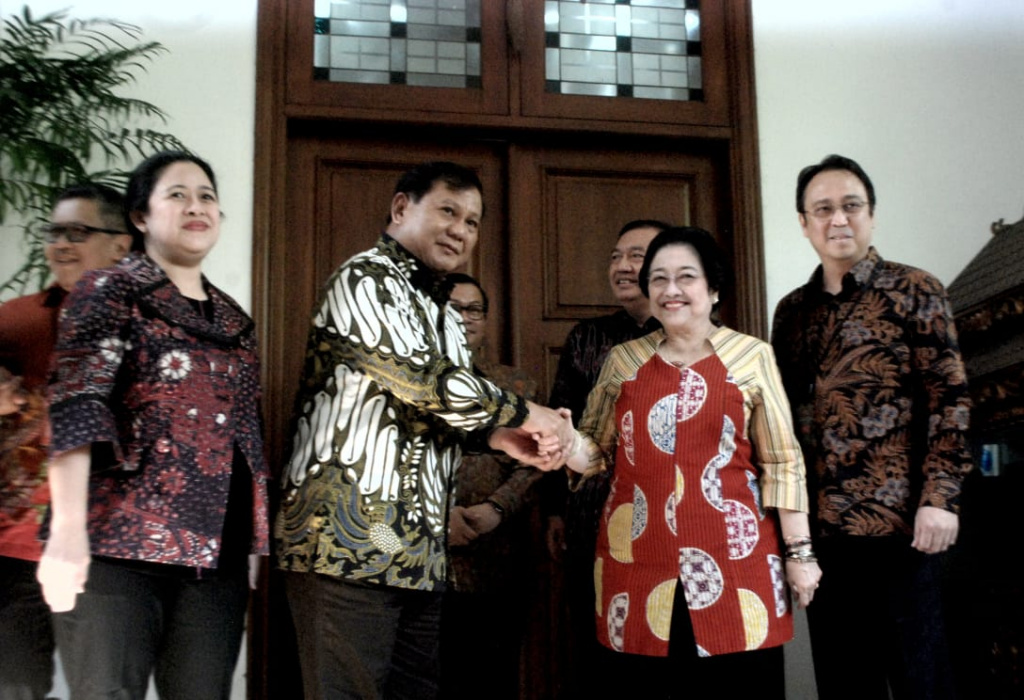Ketum Gerindra Prabowo Subianto dan Ketum PDIP Megawati Soekarnoputri didampingi Menteri PMK Puan Maharani, Ketua DPP PDIP Bidang Ekonomi Kreatif Prananda Prabowo usai bertemu di kediaman Mega jalan Teuku Umar, Menteng, Jakarta Pusat, Rabu (24/7/2019). AKTUAL/IST