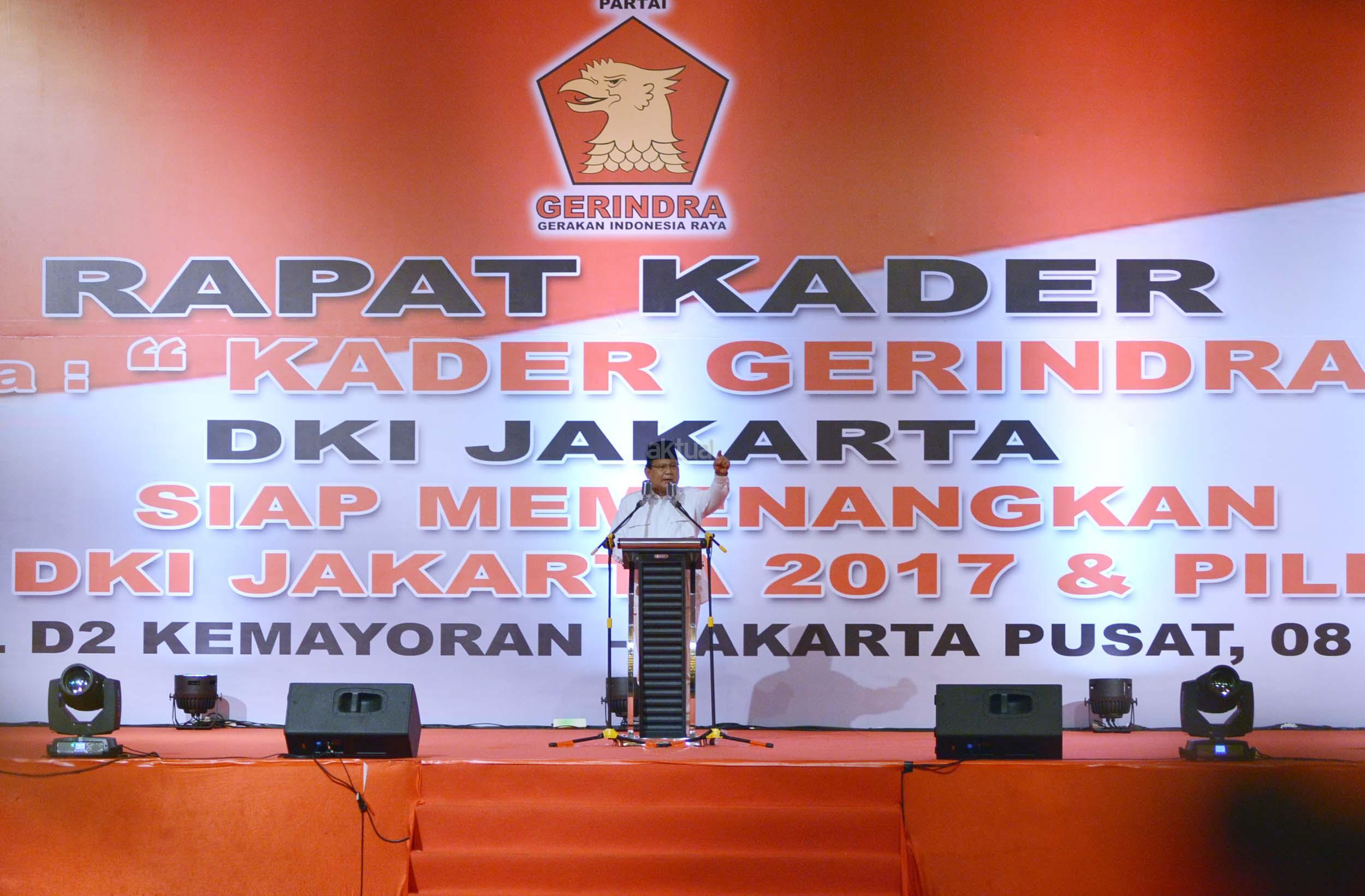 Rapat Akbar DPD Gerindra DKI Jakarta ini mengambil tema besar ‘Kader Gerindra DKI Jakarta Siap Memenangkan Pilkada DKI Jakarta 2017 dan Pilpres 2019. AKTUAL/Munzir