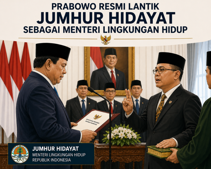 Jumhur dilantik sebagai Menteri Lingkungan Hidup menggantikan Hanif Faisol Nurofiq, yang pada hari ini juga dilantik sebagai Wakil Menteri Koordinator Bidang Pangan.