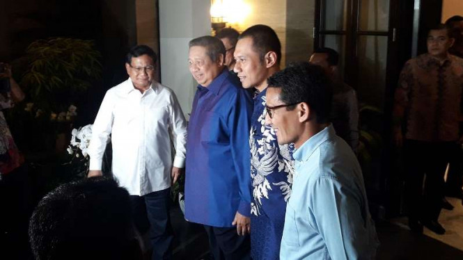 Prabowo dan Sandiaga datang di kediaman SBY sekitar pukul 19.38 WIB dan langsung disambut SBY yang didampingi Komandan Kogasma Partai Demokrat Agus Harimurti Yudhoyono (AHY) dan Sekjen Partai Demokrat Hinca Pandjaitan.