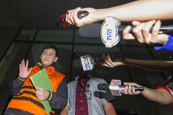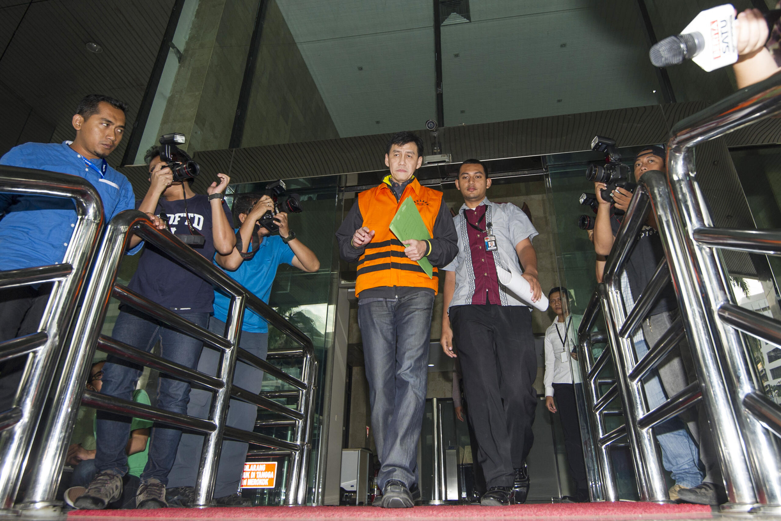 Presiden Direktur PT Agung Podomoro Land Ariesman Widjaja berada dalam mobil tahanan usai menjalani pemeriksaan di Gedung KPK, Jakarta, Senin (16/5). Ariesman diperiksa sebagai tersangka kasus dugaan suap di DPRD DKI Jakarta dalam pembahasan Raperda Rencana Tata Ruang Kawasan Strategis Pantai Jakarta Utara dan Raperda Zonasi Wilayah Pesisir dan Pulau-Pulau Kecil Provinsi DKI Jakarta tahun 2015-2035. ANTARA FOTO/Sigid Kurniawan/foc/16.