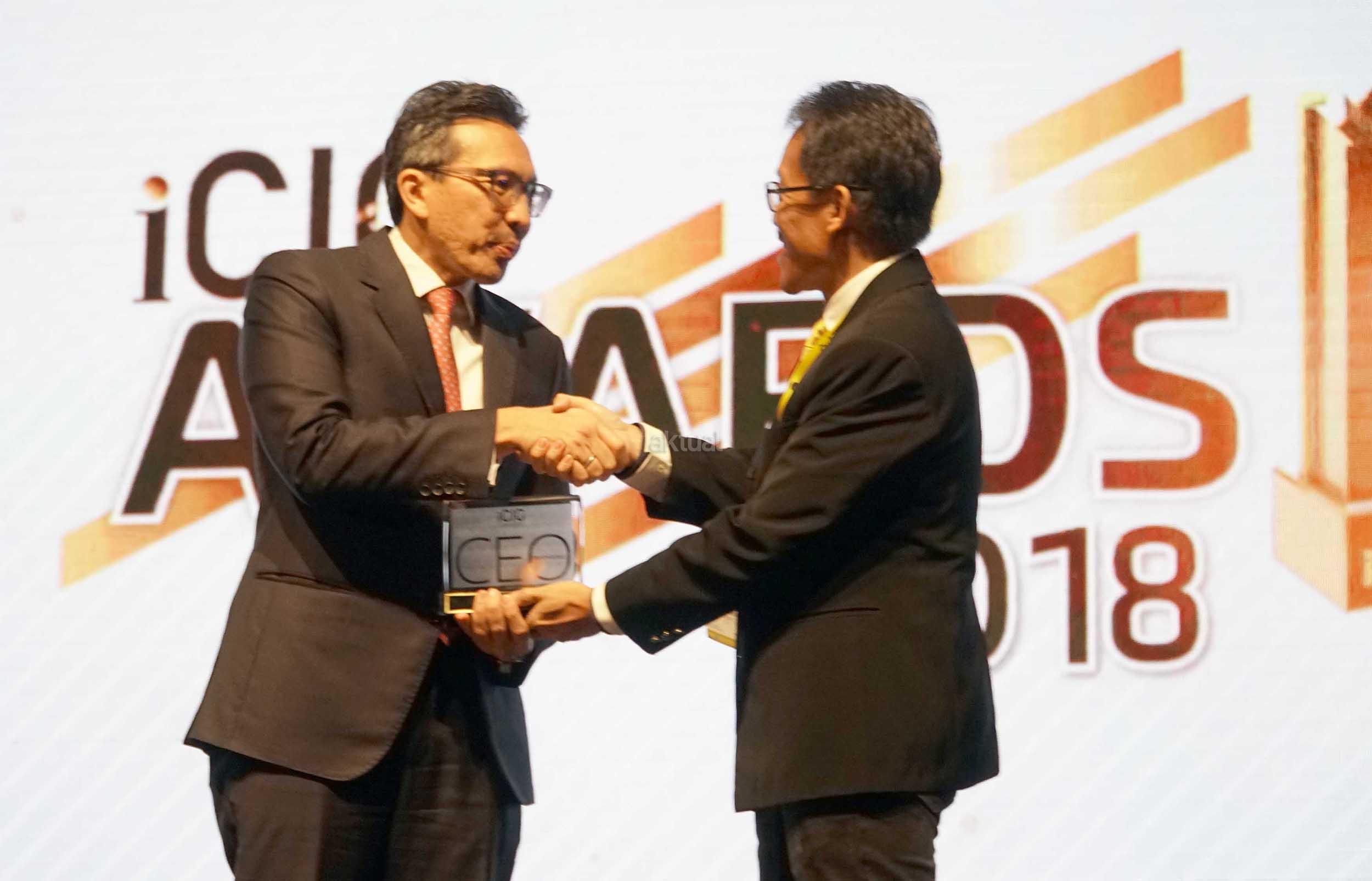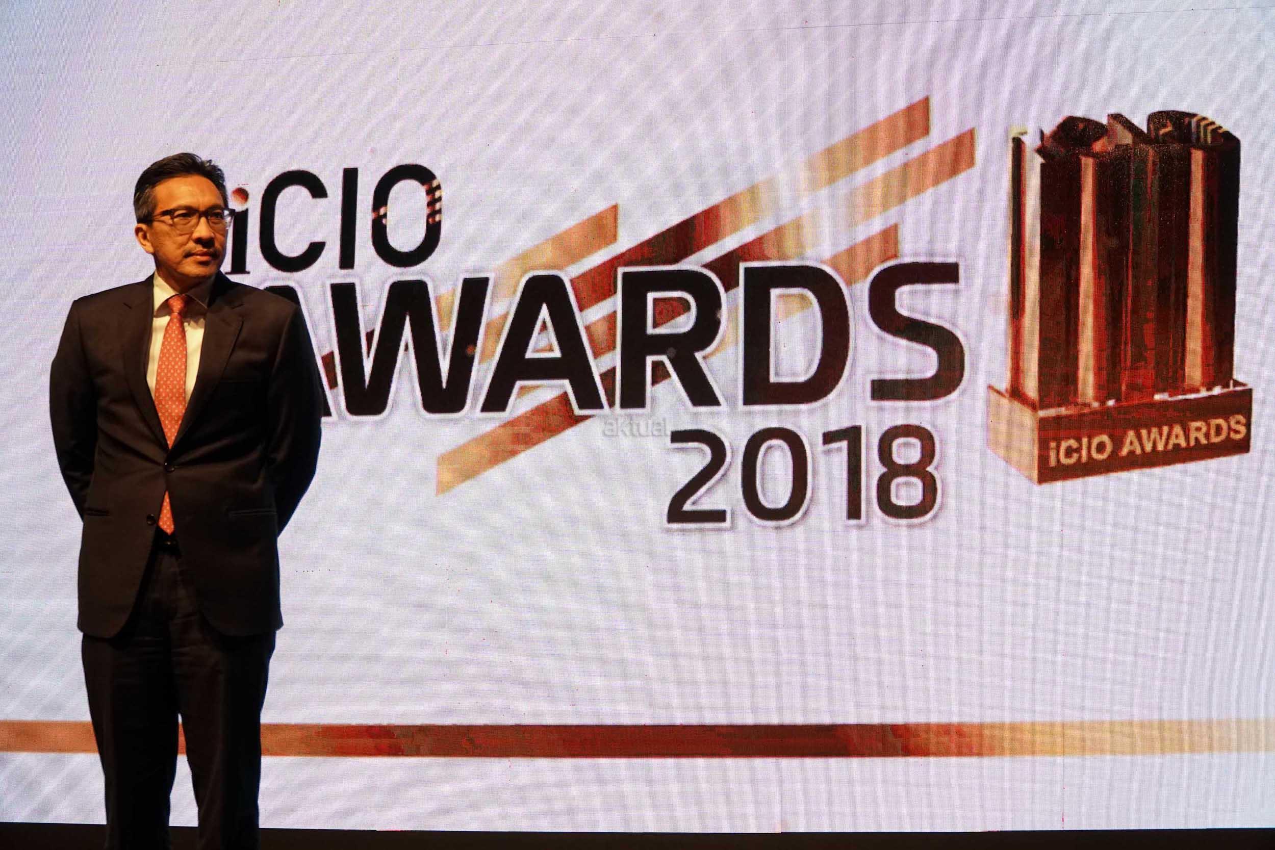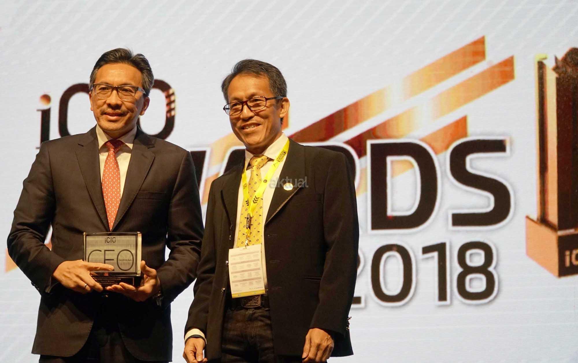 Presiden Direktur PT Bank CIMB Niaga Tbk Tigor M. Siahaan mengangkat plakat The Most Inspiring CEO yang diperoleh pada ajang iCIO Awards 2018 di Jakarta, Rabu (7/3/2018). Tigor dinilai memiliki digital leadership dan terbukti mampu menghadirkan value terbaik dalam memaksimalkan pemanfaatan teknologi informasi dan komunikasi (TIK) di CIMB Niaga guna mewujudkan aspirasi perseroan menjadi perbankan digital terdepan di Indonesia. Seperti diketahui, iCIO Community adalah komunitas chief information officer(CIO) dan eksekutif di bidang TIK di Indonesia. AKTUAL/Eko S Hilman