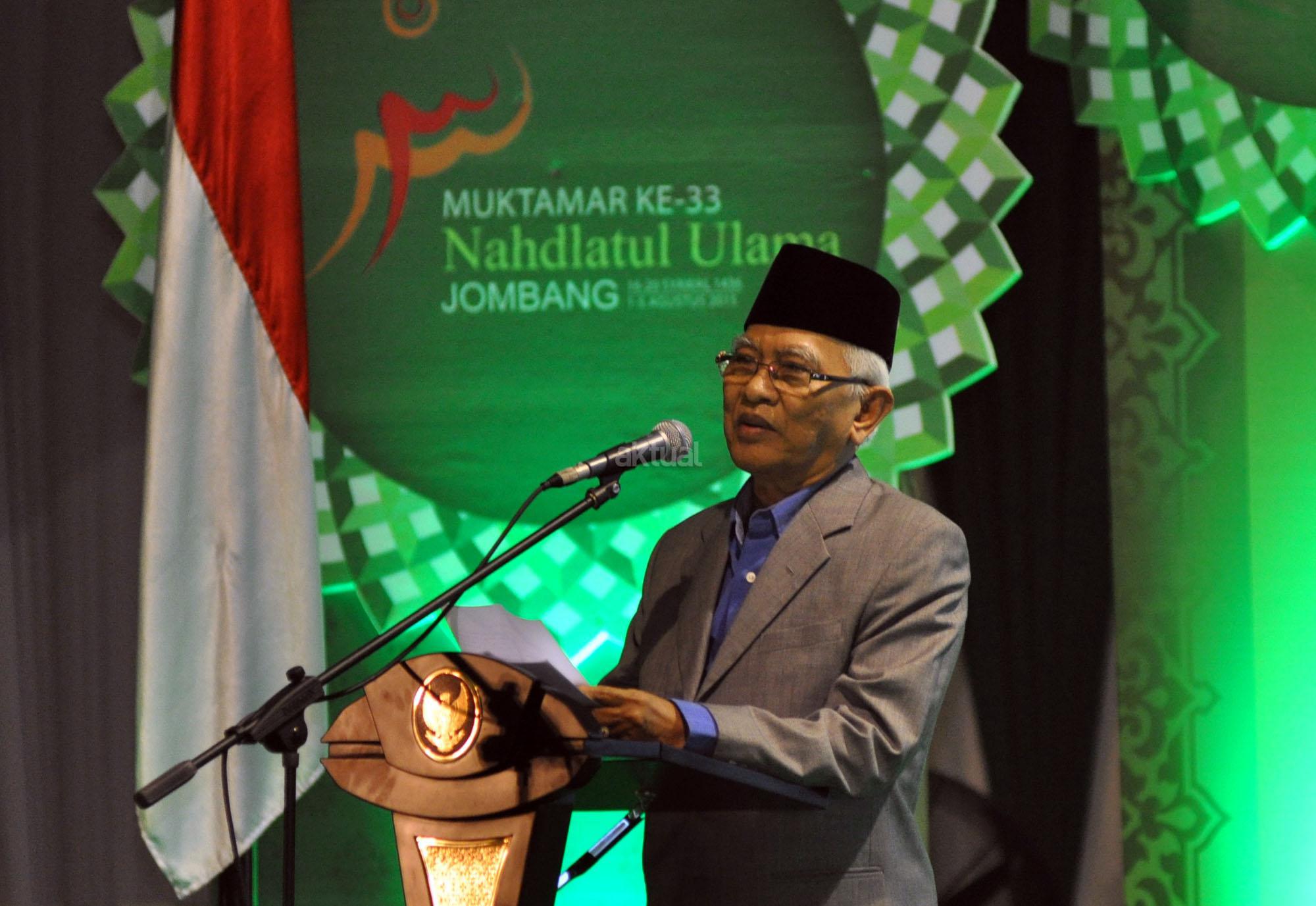 Pejabat Rais Aam KH Mustofa Bisri (Gus Mus) membuka Muktamar NU ke-33 di Alun-alun Jombang, Jawa Timur, Sabtu (1/8/2015).