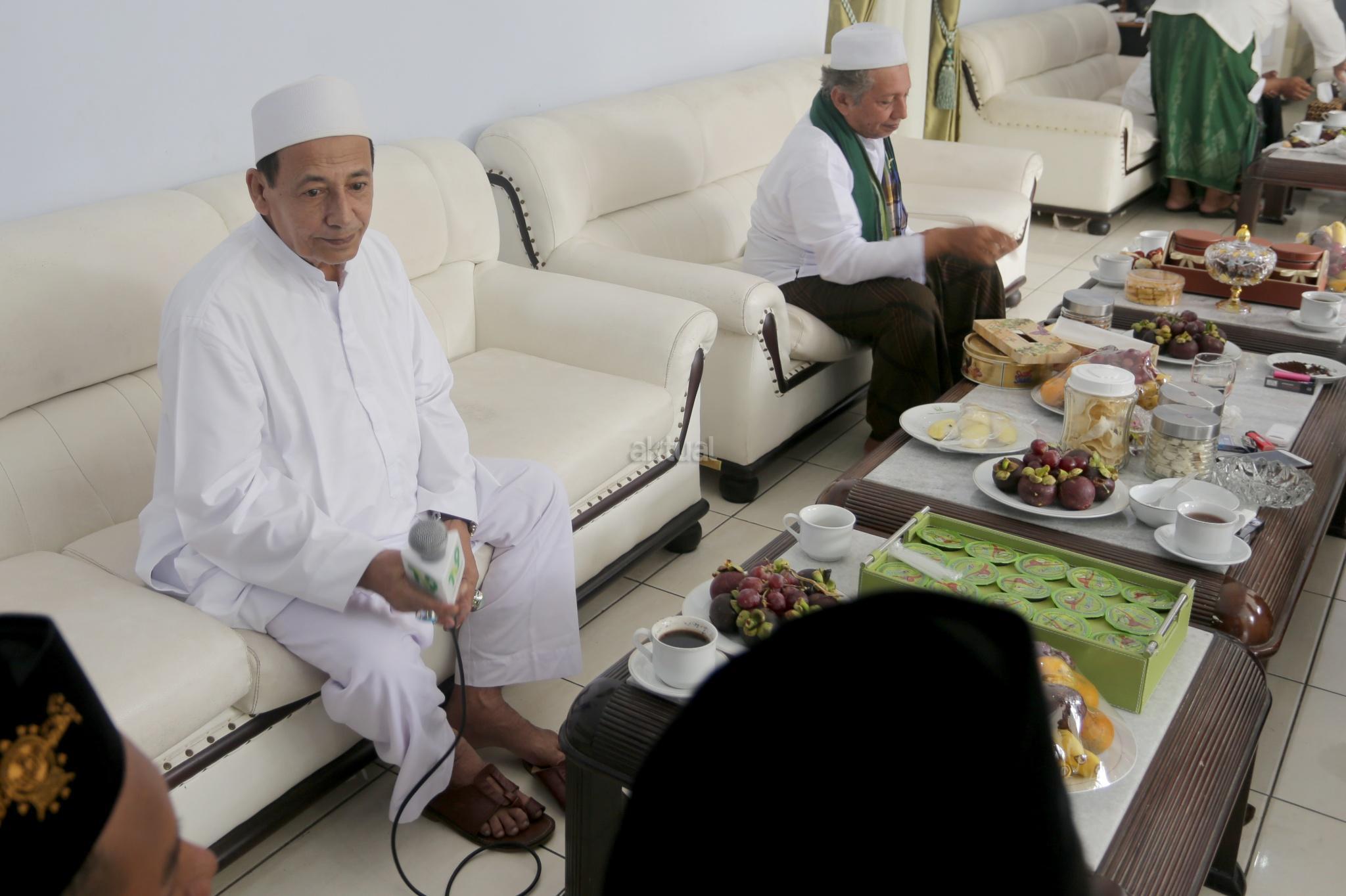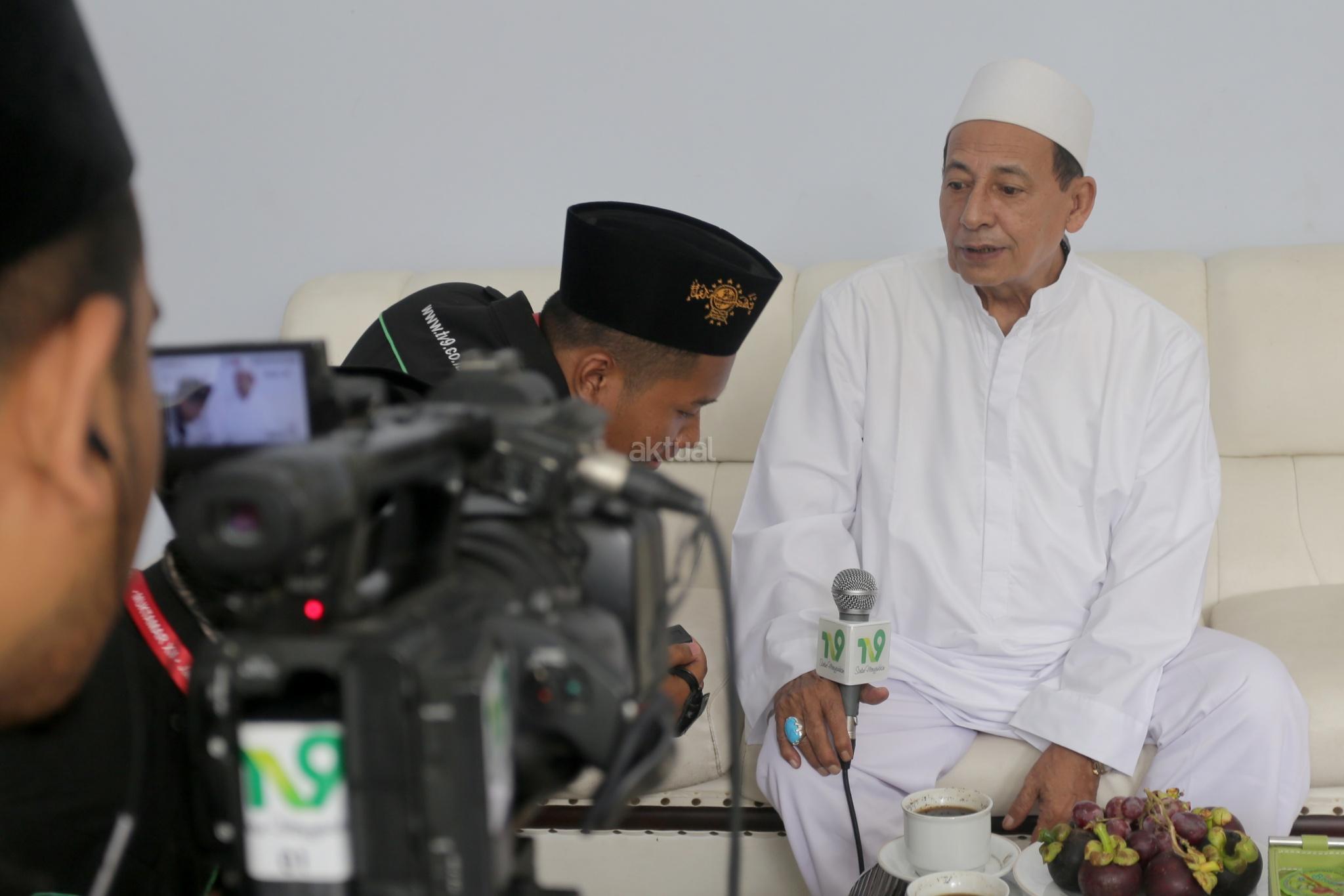 Rais Aam Idarah Ulya Jam’iyyah Ahlith Thariqah Al Mu’tabarah An Nahdliyyah (JATMAN) Habib Luthfi bin Ali bin Hasyim bin Yahya menjawab pertanyaan wartawan usai pembukaan Muktamar Jatman di Kajen, Pekalongan, Senin (15/1/2018). Habib Lutfi menegaskan behwa mempertahankan NKRI harga mati bagian dari wujud rasa syukur. Ini bagian sikap JATMAN. Selain itu thariqah adalah tuntunan dari semenjak Nabi yang mempunyai mata rantai antara satu thariqah dengan lainnya dalam hubungan yang sangat erat. Mata rantai antar thariqah tidak bisa dipisahkan, mesti beda nama. Misalnya, Qadiriyah, Naqsyabandiyah, Syadziliyah, Idrisiyyah, dan lainnya. Thariqah berusaha menghilangkan sifat kelalaian dari Tuhan. Thariqah berusaha menghilangkan sifat kurang terpuji melalui dzikrullah, menghias sanubari dan menumbuhkan cinta yang sejati kepada Allah, Rasul dan tanah airnya. AKTUAL/Tino Oktaviano