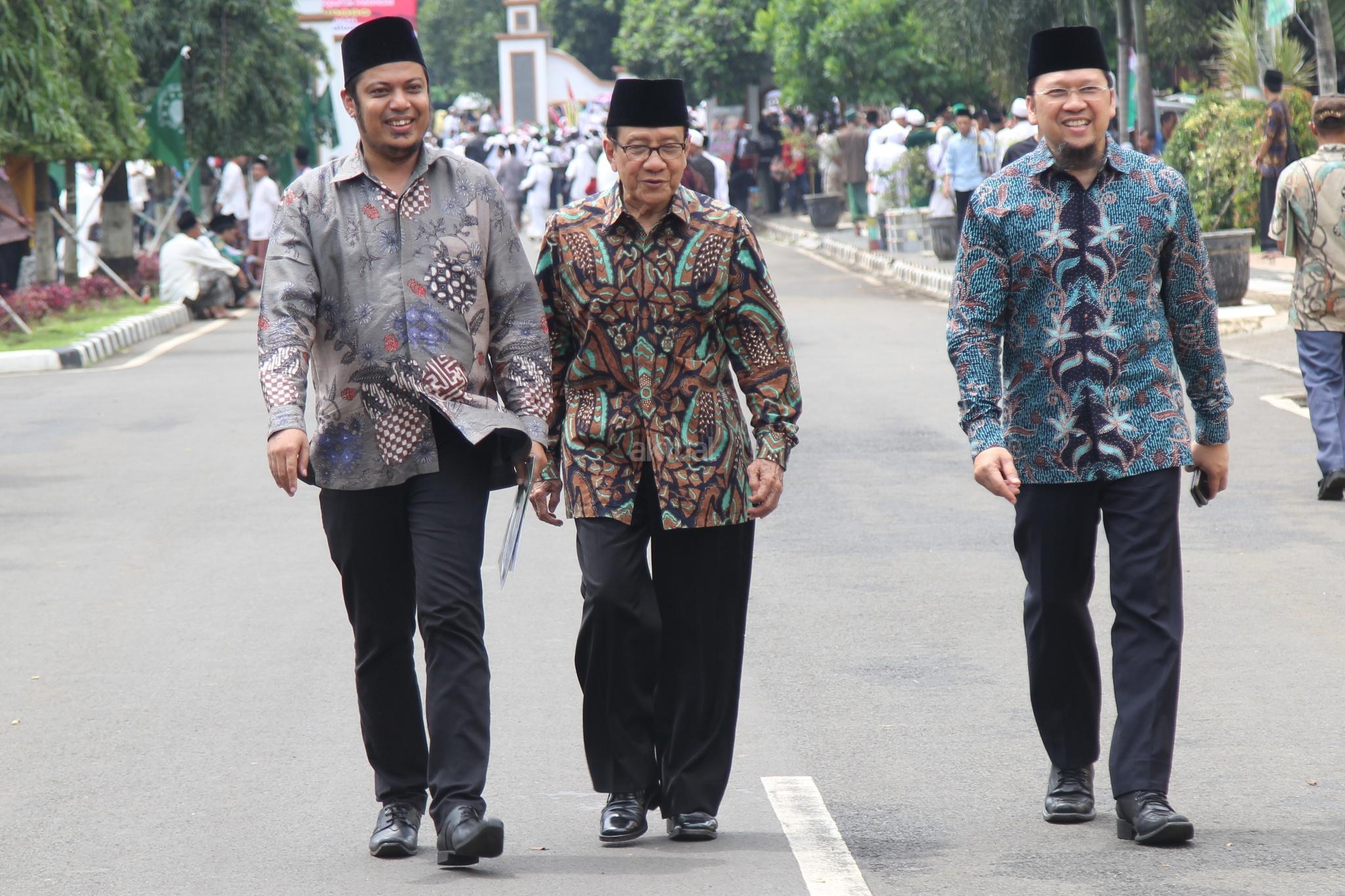 Dewan Pembina Partai Golkar Akbar Tandjung berjalan usai menghadiri Muktamar XII Jam’iyyah Ahlith Thariqah Al Mu’tabarah An Nahdliyyah (Jatman) di Alun alun, Kajen, Kabupaten Pekalongan, Senin (15/1/2018). AKTUAL/Tino Oktaviano