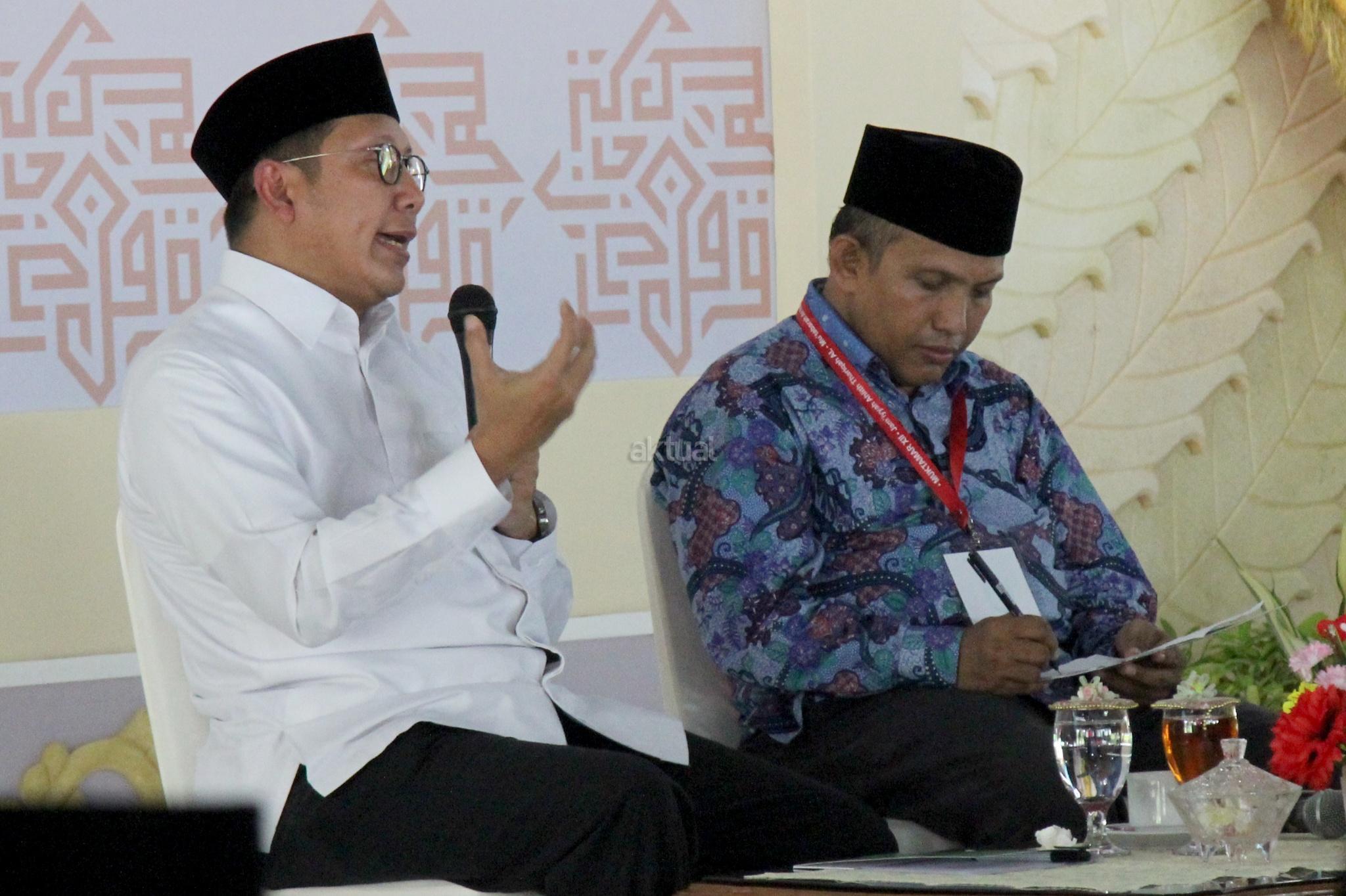 Menteri Agama Lukman Hakim Saifuddin saat membuka Muktamar Jam’iyyah Ahlith Thoriqoh Al Mu’tabaroh An Nahdliyah (JATMAN) di Kajen, Pekalongan, Senin (15/1/2018). Menag berbicara didepan peserta muktamar yang mengangkat tema ‘Dengan Thoriqoh yang berdasarkan Ahlussunah wal Jamaah untuk Meningkatkan Ubudiyah sehingga Mampu Membawa Rahmatan lil Alamin’. AKTUAL/Tino Oktaviano
