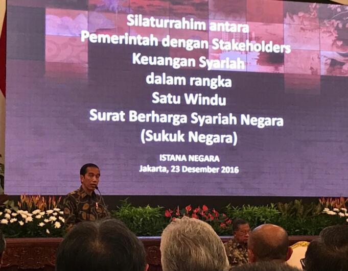 “Sampai dengan tanggal 30 November 2016, penerbitan SBSN kita di pasar internasional telah sampai pada angka US$10,15 miliar dengan outstanding US$9,5 miliar,” ucap Jokowi pada acara silaturahmi dengan para pemangku kepentingan dalam rangka sewindu Surat Berharga Syariah Negara (SBSN) atau Sukuk Negara, di Istana, Jakarta, Jumat, 23 Desember 2016.