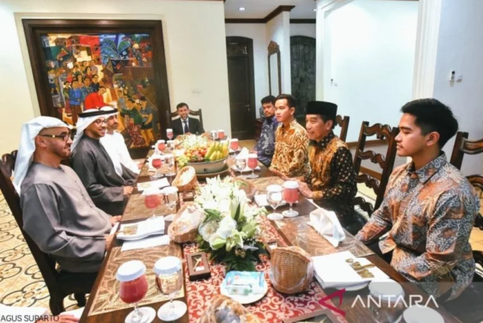 Jakarta, aktual.com – Presiden RI Joko Widodo (Jokowi) makan pagi bersama Presiden Uni Emirat Arab (UAE) Mohammed Bin Zayed Al-Nahyan usai meresmikan Masjid Raya Sheikh Al Zayed di Gilingan, Banjarsari, Surakarta, Jawa Tengah, Senin (14/11).