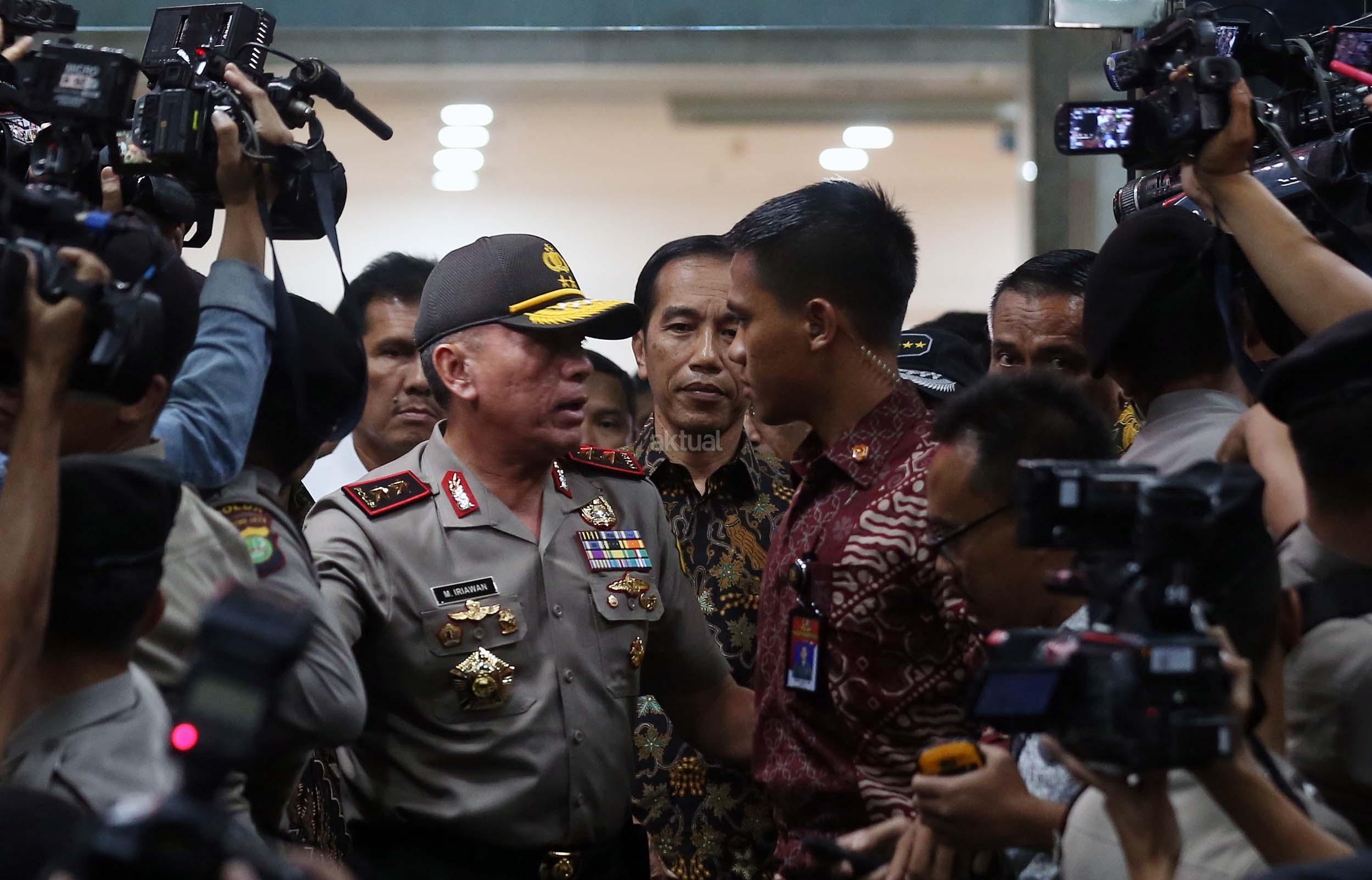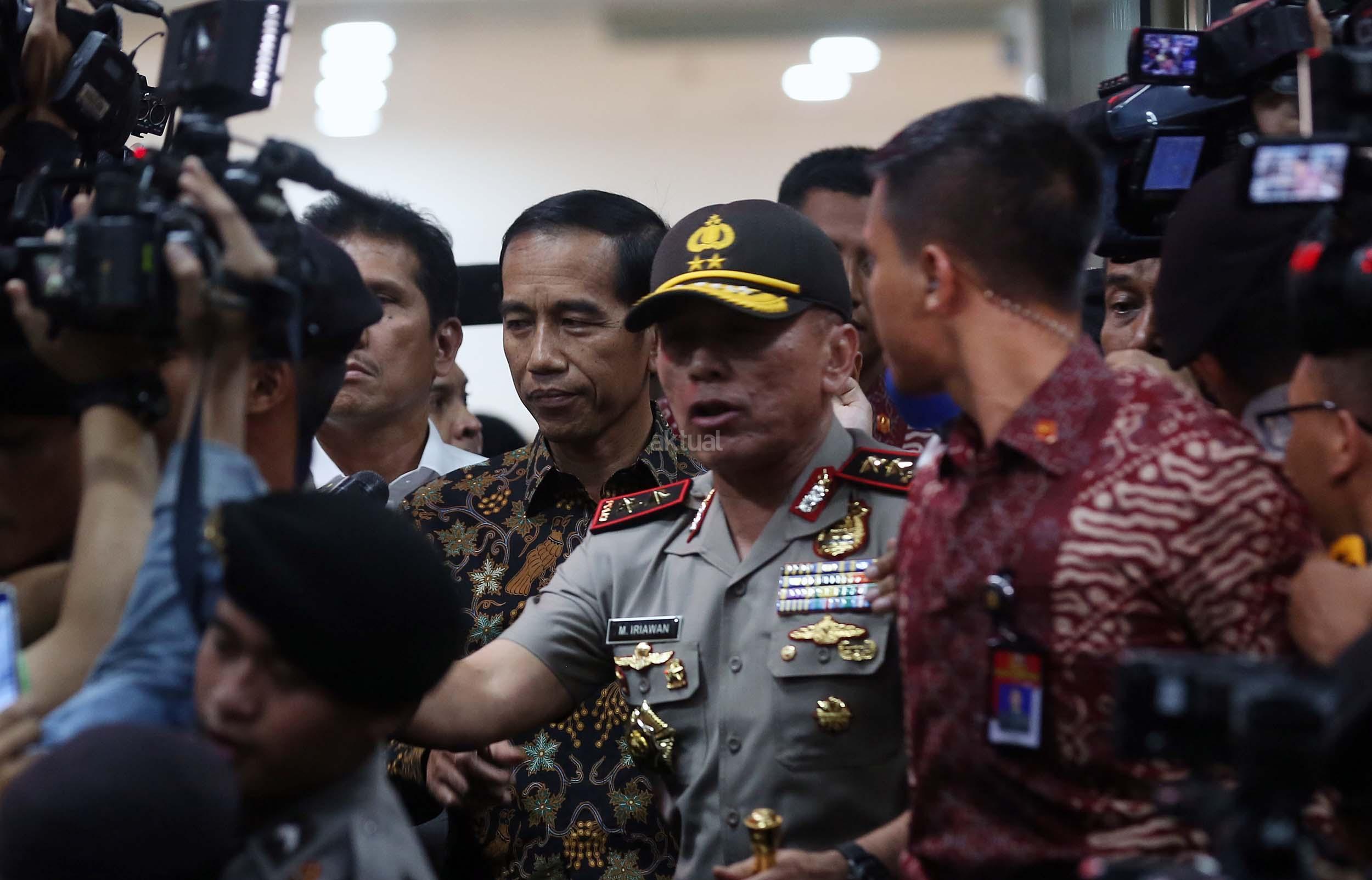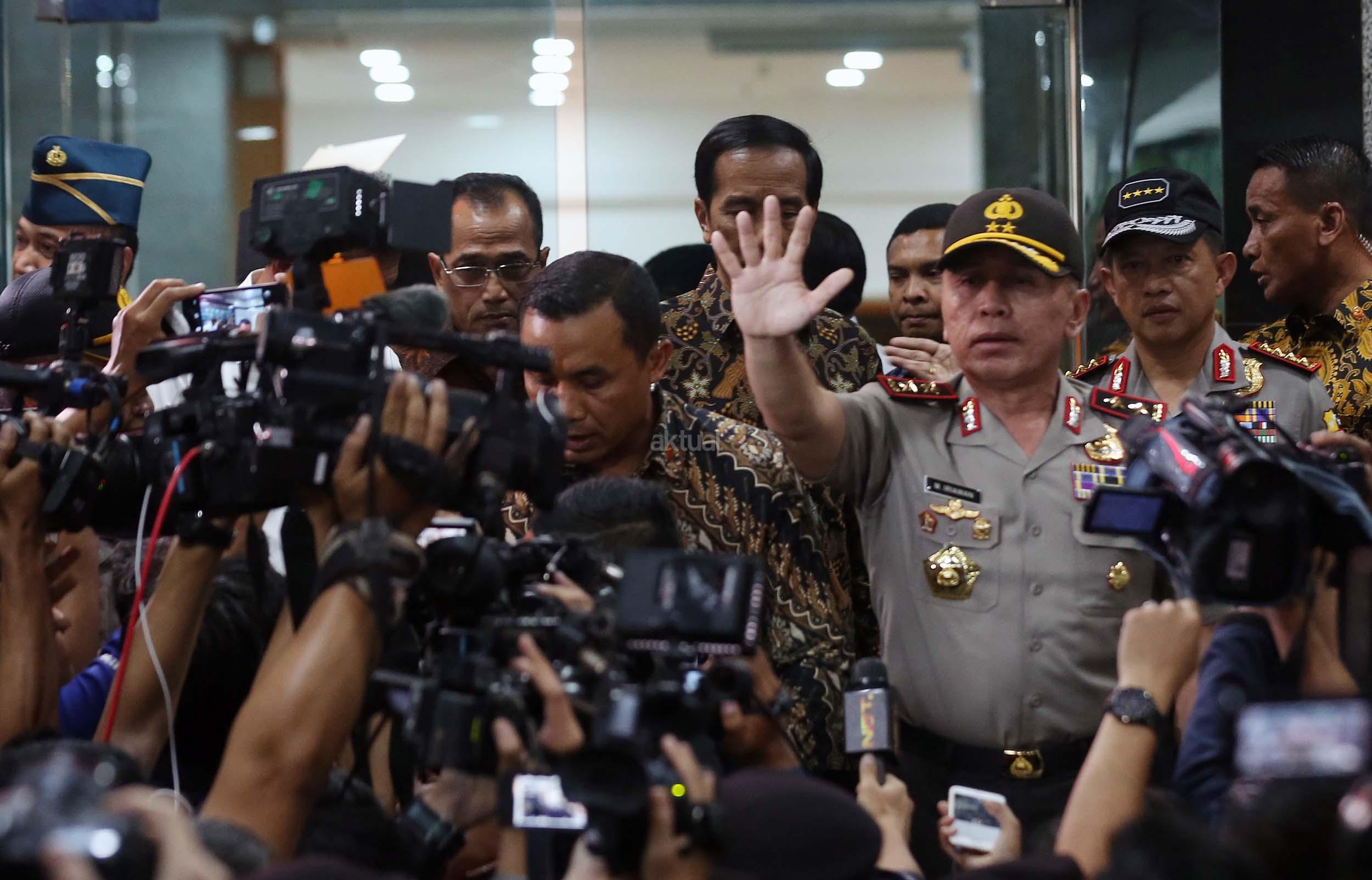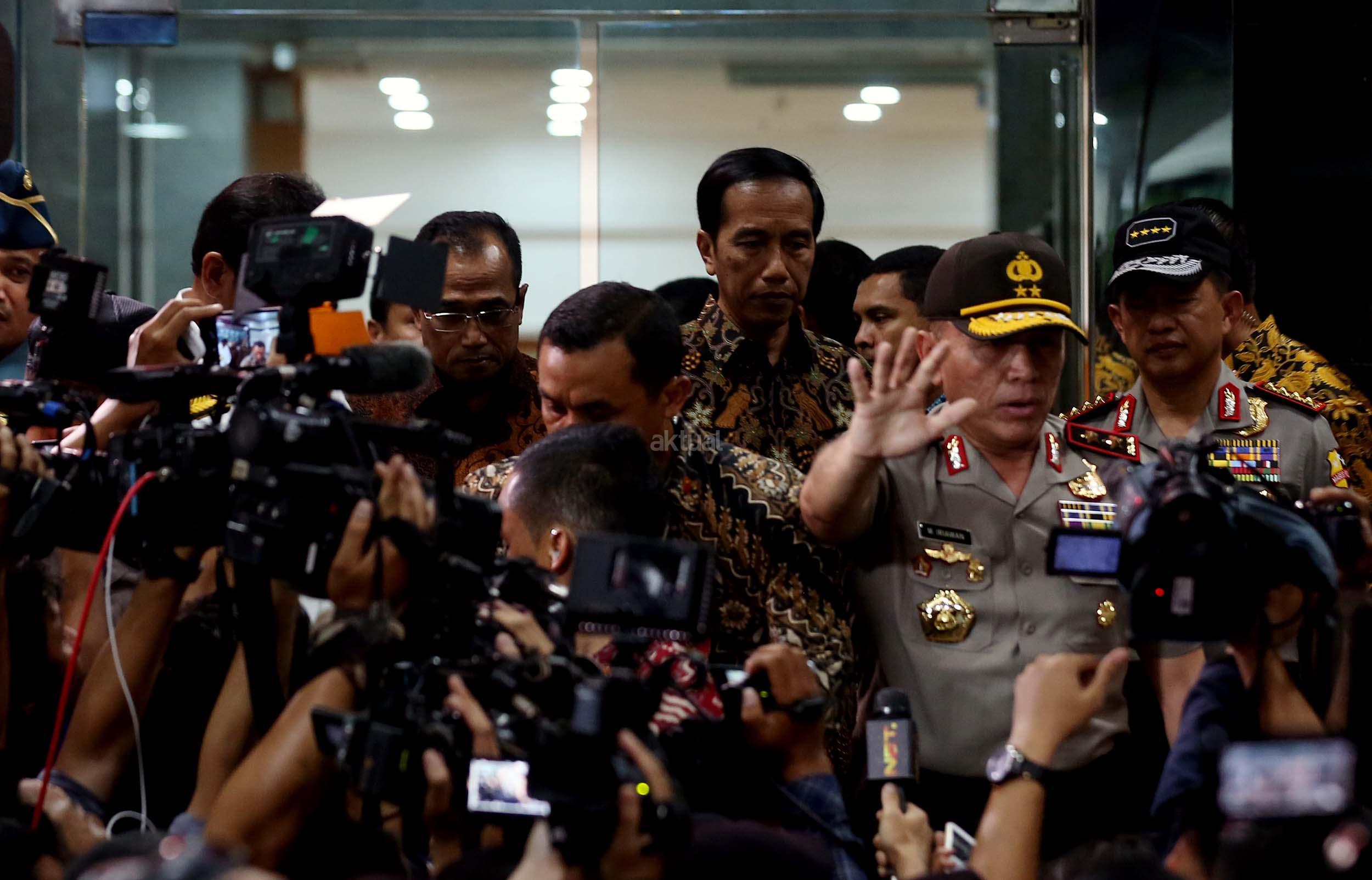Presiden Jokowi memberikan keterangan persnya usai mendatangi kantor Kementerian Perhubungan, Jakarta, Selasa (11/10/2016). Jokowi mendatangi Kemenhub saat Operasi Tangkap Tangan (OTT) yang dilakukan Polri terkait praktek pungli perizinan kapal. Aktual/Munzir