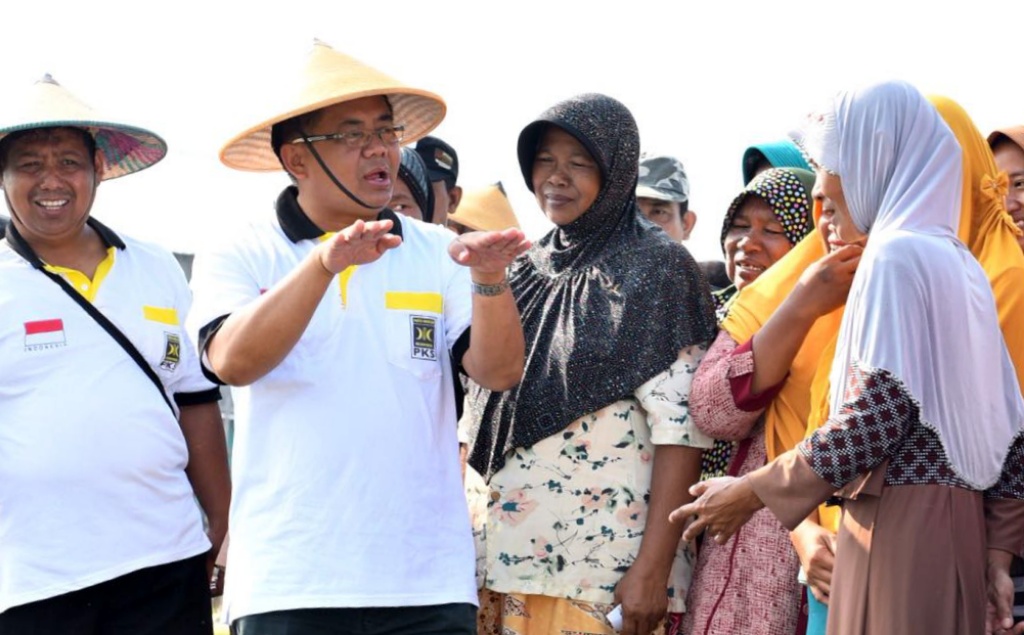 Presiden Partai Keadilan Sejahtera Muhamad Sohibul Iman berbincang dengan petani dan nelayan di Kecamatan Batangan, Kabupaten Pati, Jawa Tengah, Jumat (13/4/18). Kunjungan Presiden PKS tersebut dalam rangka Desa Pecangaan, Kecamatan Batangan, Kabupaten Pati dalam rangka Hari Nelayan Nasional. AKTUAL/HO