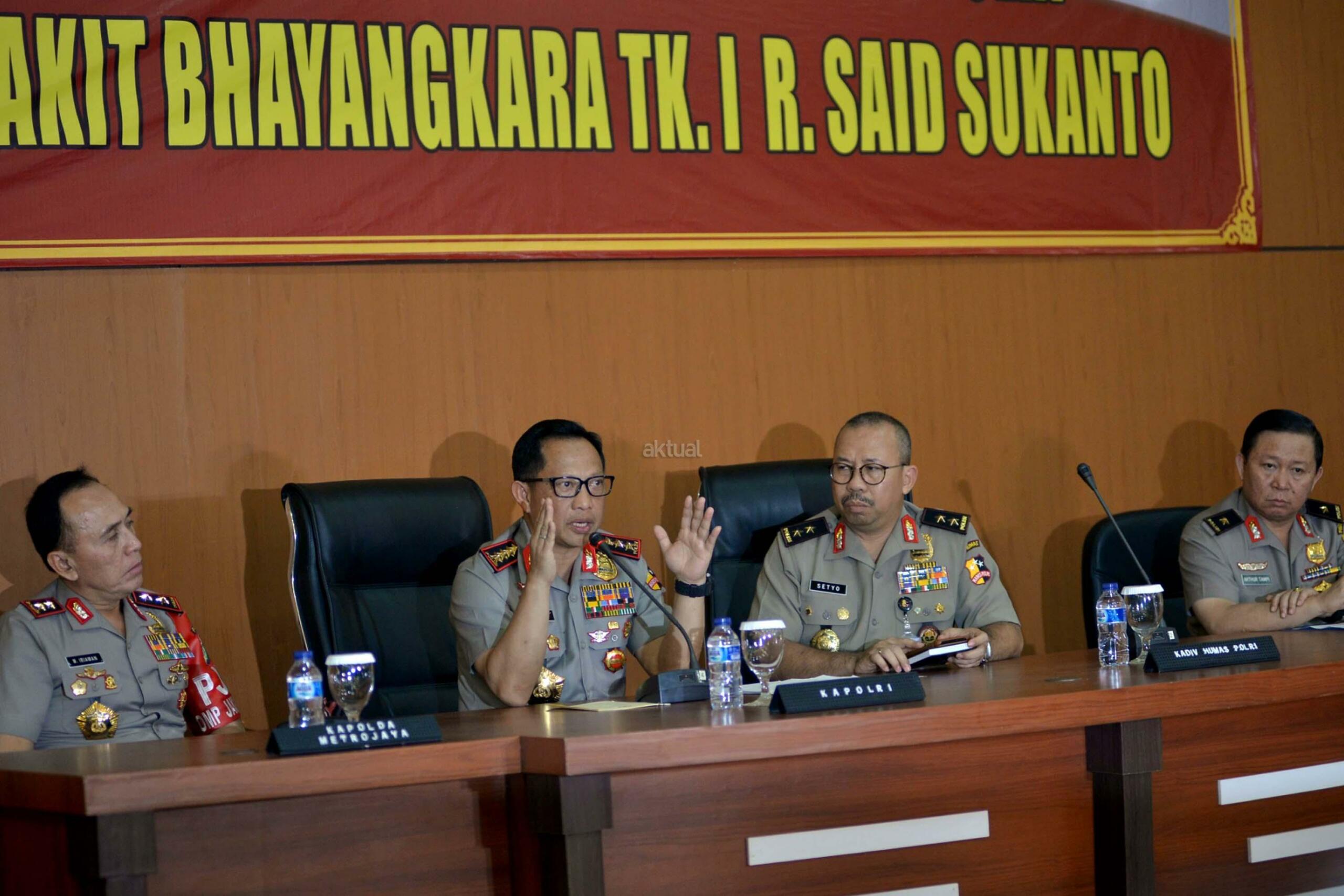 Dalam konferensi pers tersebut Kapolri mengatakan bahwa pelaku bom bunuh diri di Terminal Kampung Melayu adalah Ahmad Syukri dan Ichwan Nurul Salam yang teridentifikasi berdasarkan hasil tes DNA serta keduanya merupakan Jamaah Ansharut Daulah (JAD). AKTUAL/Munzir