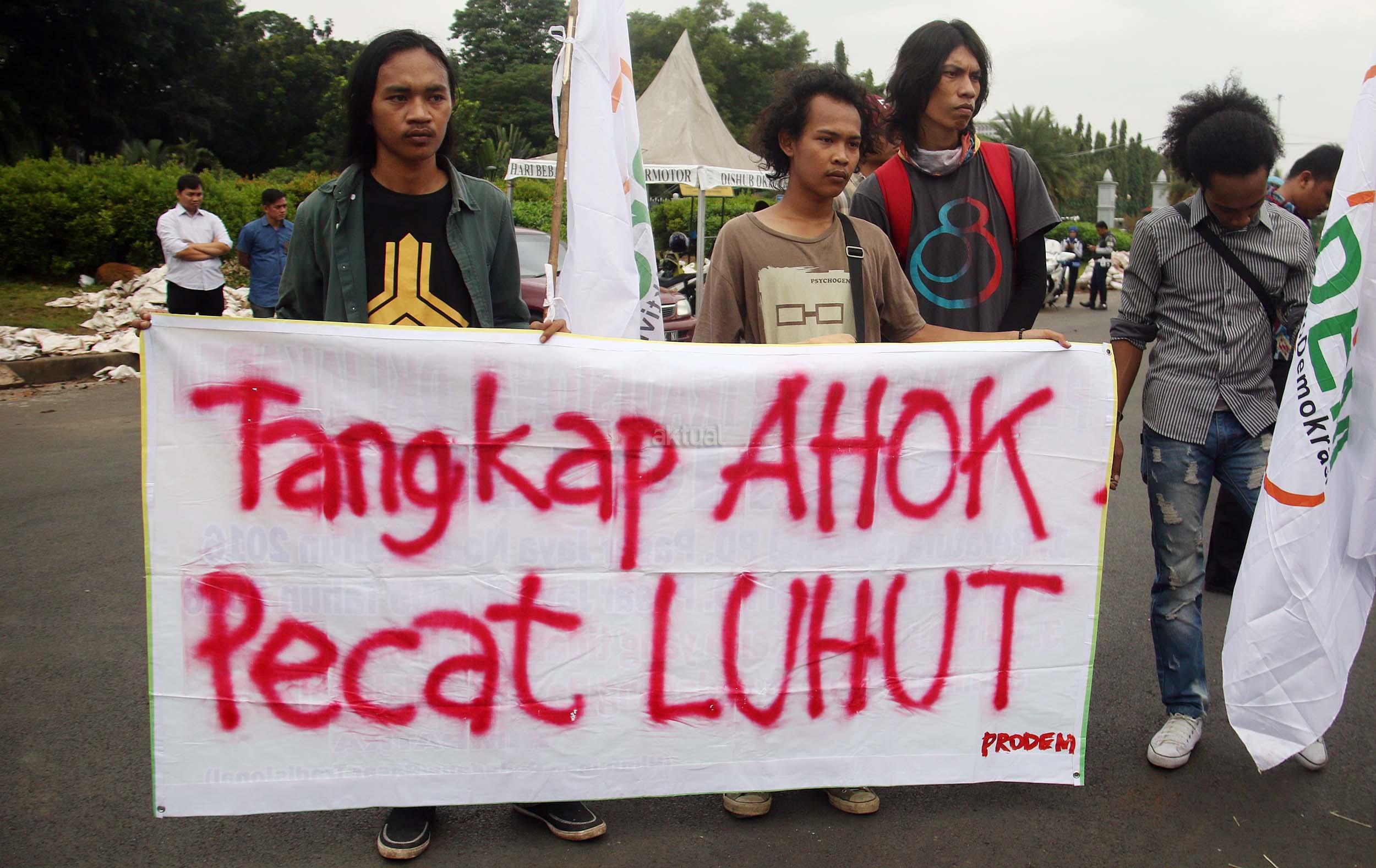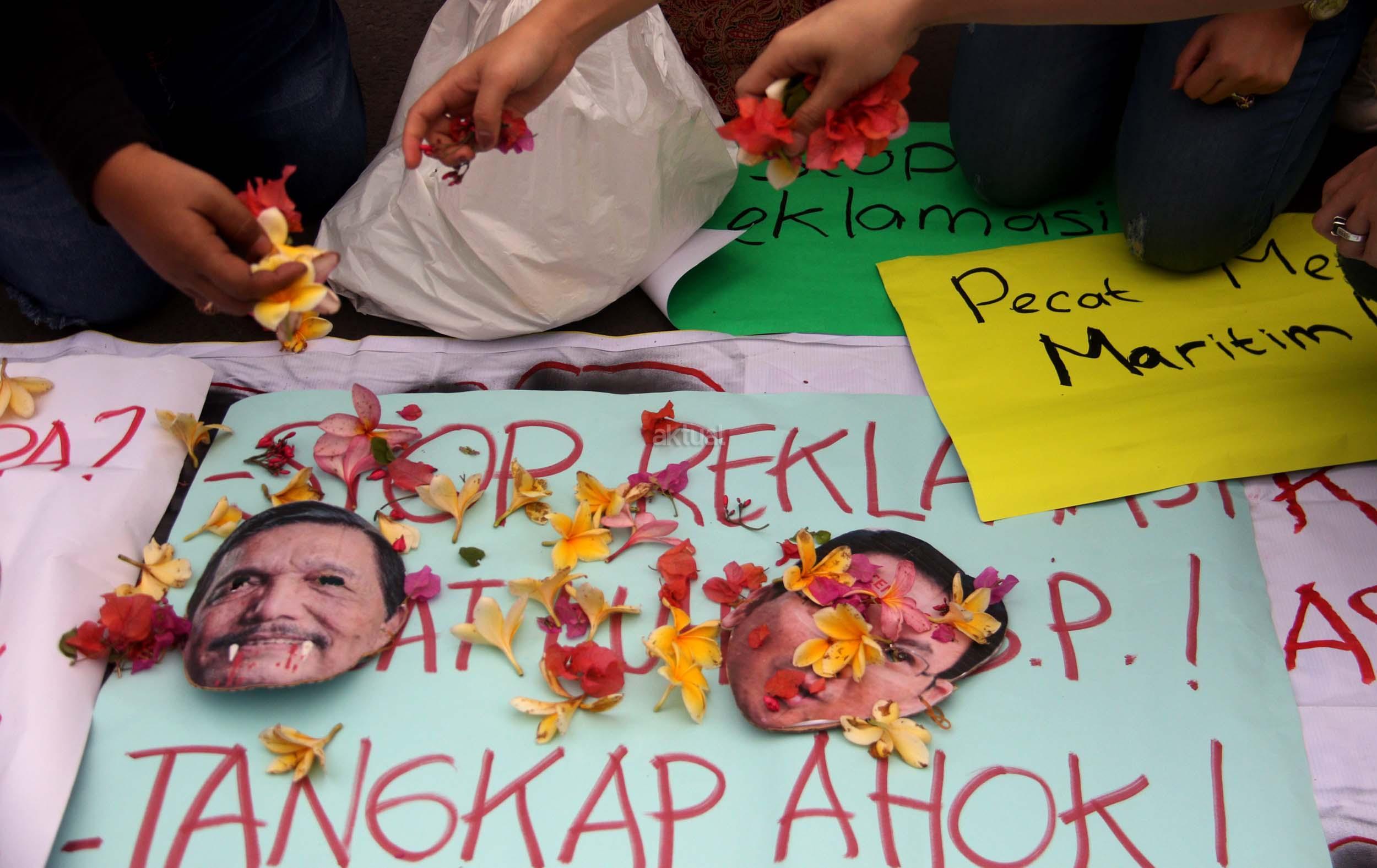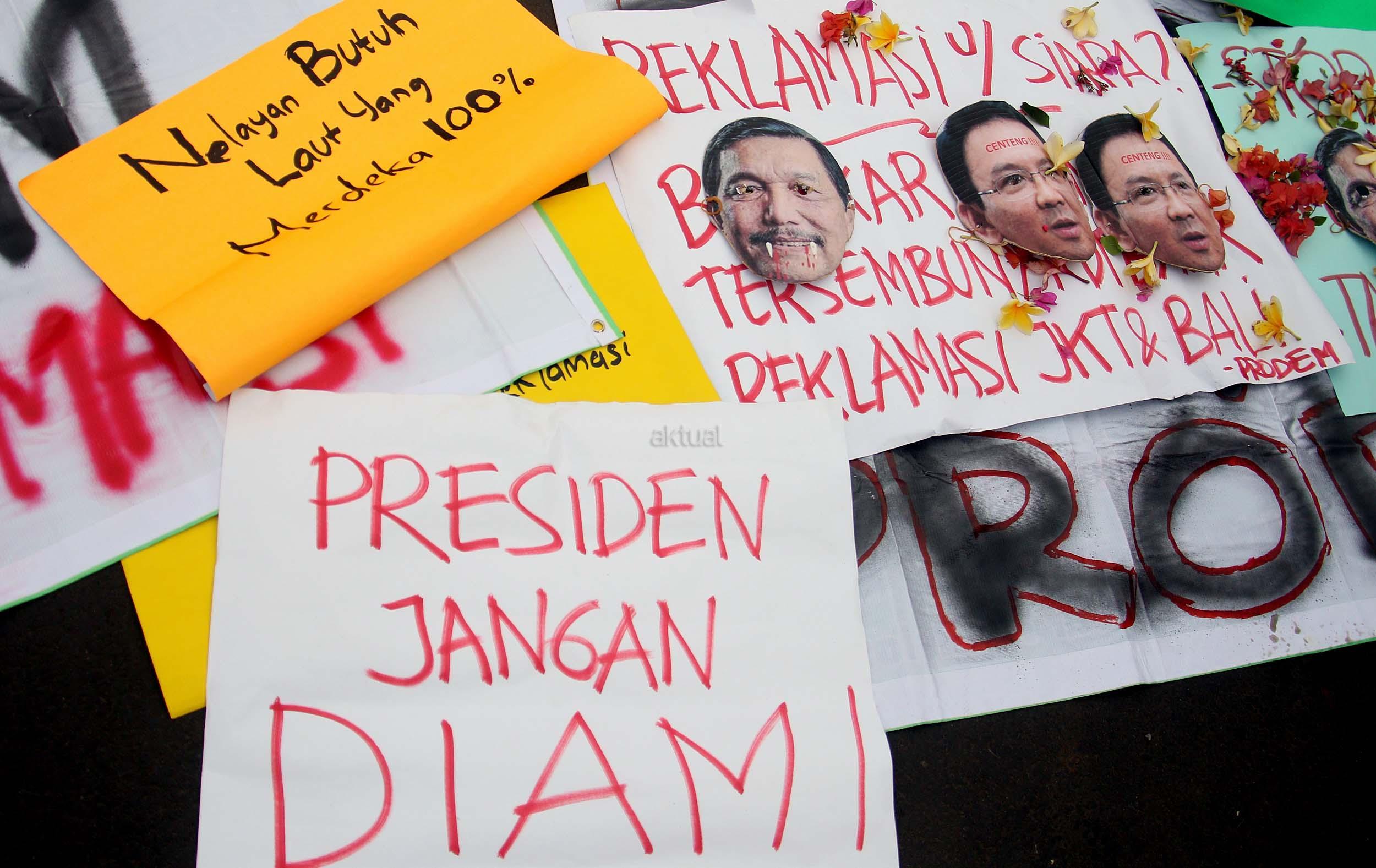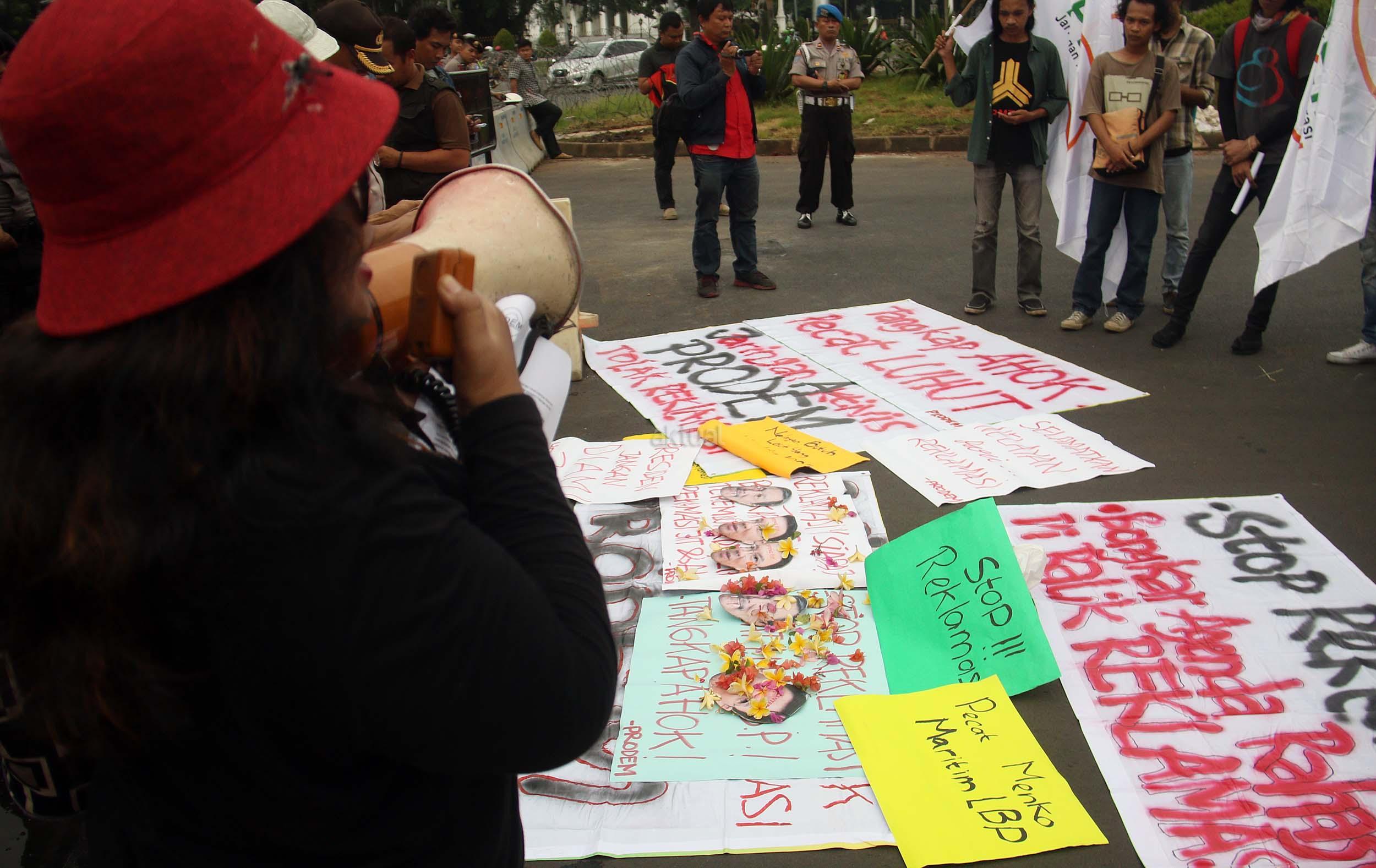 Dalam aksinya di Jakarta, Jumat (30/09/2016) aktivis Pro Demokrasi (Prodem) menolak reklamasi teluk Jakarta, teluk Benoa Bali dan teluk-teluk yang berada di Indonesia. Prodem juga mendesak kepada Jokowi untuk segara memecat Menko Maritim Luhut Binsar Panjaitan karena telah melanjutkan proyek reklamasi. AKTUAL/Munzir