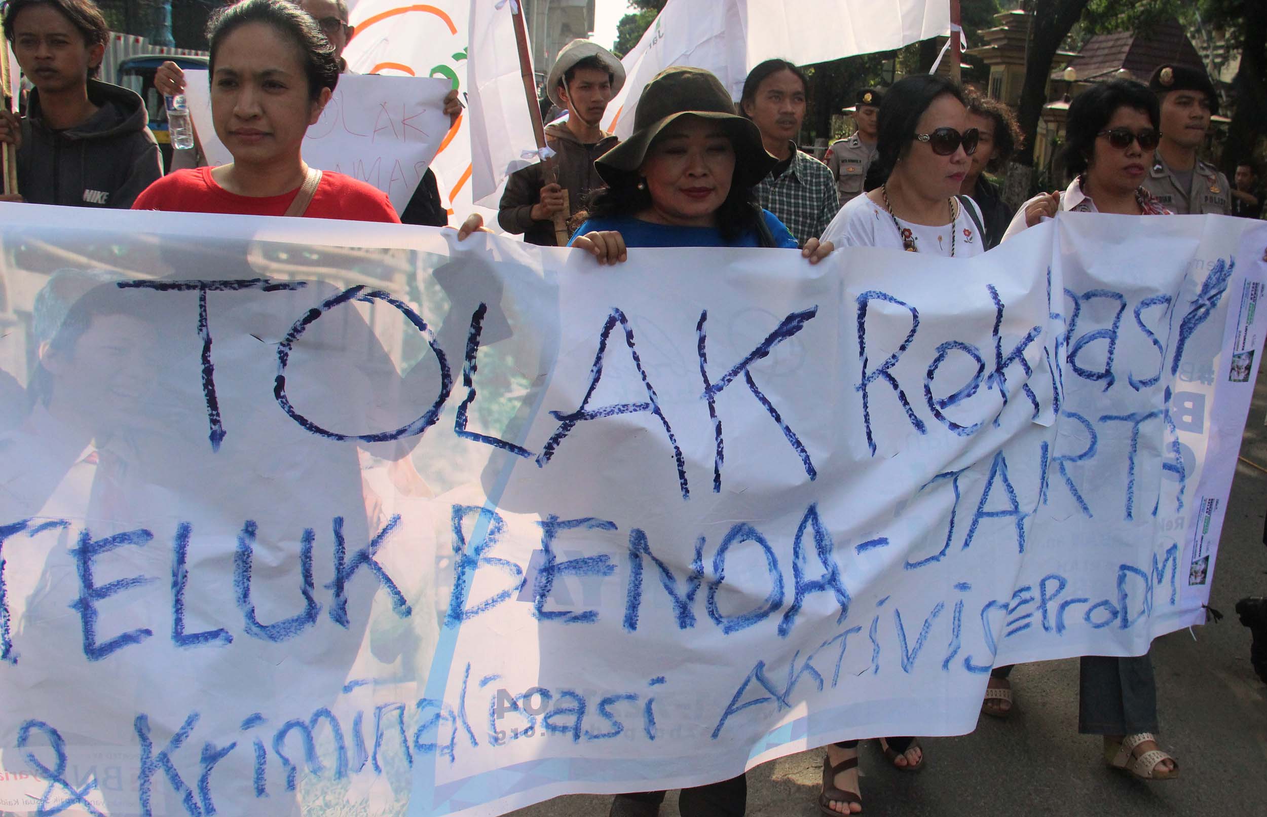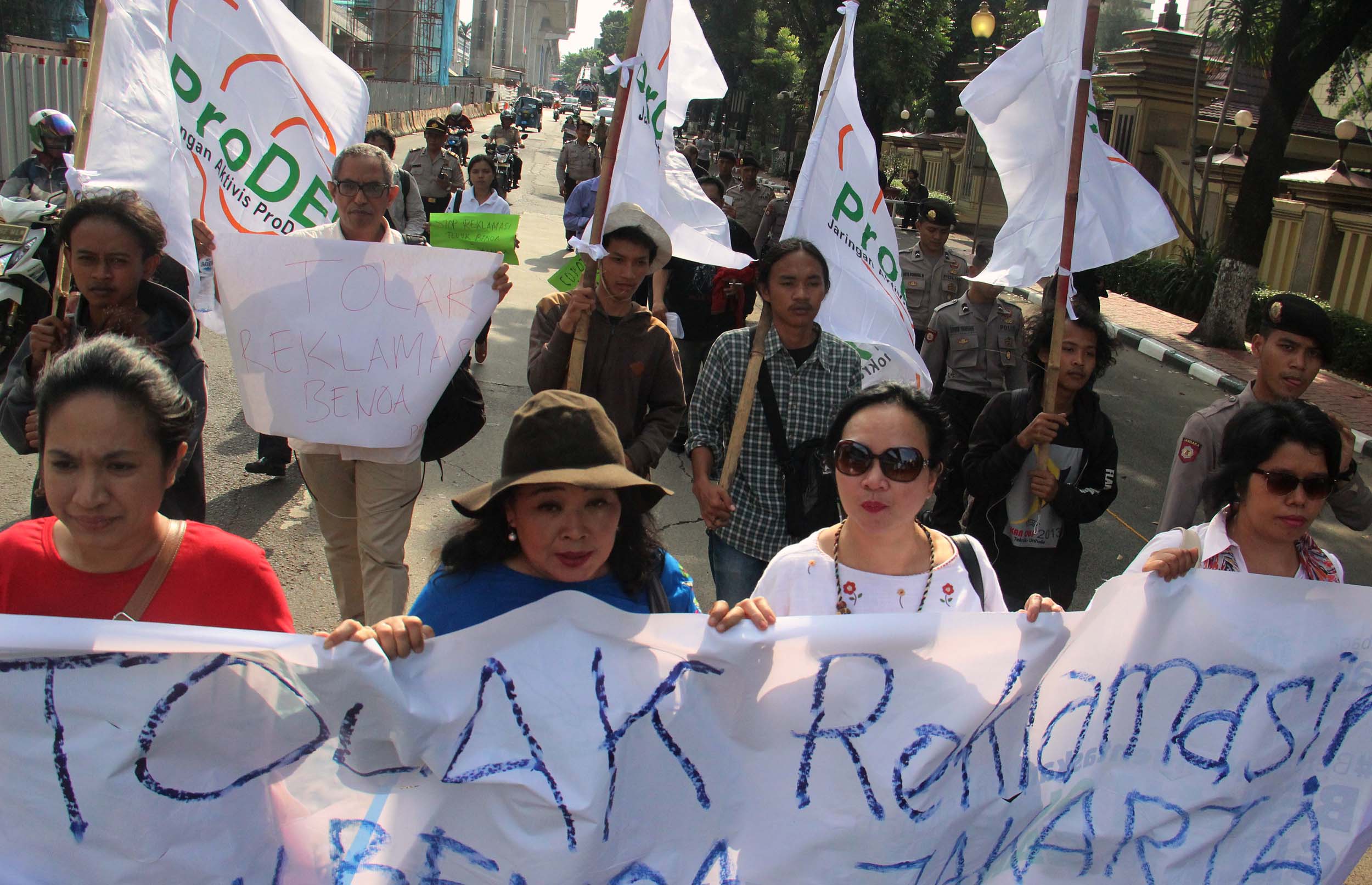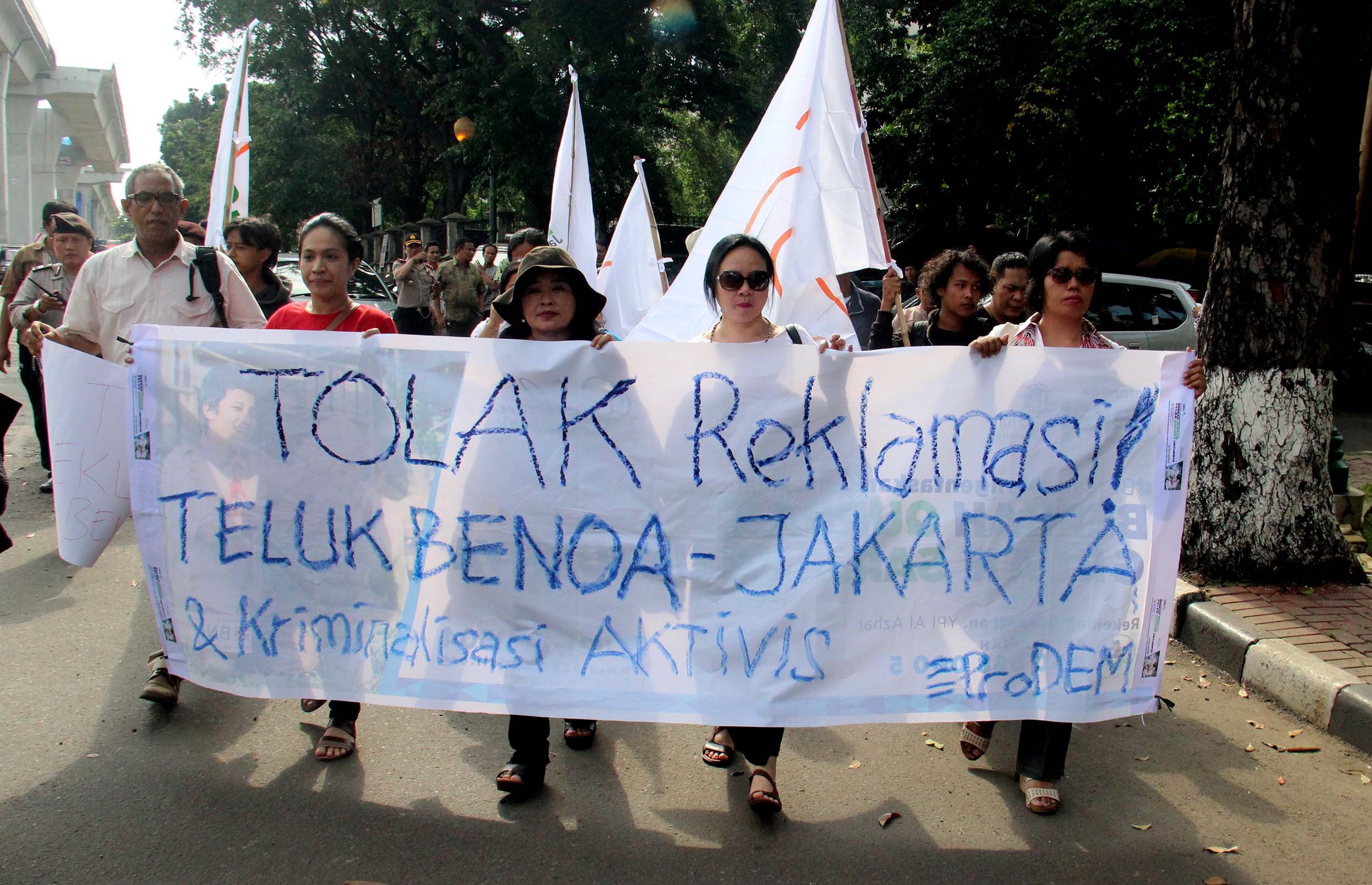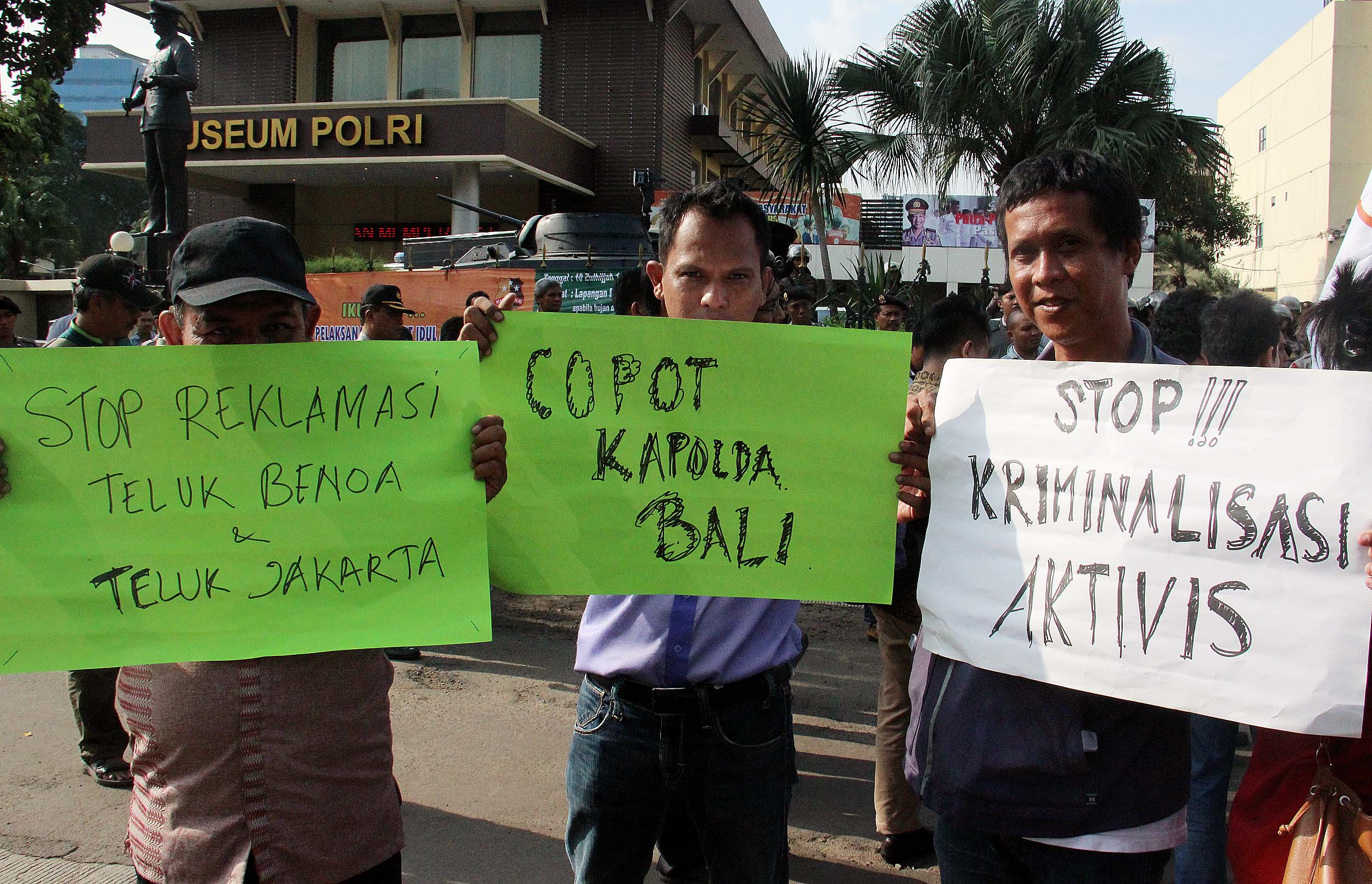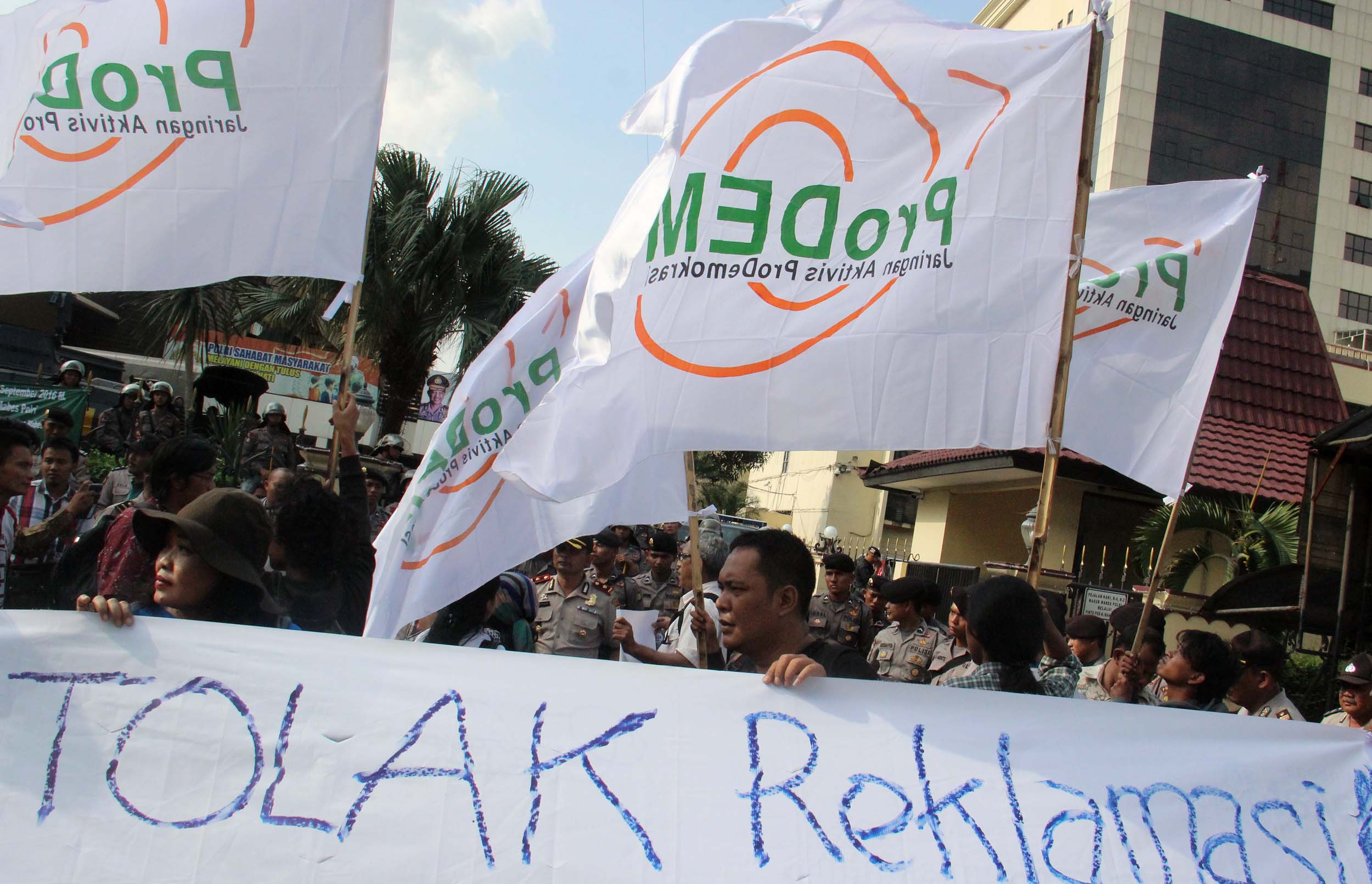 Puluhan aktivis yang tergabung dalam Jaringan Pro Demokrasi (Prodem) melakukan aksi penolakan kriminalisasi aktivis For Bali di depan Mabes Polri, Jakarta, Jumat (9/9/2016). Dalam aksinya aktivis Pro Demokrasi menolak Reklamasi Teluk Benoa,segala bentuk kriminalisasi terhadap aktivis For Bali dan Kapolri segera memecat Kapolda Bali.