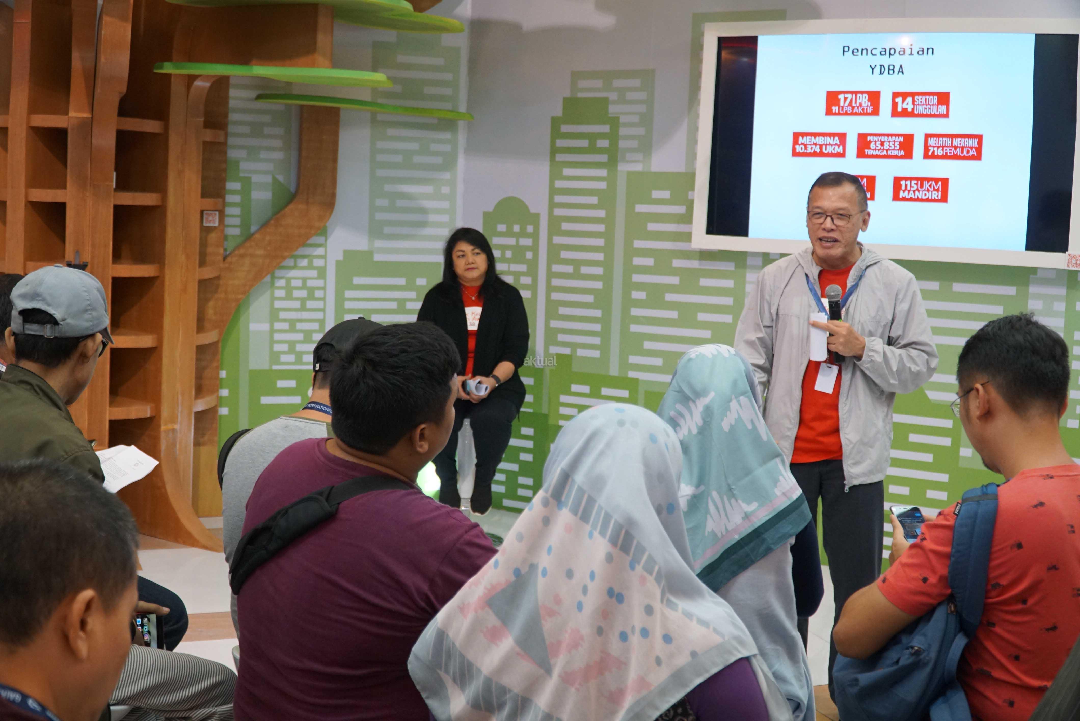 Ketua Pengurus YDBA, Henry C. Widjaja (kanan) dan Sekretaris Pengurus YDBA, Ida R.M. Sigalingging saat menjelaskan pencapaian kinerja YDBA saat gelar produk yang ditampilkan pada pameran GAIKINDO Indonesia International Auto Show (GIIAS) 2018 yang akan digelar pada 2-12 Agustus mendatang di ICE BSD City, Tangerang Selatan. Pada tahun ini, YDBA akan menampilkan 2 Komunitas UKM Sektor Unggulan, 7 UKM Manufaktur, 1 UKM Bengkel, dan 3 UKM Kerajinan. Selain itu, ditampilkan pula komponen-komponen otomotif produksi UKM lokal yang berhasil menembus supply chain produsen otomotif besar. YDBA yang secara akumulasi telah membina 4.123 UKM Bengkel Roda Empat, dan 757 UKM Bengkel Roda Dua di berbagai daerah di Indonesia serta melalui Program Sektor Unggulan yang hingga kini telah menghasilkan 14 Komunitas Sektor Unggulan.