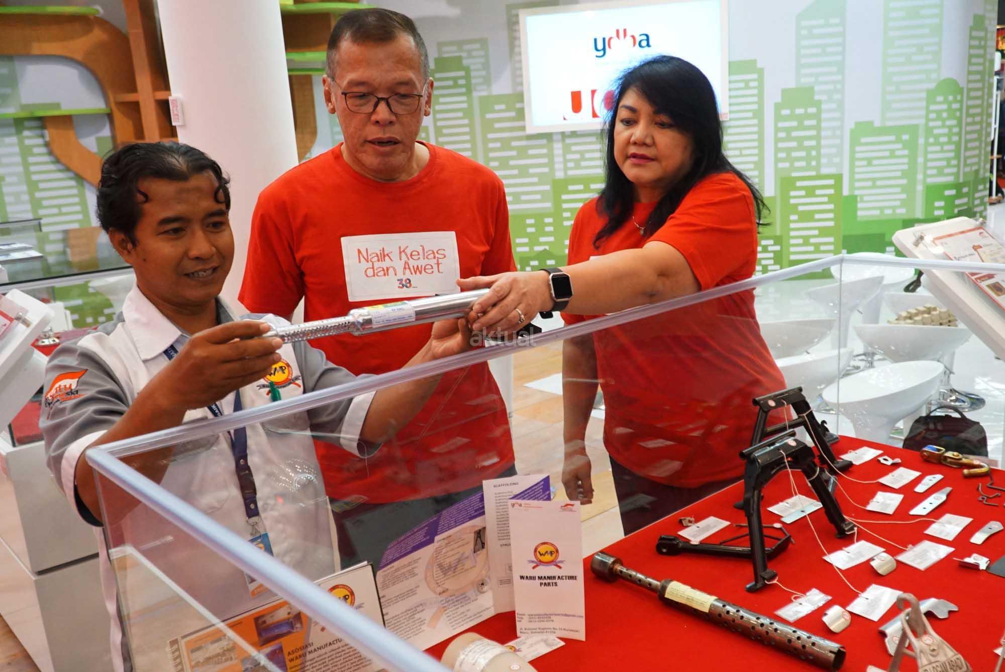 Ketua Pengurus YDBA, Henry C. Widjaja (tengah) dan Sekretaris Pengurus YDBA, Ida R.M. Sigalingging mendengarkan penjelasan salah satu UKM Anggota Sektor Unggulan Ngingas,Waru, Sidoarjo saat meninjau dan melihat dari dekat komponen manufaktur yang ditampilkan pada pameran GAIKINDO Indonesia International Auto Show (GIIAS) 2018 yang akan digelar pada 2-12 Agustus mendatang di ICE BSD City, Tangerang Selatan. Pada tahun ini, YDBA akan menampilkan 2 Komunitas UKM Sektor Unggulan, 7 UKM Manufaktur, 1 UKM Bengkel, dan 3 UKM Kerajinan. Selain itu, ditampilkan pula komponen-komponen otomotif produksi UKM lokal yang berhasil menembus supply chain produsen otomotif besar. YDBA yang secara akumulasi telah membina 4.123 UKM Bengkel Roda Empat, dan 757 UKM Bengkel Roda Dua di berbagai daerah di Indonesia serta melalui Program Sektor Unggulan yang hingga kini telah menghasilkan 14 Komunitas Sektor Unggulan.