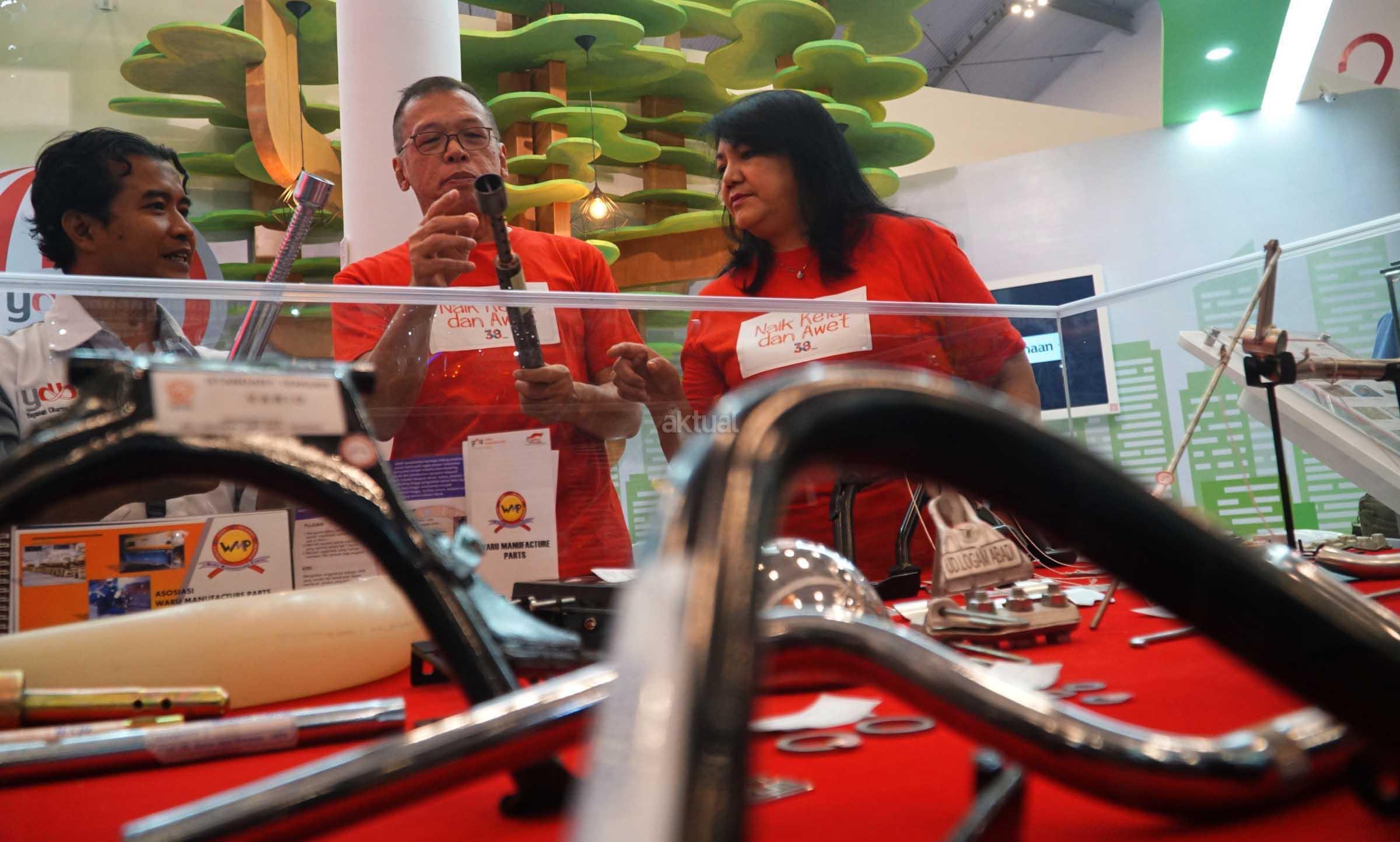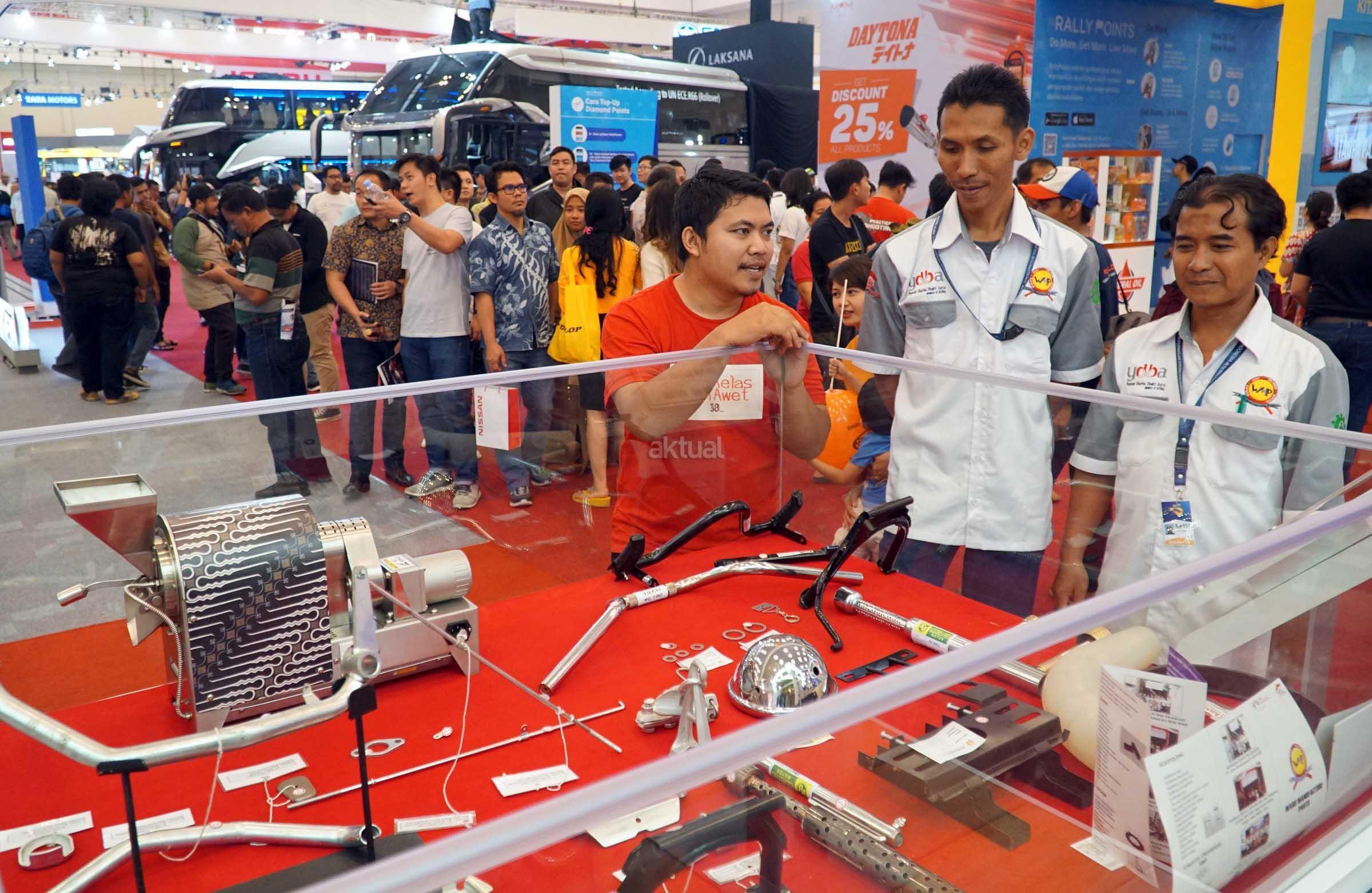 Pengunjung melihat dari dekat komponen manufaktur yang ditampilkan pada pameran GAIKINDO Indonesia International Auto Show (GIIAS) 2018 yang akan digelar pada 2-12 Agustus mendatang di ICE BSD City, Tangerang Selatan Jumat (3/8). Pada tahun ini, YDBA akan menampilkan 2 Komunitas UKM Sektor Unggulan, 7 UKM Manufaktur, 1 UKM Bengkel, dan 3 UKM Kerajinan. Selain itu, ditampilkan pula komponen-komponen otomotif produksi UKM lokal yang berhasil menembus supply chain produsen otomotif besar. YDBA yang secara akumulasi telah membina 4.123 UKM Bengkel Roda Empat, dan 757 UKM Bengkel Roda Dua di berbagai daerah di Indonesia serta melalui Program Sektor Unggulan yang hingga kini telah menghasilkan 14 Komunitas Sektor Unggulan.