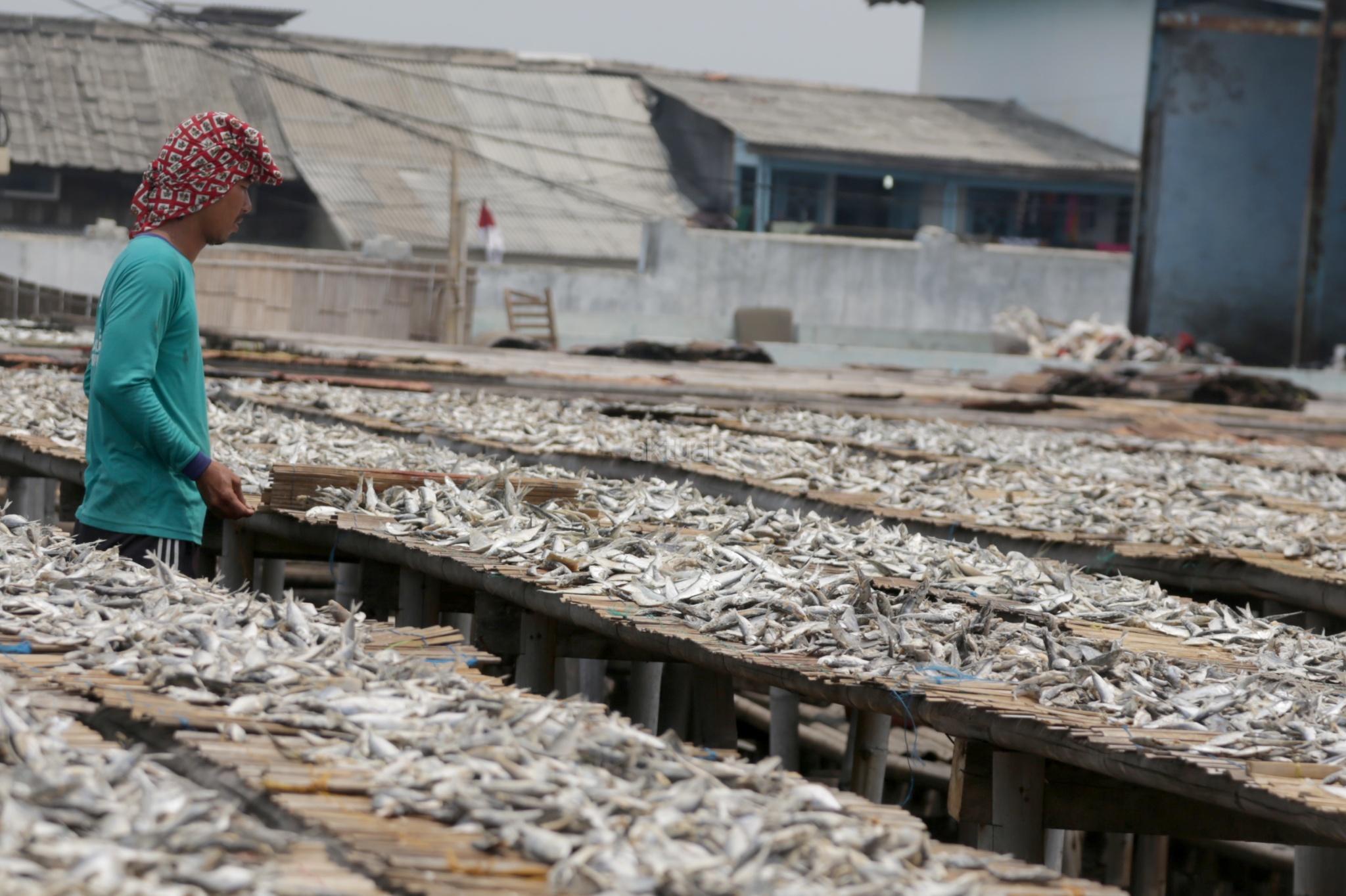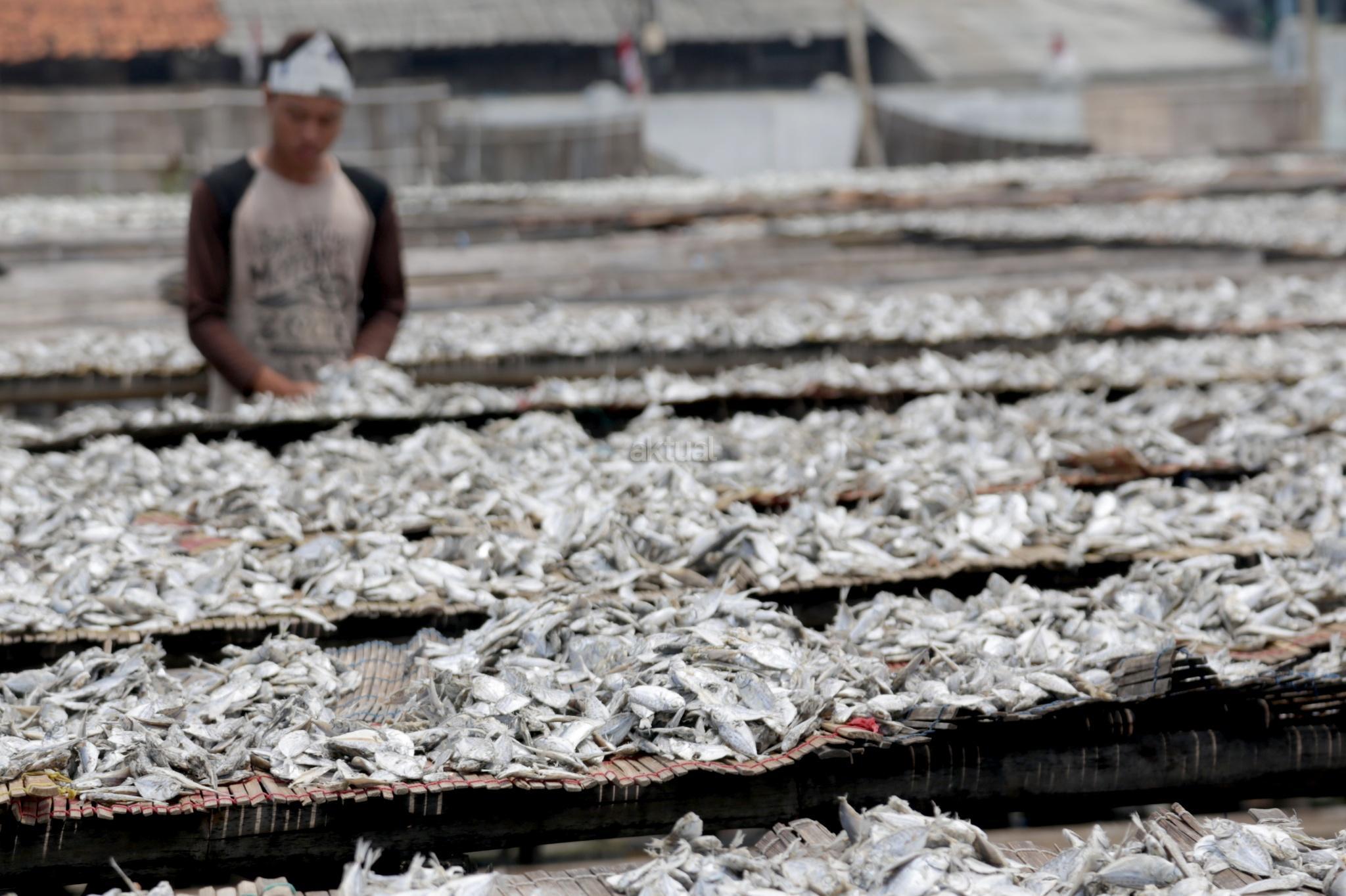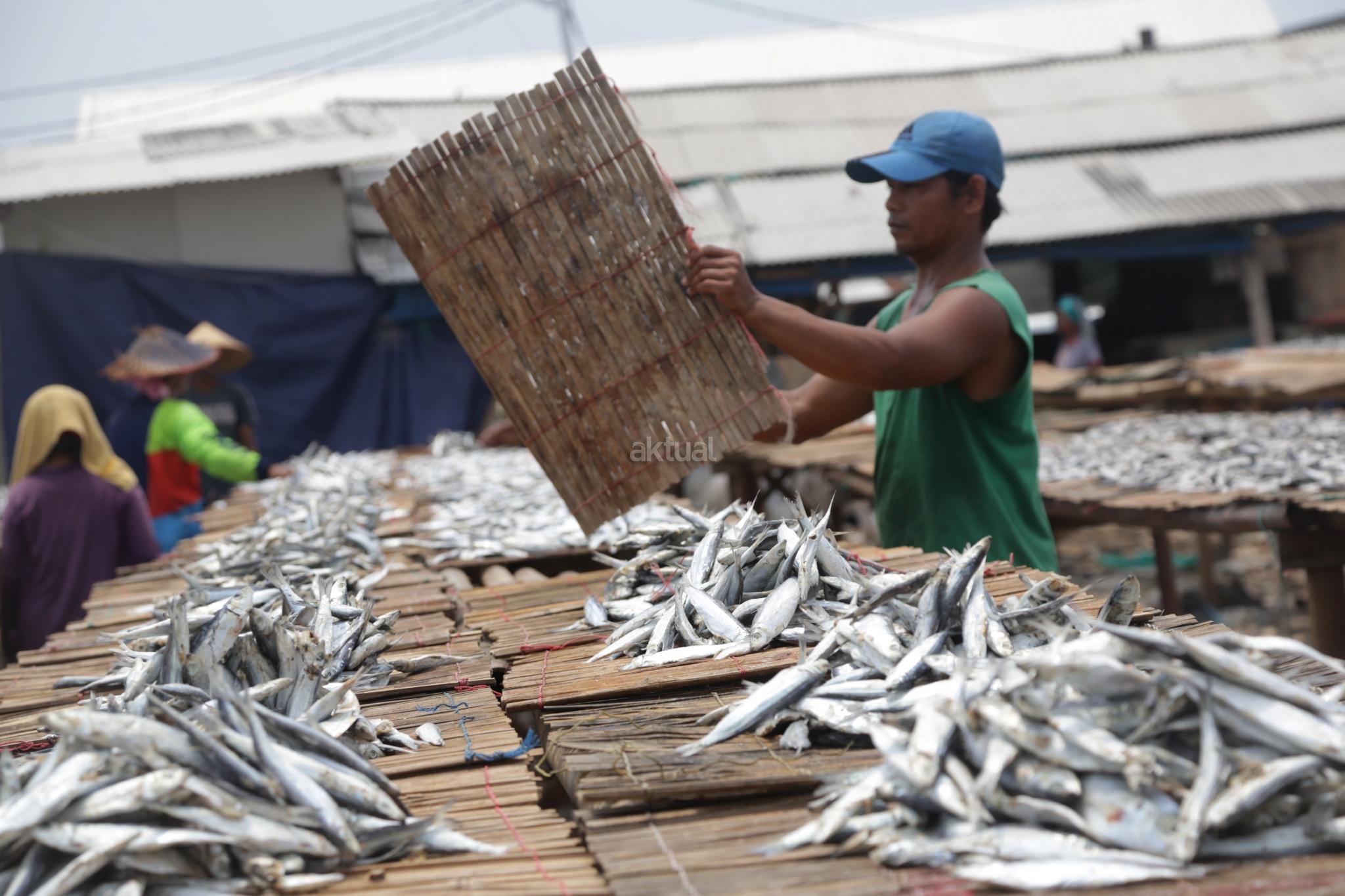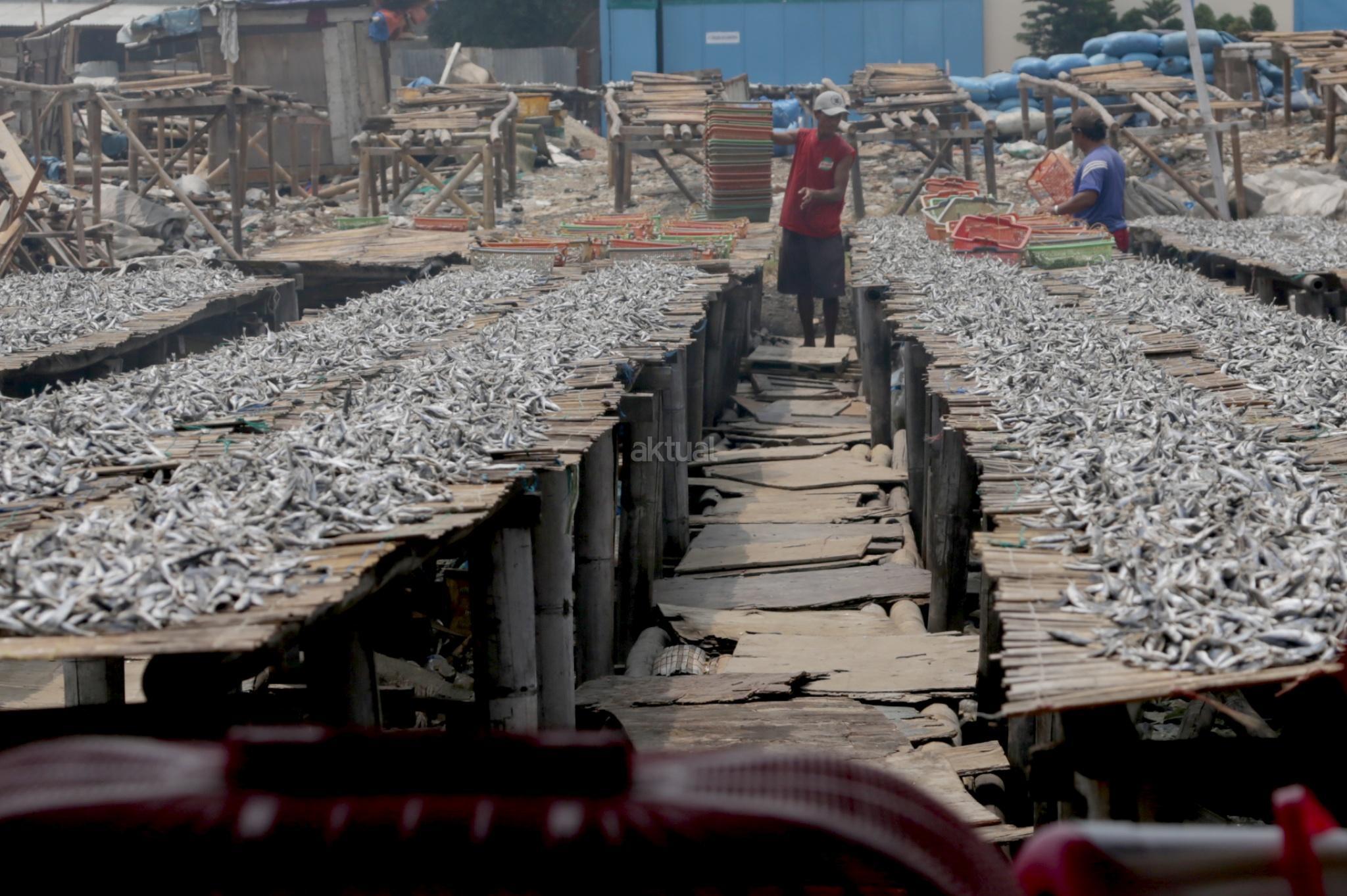 Nelayan menjemur ikan asin di Kawasan Muara Angke, Jakarta Utara, Selasa (26/9/2017). Perharinya Nelayan tersebut bisa memproduksi ikan asin rata-rata 2-3 ton, untuk didistribusikan ke wilayah Jakarta dan Sumatera. AKTUAL/Tino Oktaviano