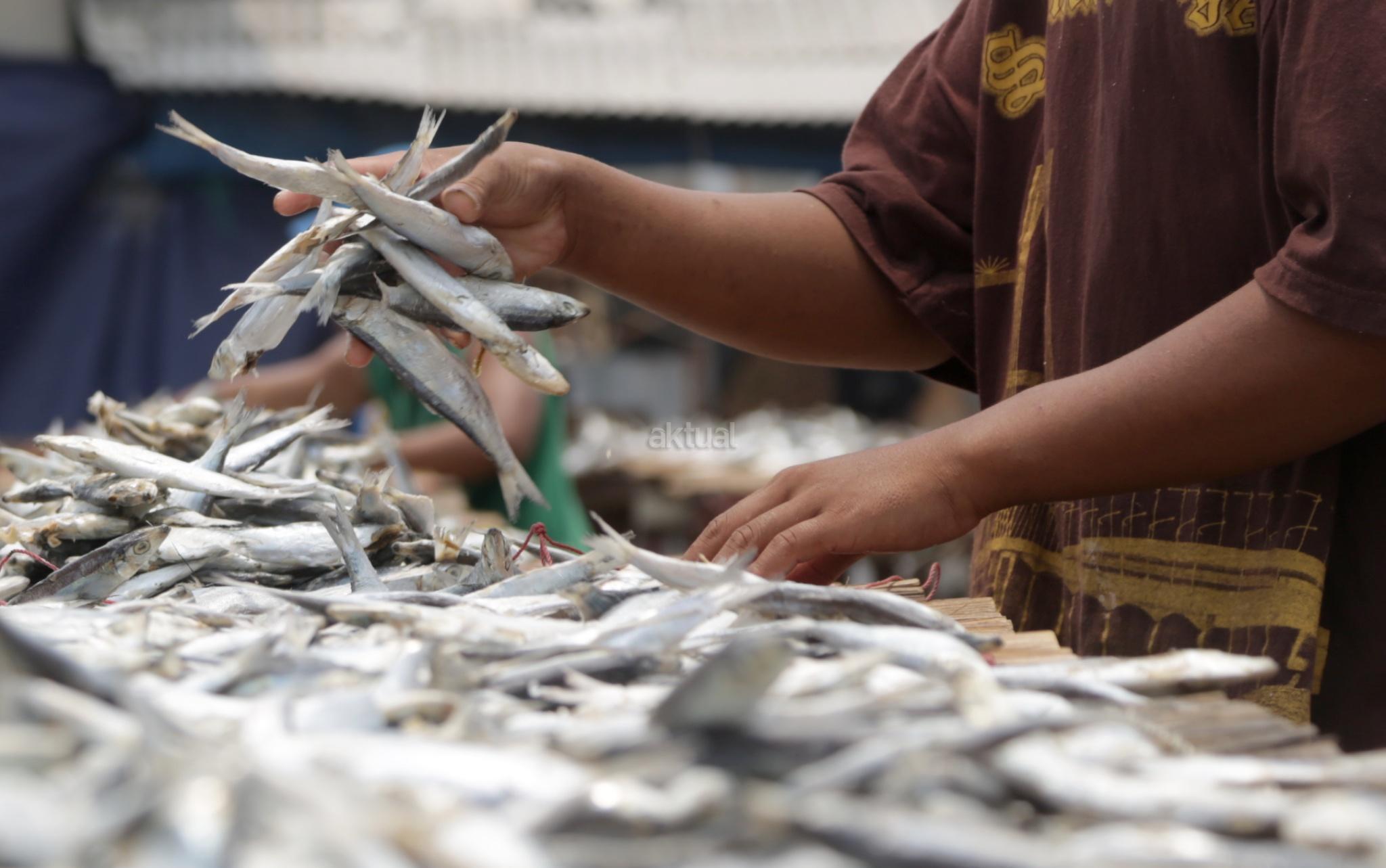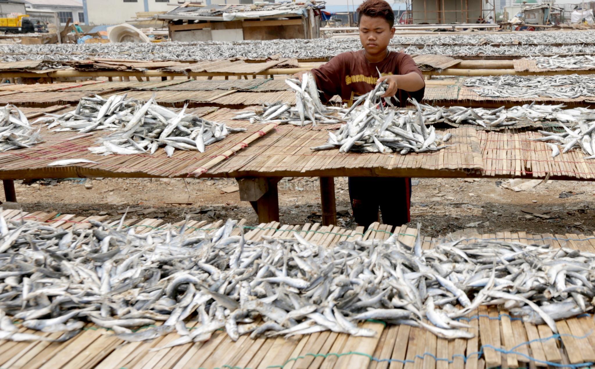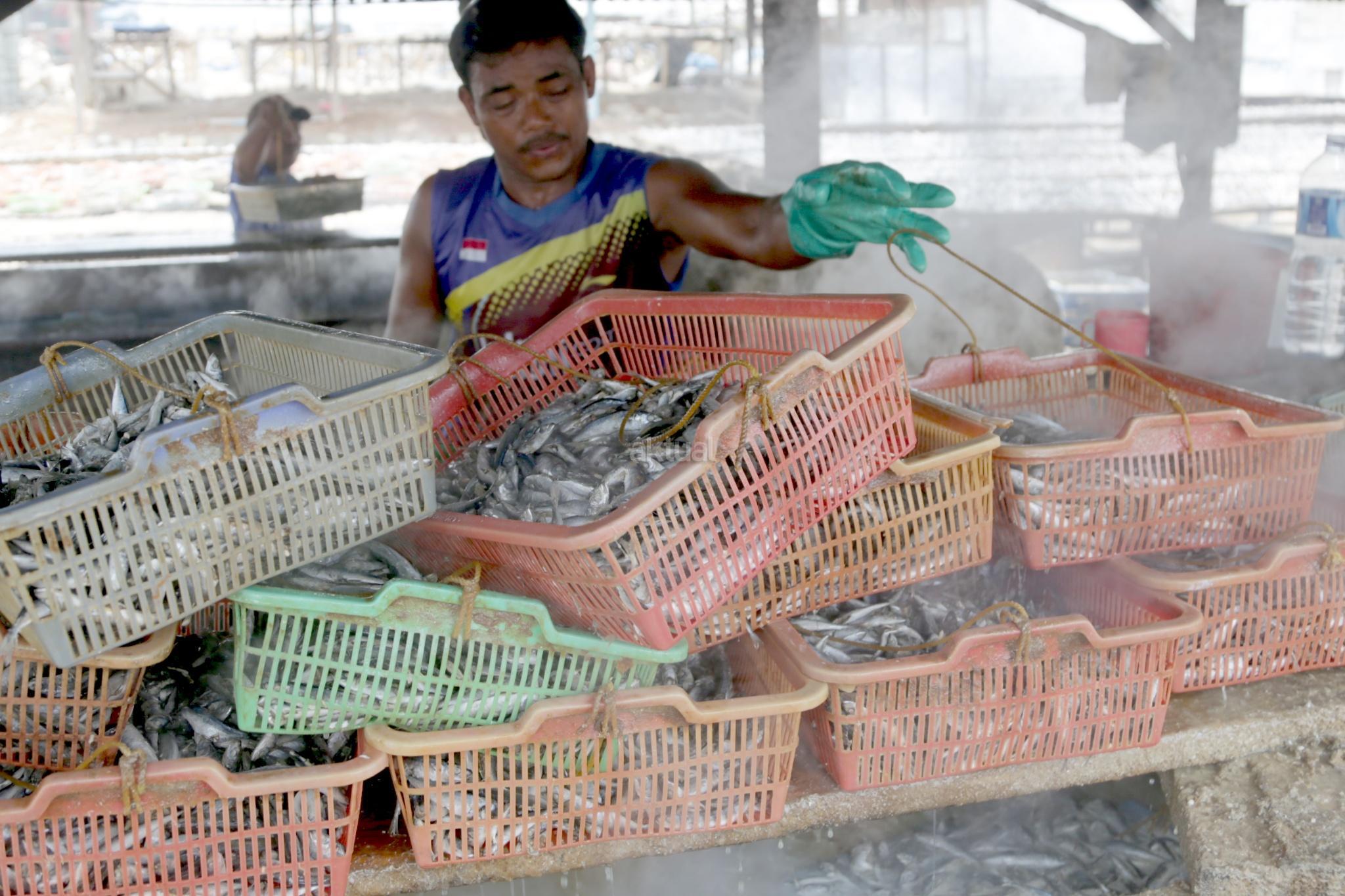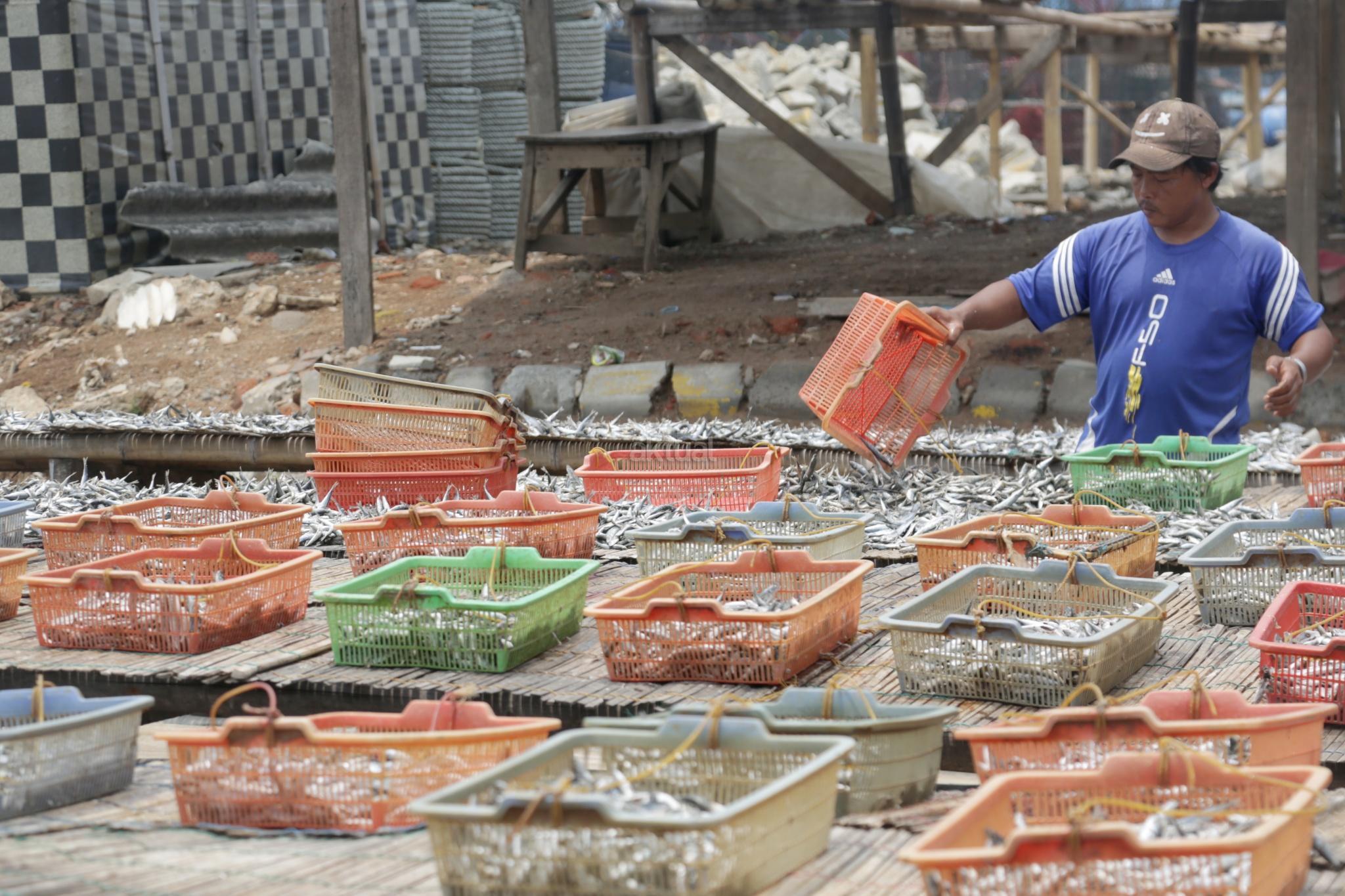 Nelayan menjemur ikan asin di Kawasan Muara Angke, Jakarta Utara, Selasa (26/9/2017). Perharinya Nelayan tersebut bisa memproduksi ikan asin rata-rata 2-3 ton, untuk didistribusikan ke wilayah Jakarta dan Sumatera. AKTUAL/Tino Oktaviano