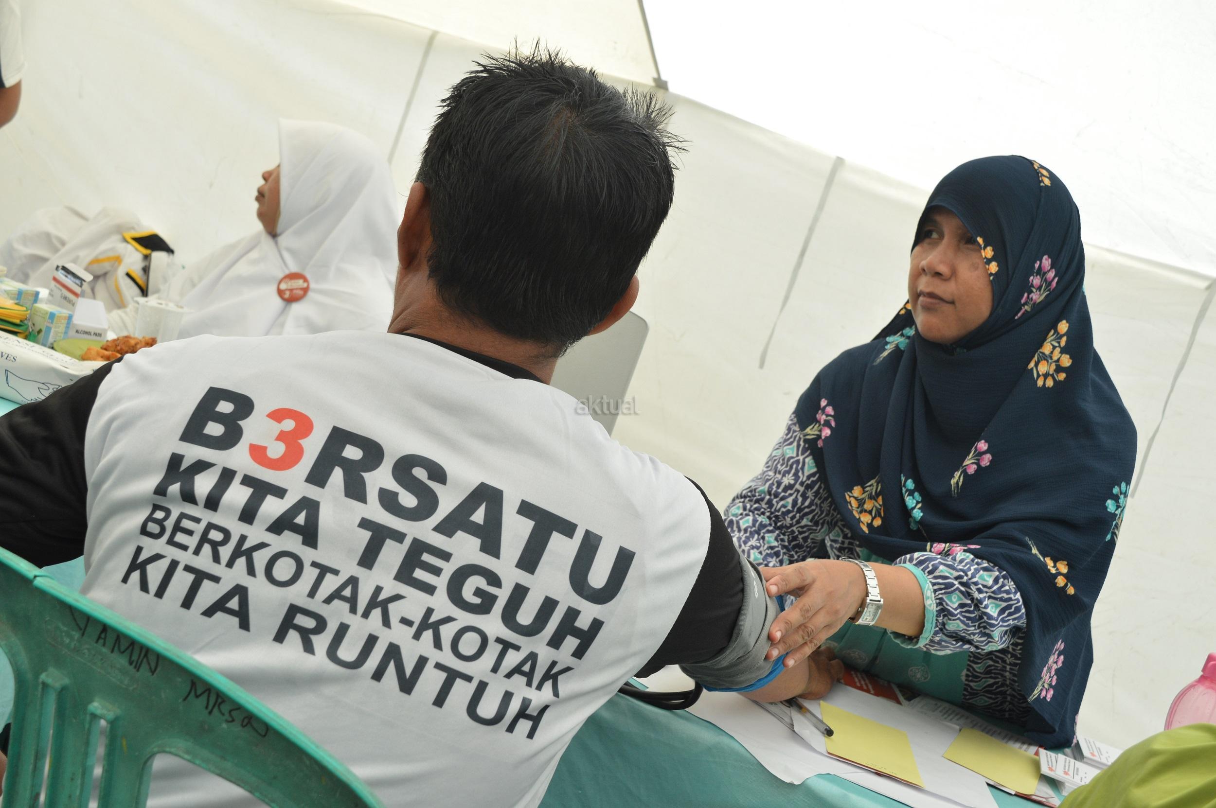 Salah seorang warga Rusun Marunda, Jakarta Utara, terlihat sedang melakukan pemeriksaan tekanan darah oleh petugas kesehatan, di acara Baksos Akbar OK CARE Anies Sandi yang digelar di 100 titik se-DKI Jakarta, di Rusun Marunda RW 010, Jakarta Utara, Minggu (9/4/2017). Program ini kerjasama antara Jakarta Fly (Jakarta Forum Lembaga dan Yayasan) dan Komunitas Medis Peduli (KMP). AKTUAL/HO