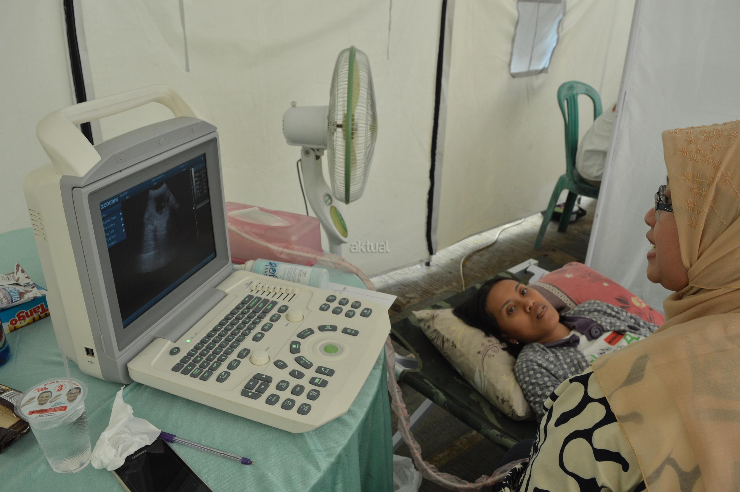 Suasana pemeriksaan di kamar Obgyn USG, salah satu layanan spesialis kandungan di acara Baksos Akbar OK CARE Anies Sandi yang digelar di 100 titik se-DKI Jakarta, di Rusun Marunda RW 010, Jakarta Utara, Minggu (9/4/2017). Program ini kerjasama antara Jakarta Fly (Jakarta Forum Lembaga dan Yayasan) dan Komunitas Medis Peduli (KMP). AKTUAL/HO